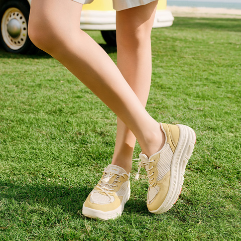 Pansy盼喜女鞋透气免系带舒适厚底增高休闲运动鞋2026年春季新款