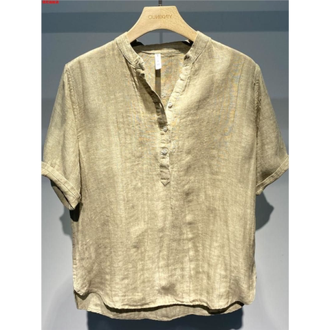 67¥ CZ356 VJaH59H8T5f¥ https://m.tb.cn/h.iuwtwbt 美式复古亚麻圆领短袖衬衫男夏季大码200斤时尚宽松麻布休闲衬衣