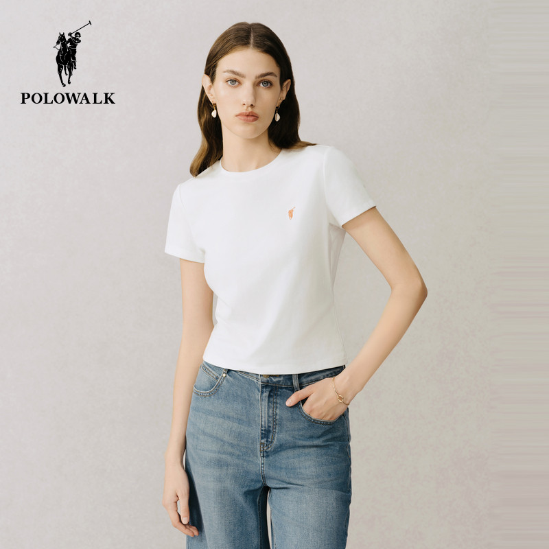 POLOWALK女士圆领短袖T恤2026春夏新款简约时尚打底纯色短袖t恤女