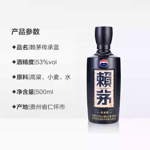 赖茅 传承蓝 酱香型白酒 53度 500ml单瓶装 送礼宴饮