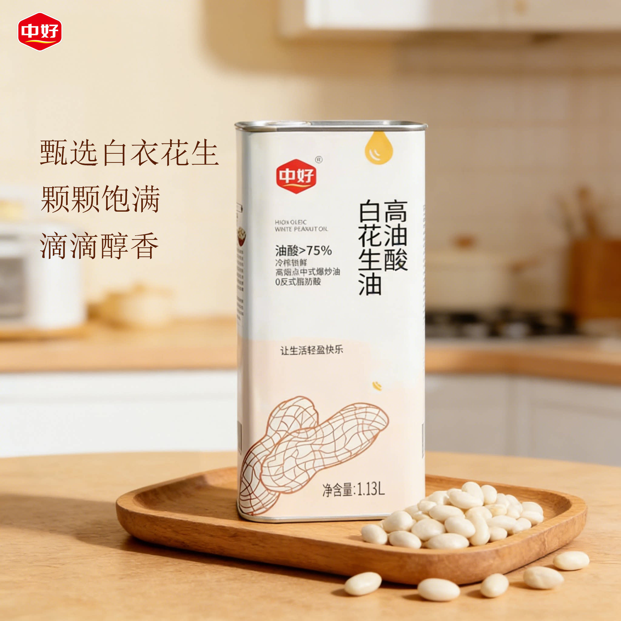 【右上角淘金币频道抵扣0.38到手8!】中好冷榨高油酸花生油食用油1.13L+送200ml,头道冷榨,保留原生营养,高油酸更健康,清香不腻,家用烹饪安心优选【赠运费险】
