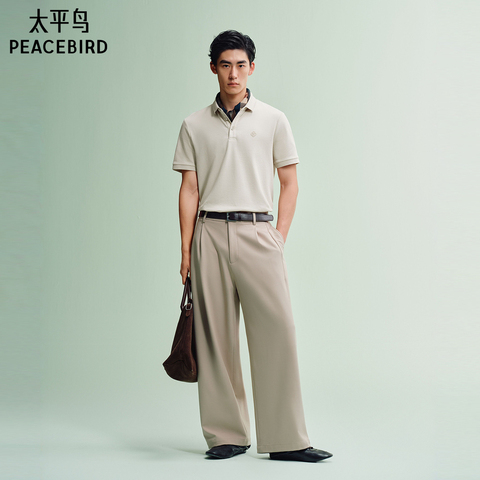 太平鸟男装 polo衫男含桑蚕丝2026年夏季新款修身翻领短袖t恤男