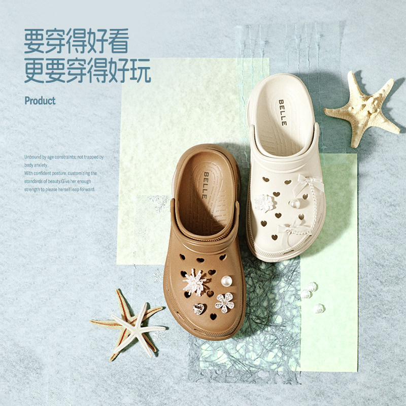 百丽厚底洞洞鞋2026商场新款增高休闲拖鞋户外沙滩女鞋F7Q1DBH6预