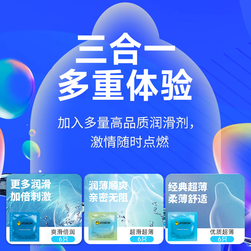 杰士邦润薄精选|买一次爽够一整年!自带足量高品质润滑剂,全程丝滑不卡壳,亲密时刻更顺畅,告别干涩带来的不适,温柔又尽兴,氛围感直接拉满一盒解锁「爽滑倍润 + 超滑超薄 + 优质超薄」三种体验,6+6+6 只组合,一次性满足你对润滑、薄感、舒适的所有想象,新鲜不重样,每次都有新惊喜!囤一次,爽够一整年!杰士邦,给你更安心、更尽兴的亲密守护~