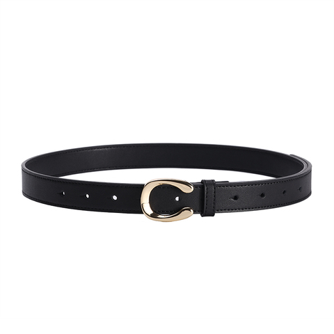 女士皮带真皮简约百搭装饰马蹄扣显瘦配牛仔裤腰带女潮流韩版黑色