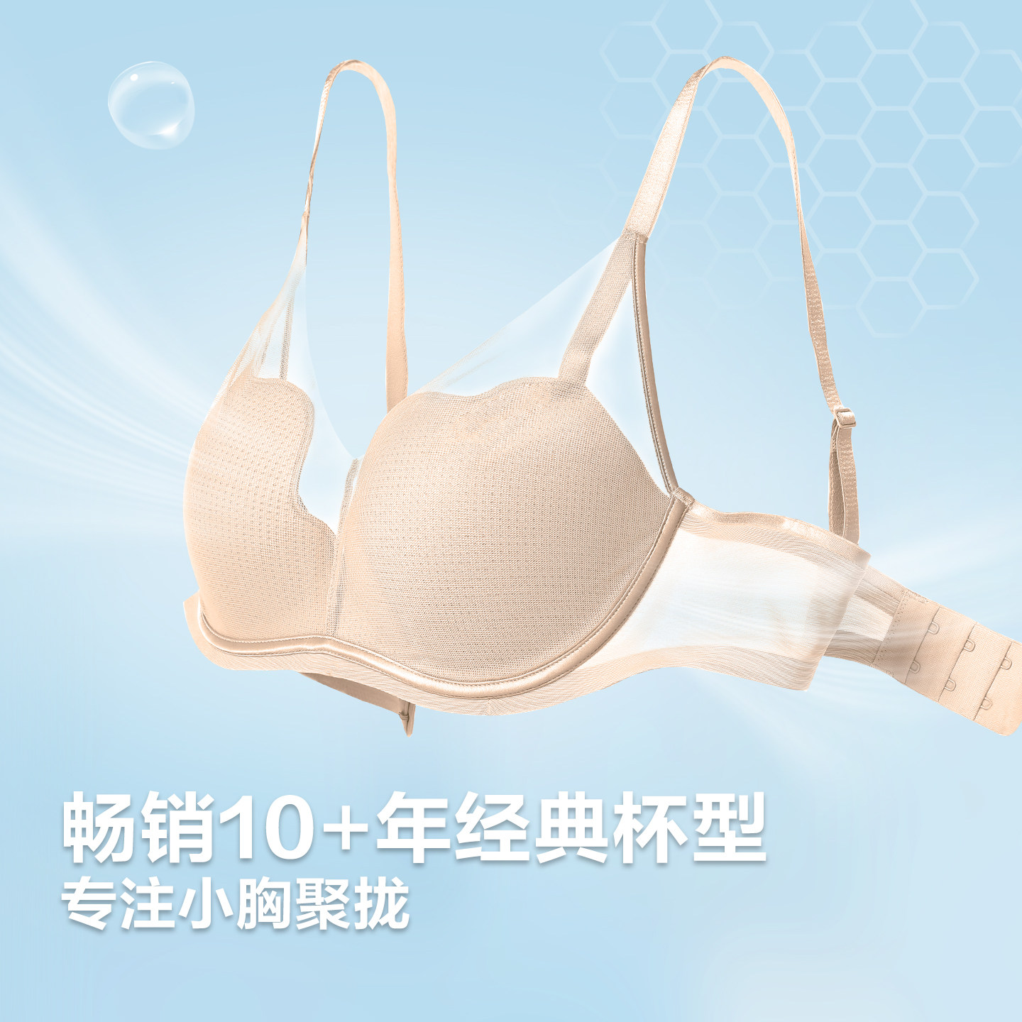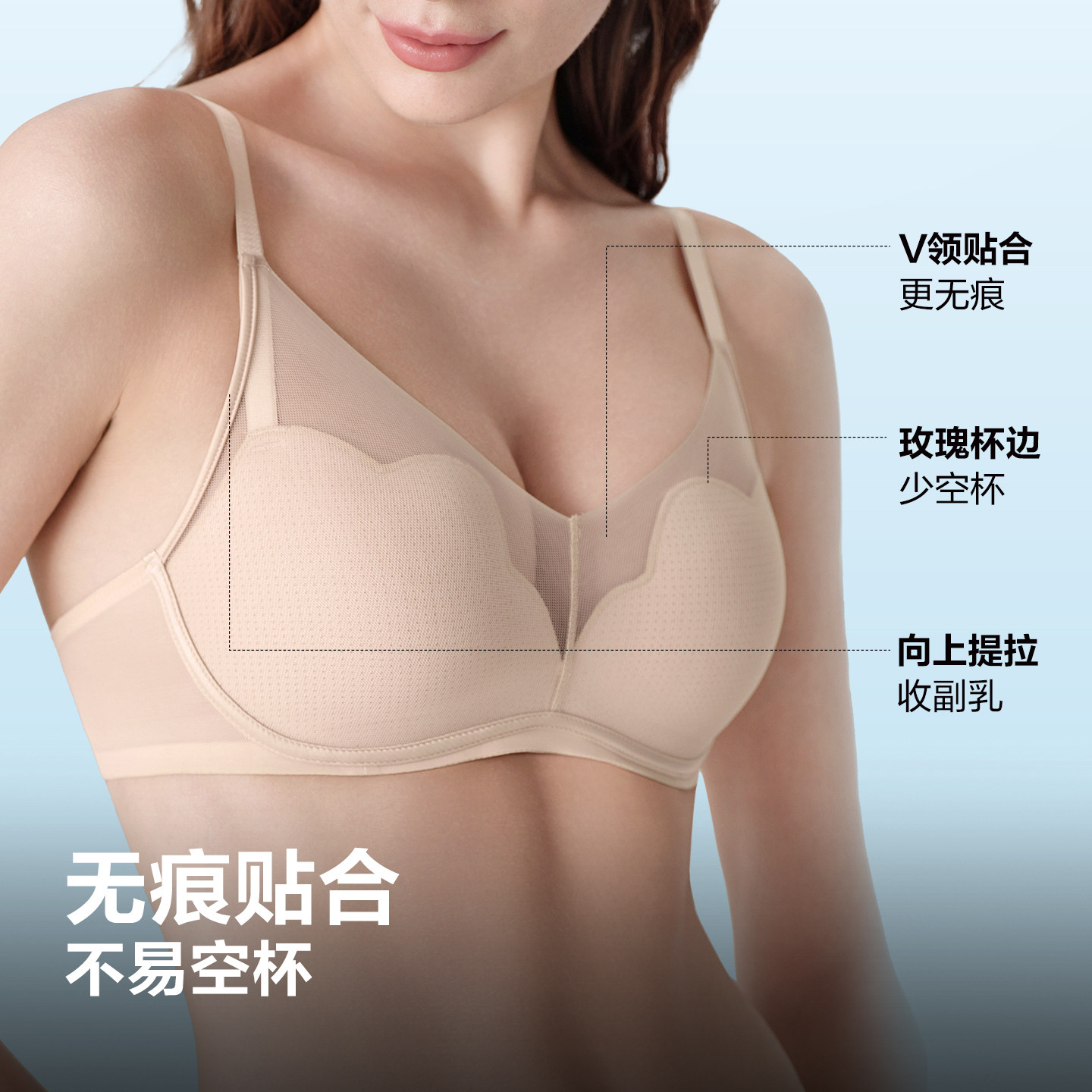 【玫瑰风巢舒挺杯】安莉芳小胸聚拢显大内衣女网纱透气无钢圈文胸