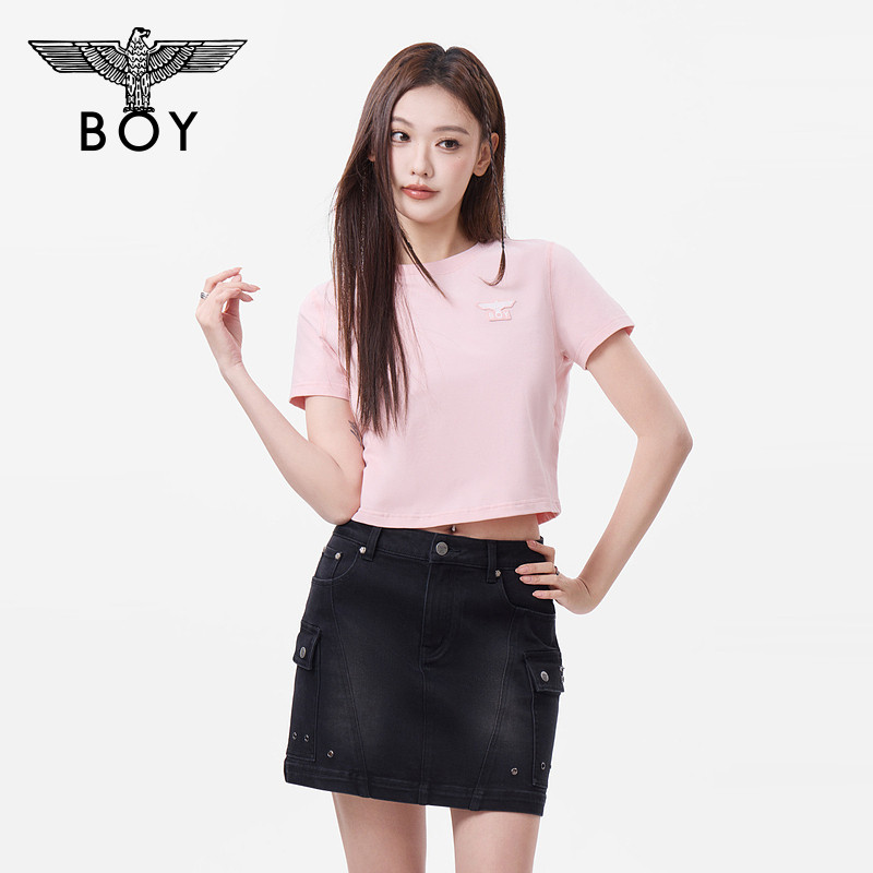 【柔漫短迹】BOYLONDON夏季经典logo短袖简约修身短款女T恤W01001