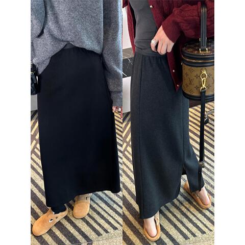 47¥ CZ005 aGvf59rRxZS¥ https://m.tb.cn/h.iuFI9dl 醋酸毛呢后开叉半身裙女秋冬加绒中长裙大码胖mm韩系休闲直筒长裙