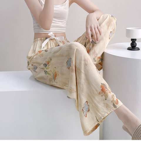 79¥ HU287 lZIB59rjVe2¥ https://m.tb.cn/h.iuc0v66 新款睡裤女夏季薄款棉绸人造棉家居裤可外穿胖MM大码长裤阔腿裤夏