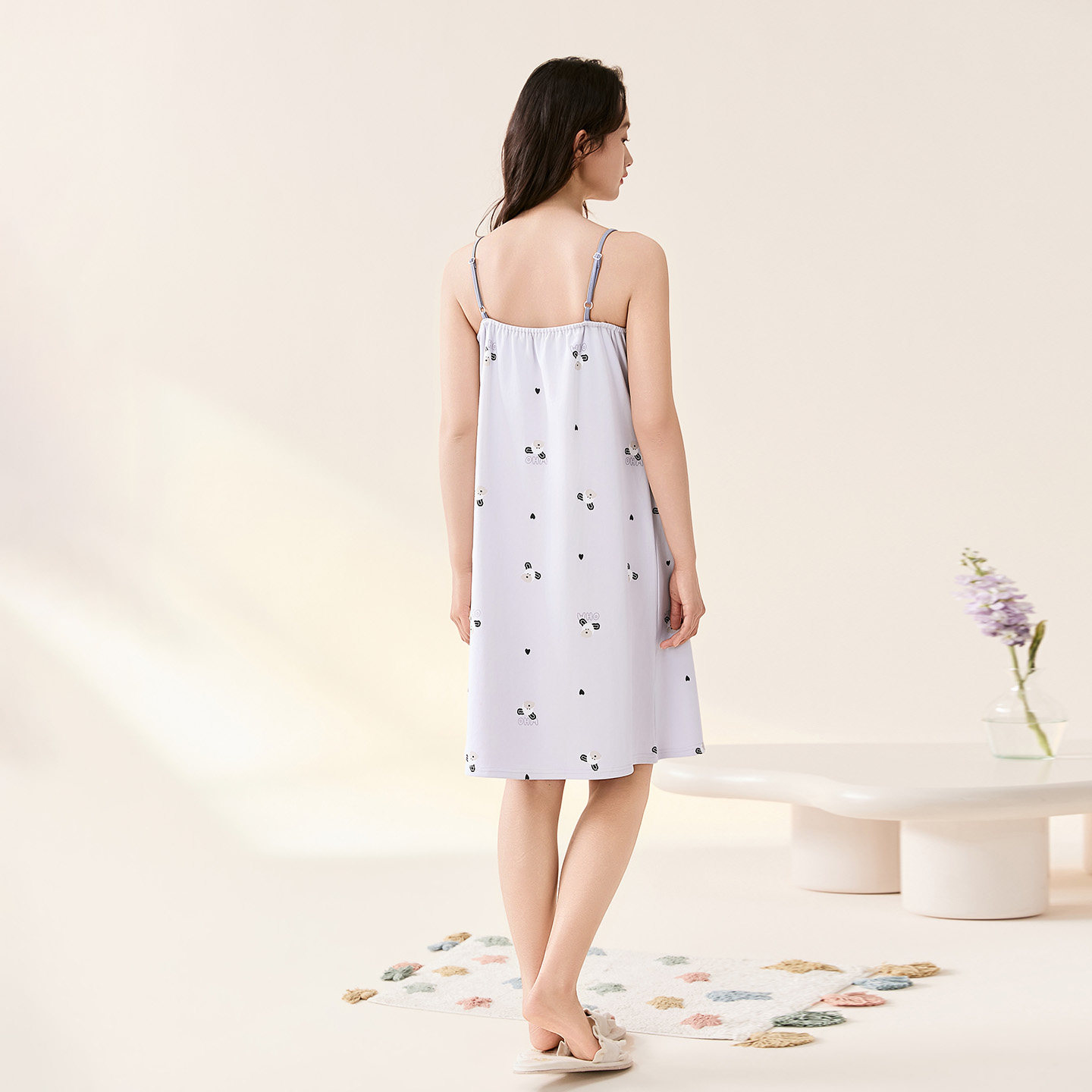 芬腾可安纯棉吊带睡裙女夏季薄款卡通印花甜美带胸垫家居服棉100%