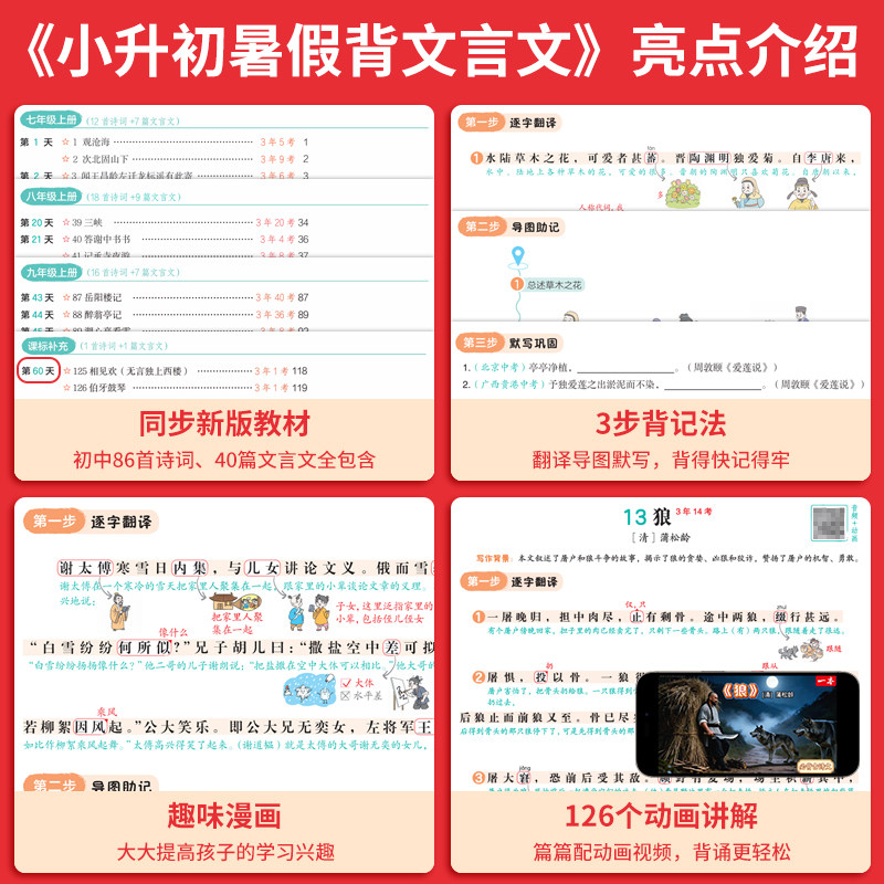 送配套动画视频+120个必背文言实词!淘金币0.52元叠加劵到手15.68元!一本小升初暑假背文言文,86首古诗词,40篇文言文,1600个单词,136个动画,小升初暑假提前背,初中更轻松!