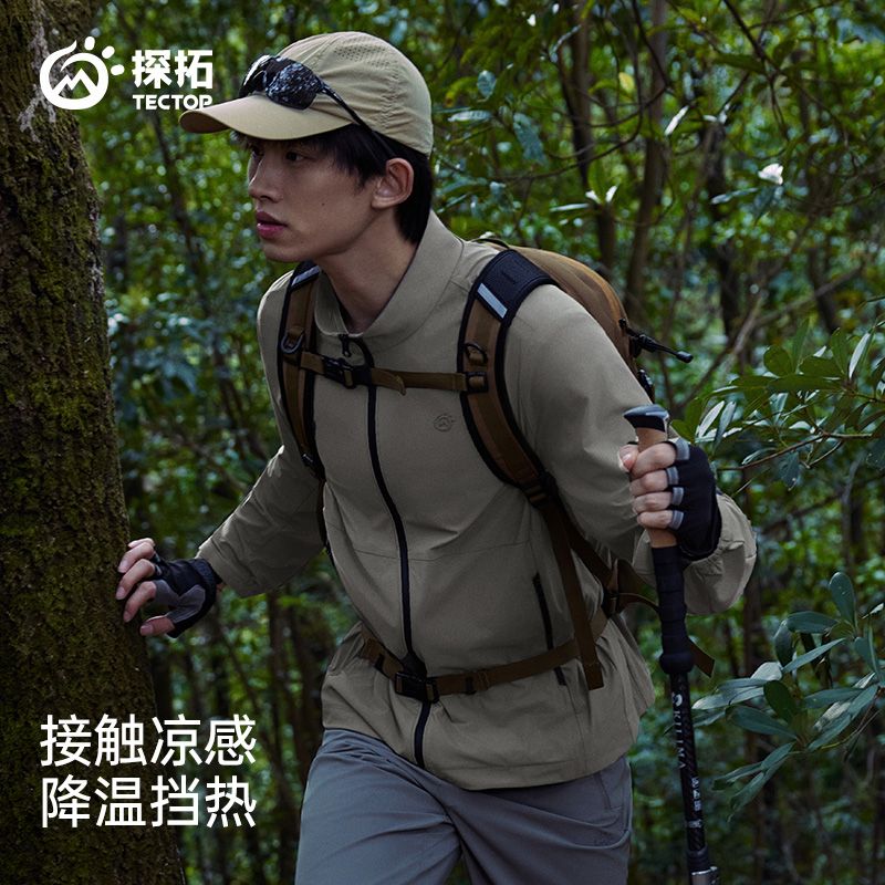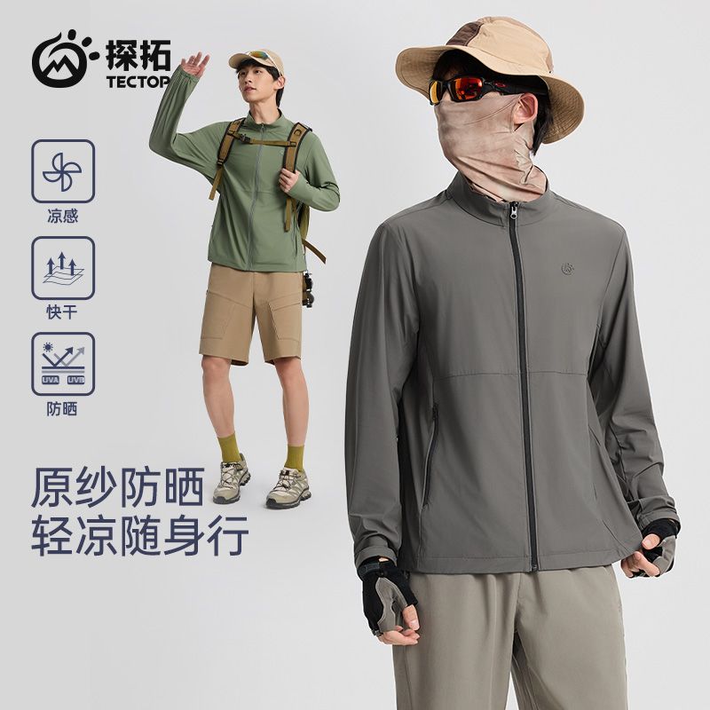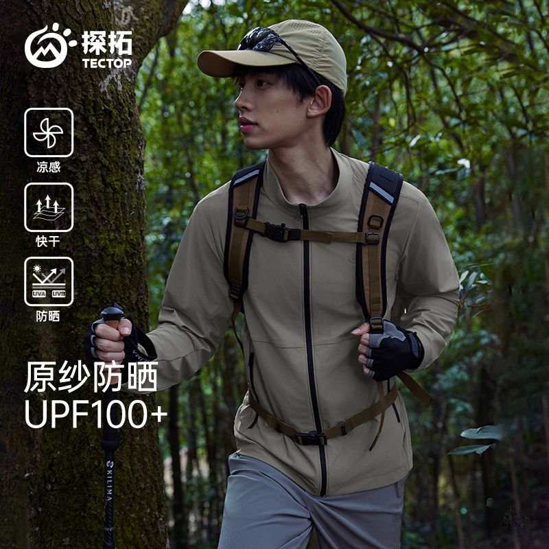 探拓原纱防晒衣UPF100+凉感透气男士外套户外登山徒步轻量防晒服