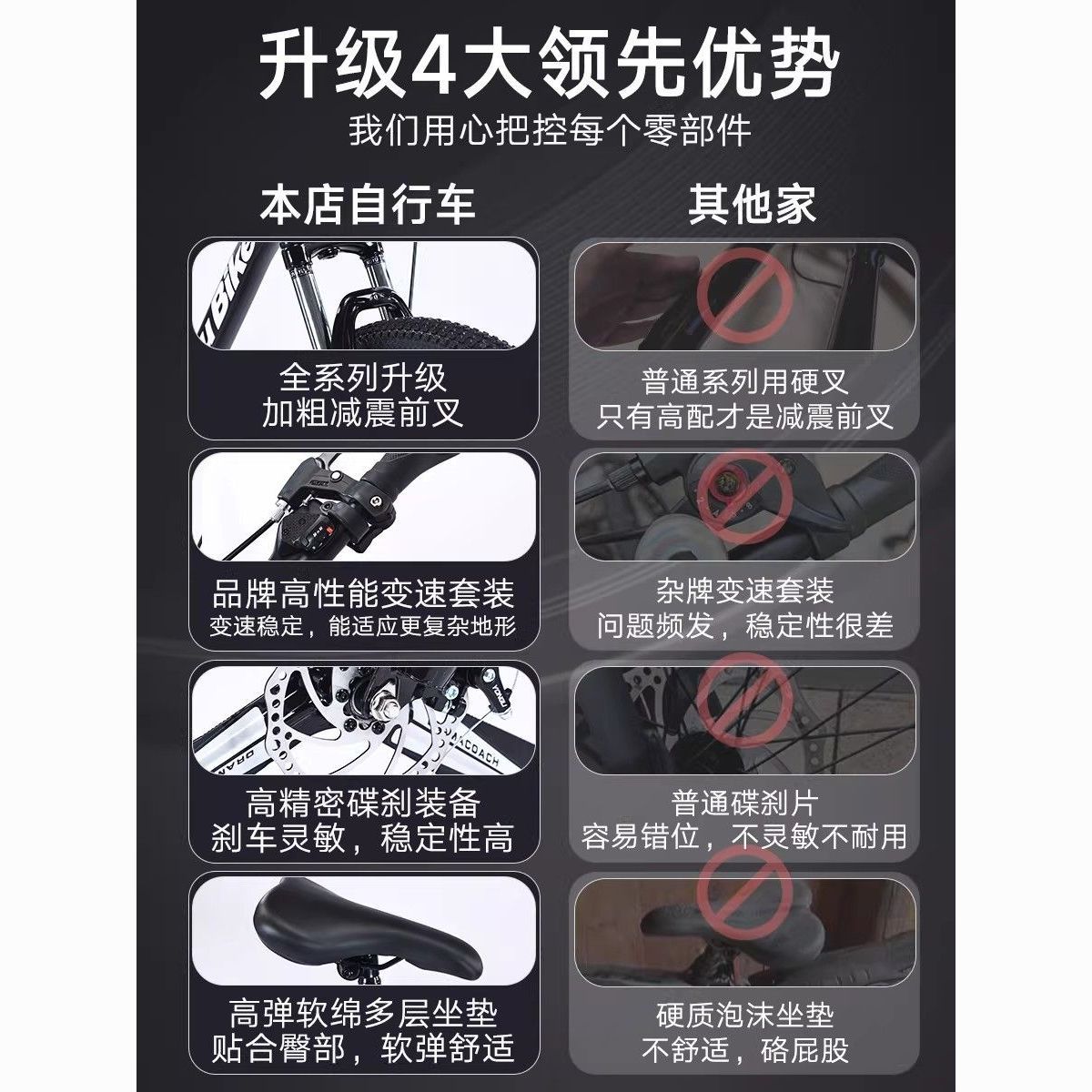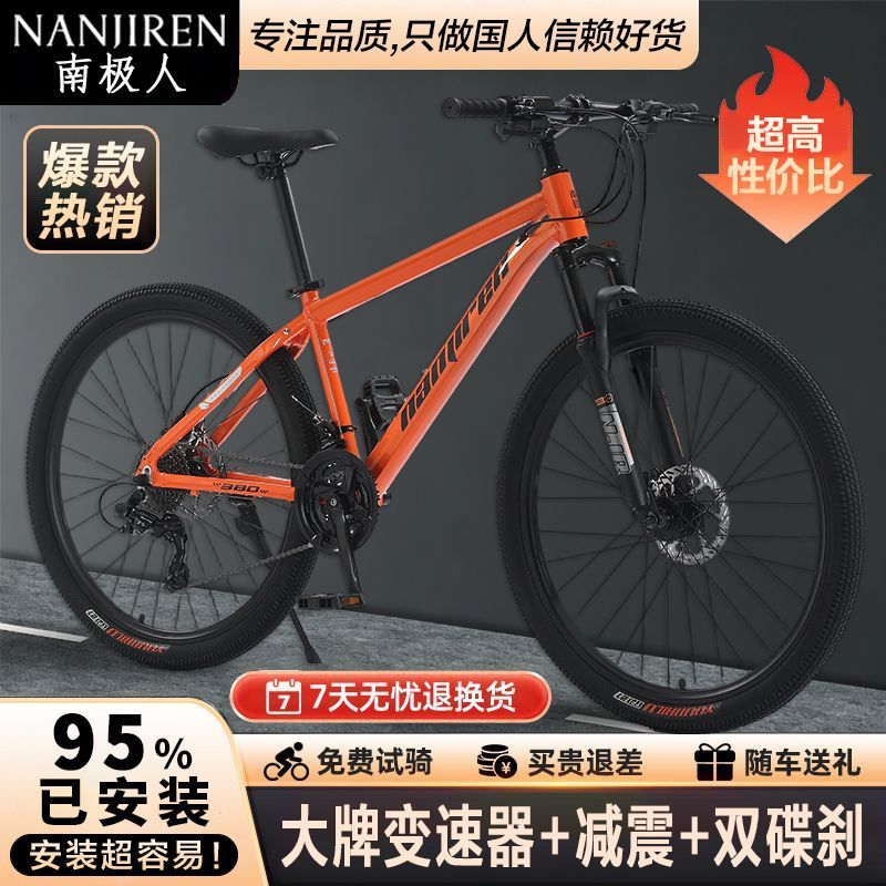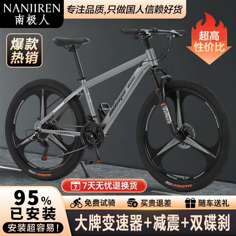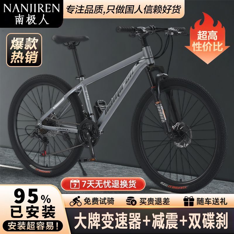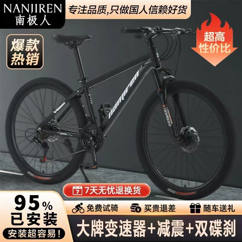 南极人山地车自行车成年人青少年学生男女通用变速越野减震单车