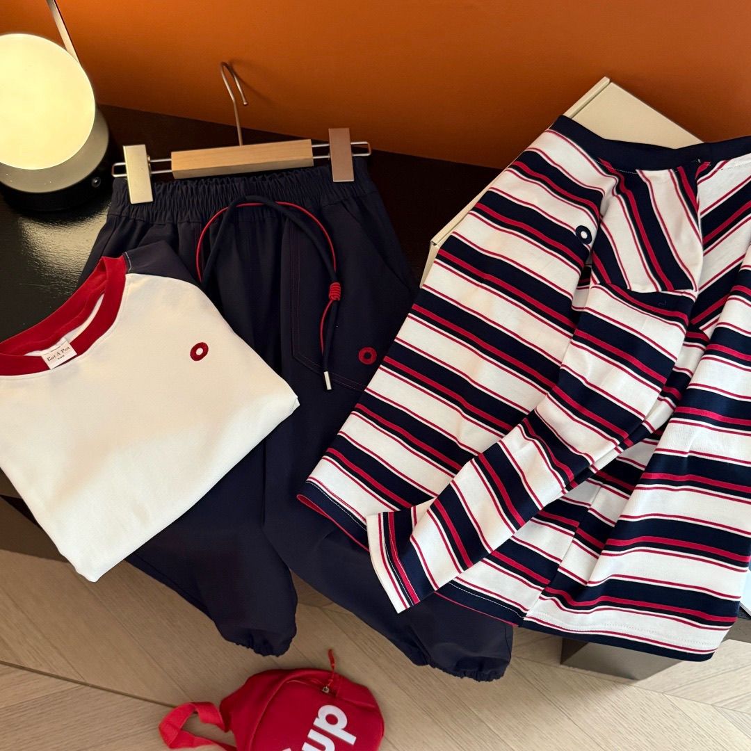 童装春季三件套条纹儿童打底T恤休闲裤中大童长袖爆款彩虹【15天内发货】