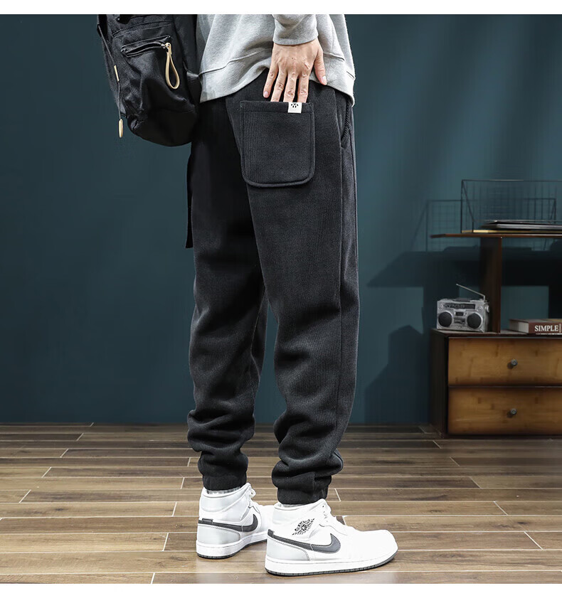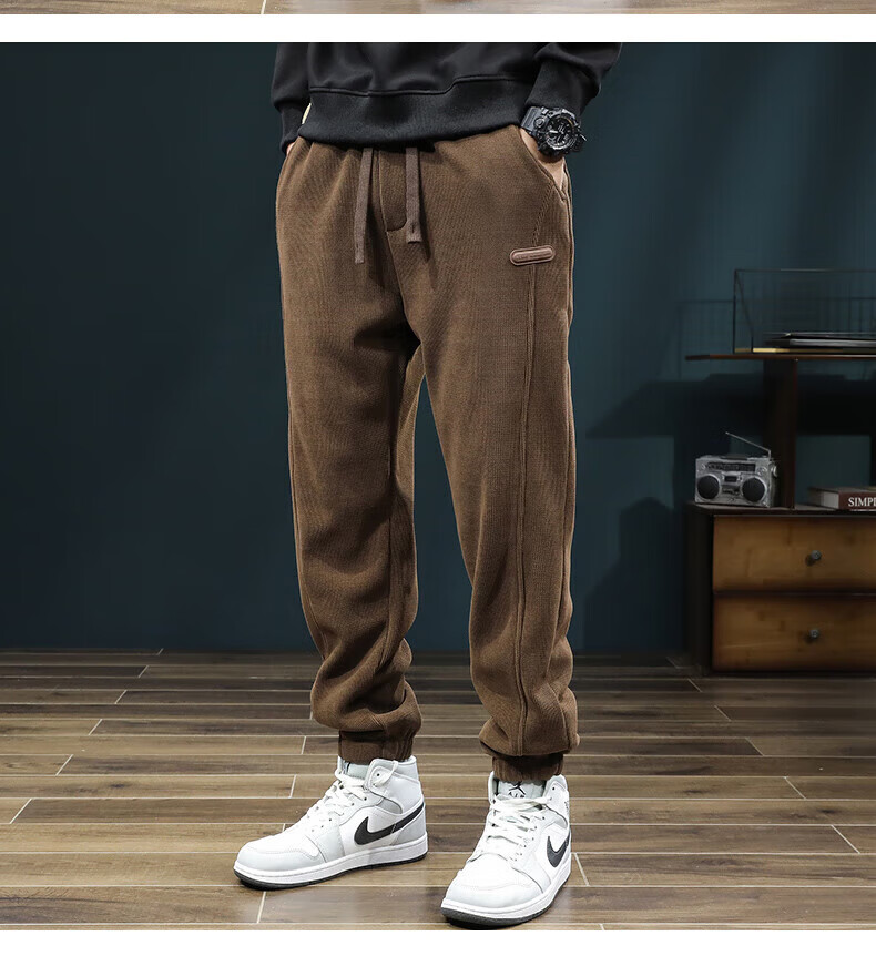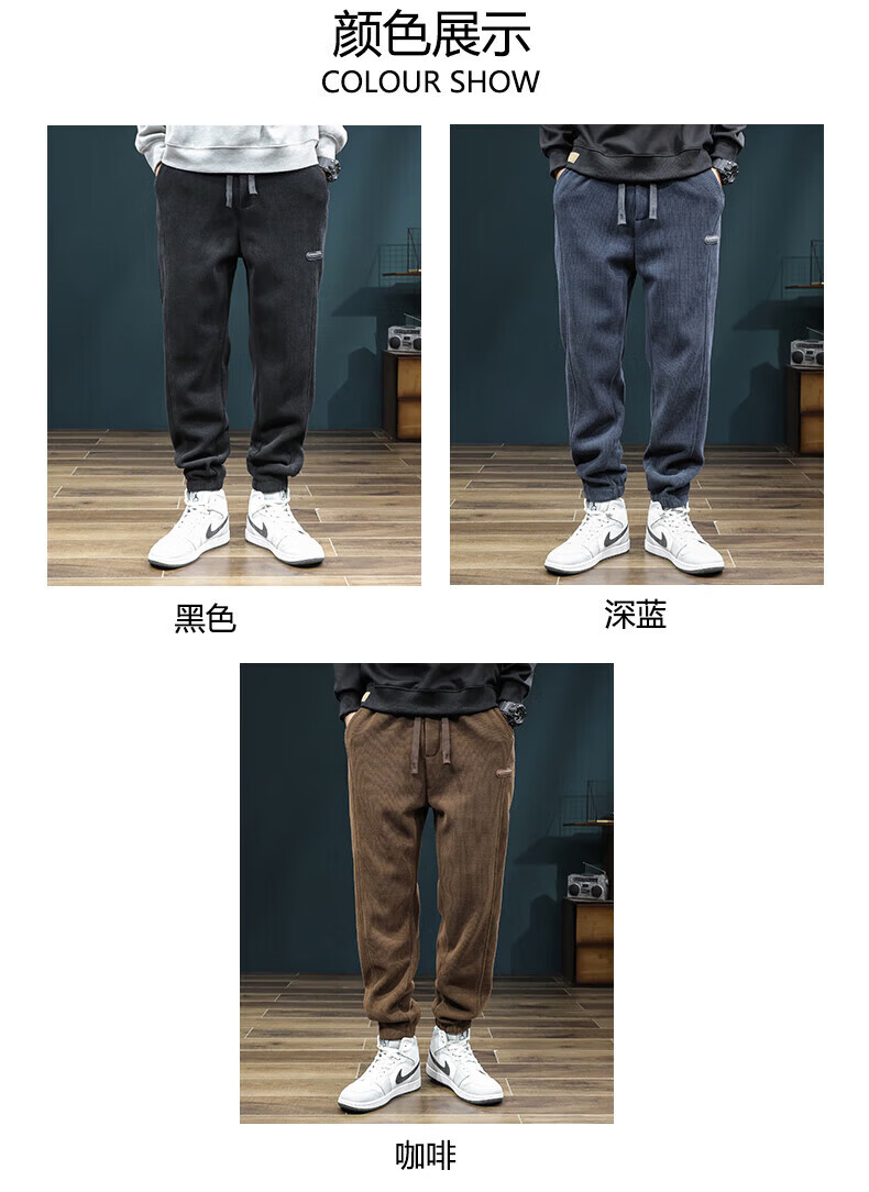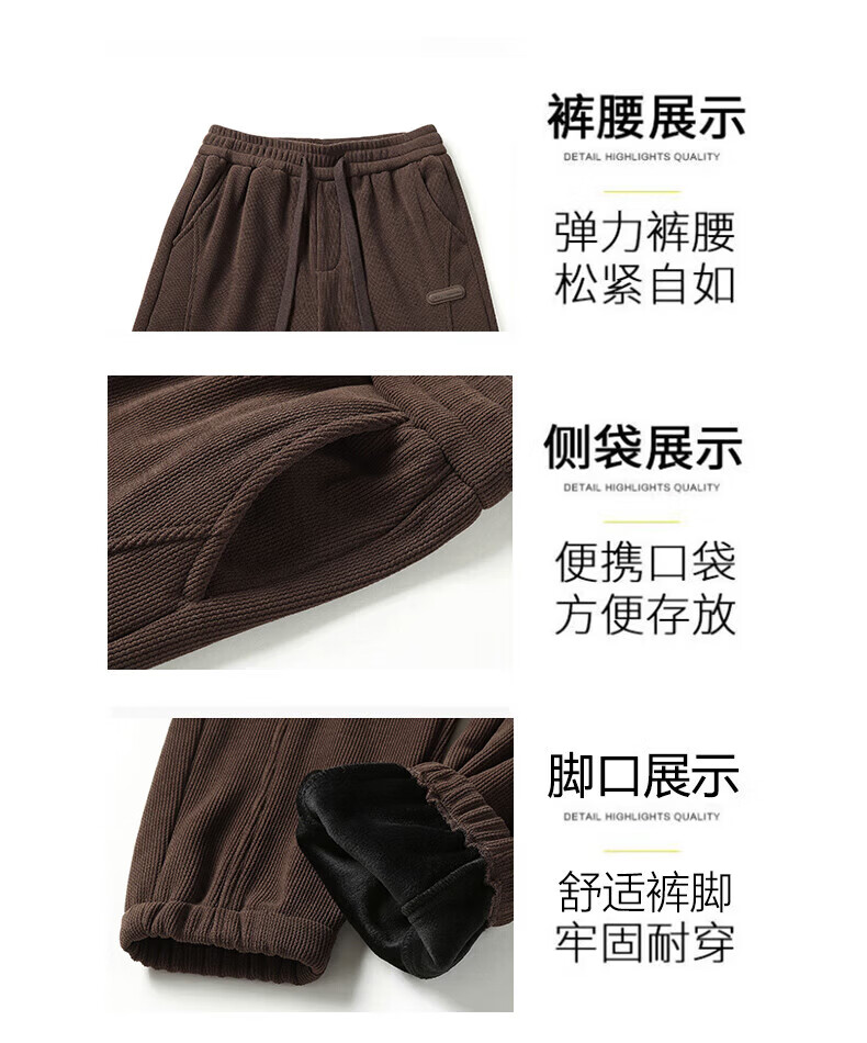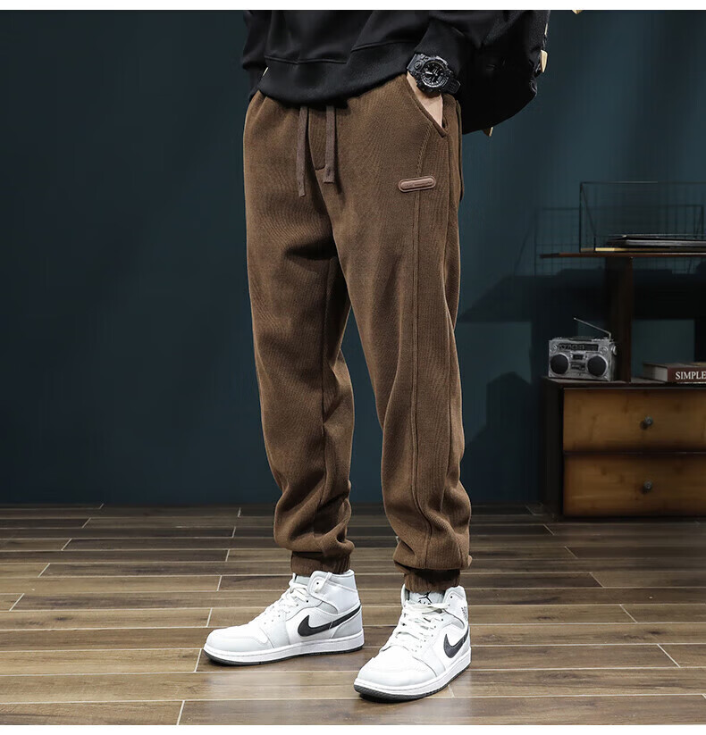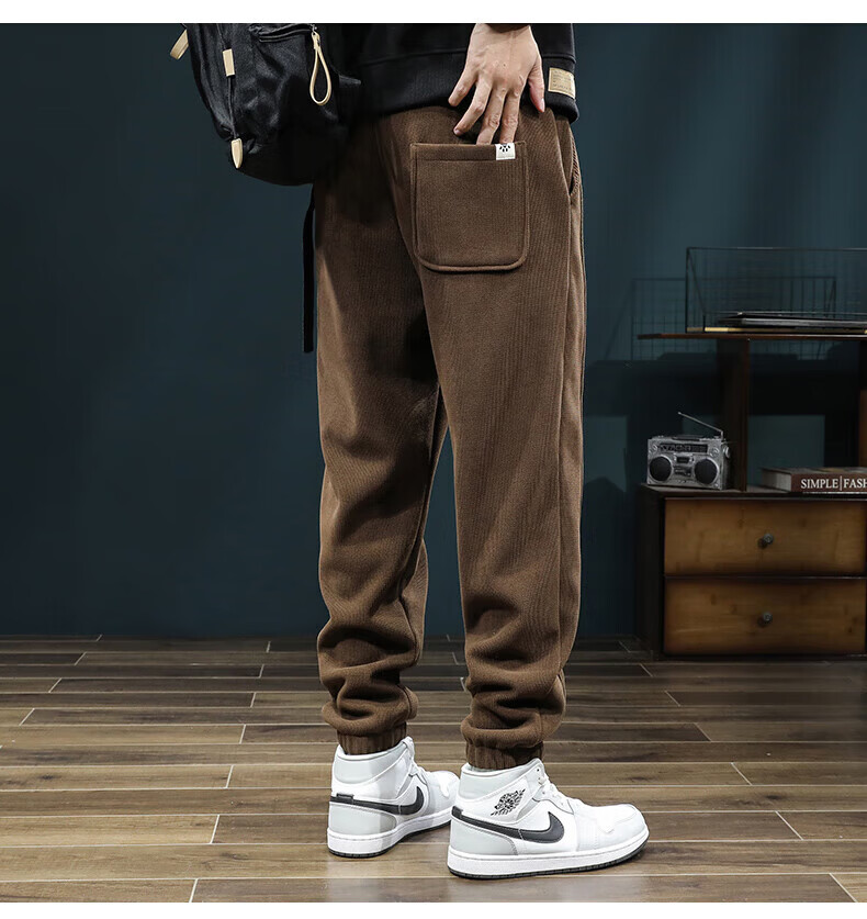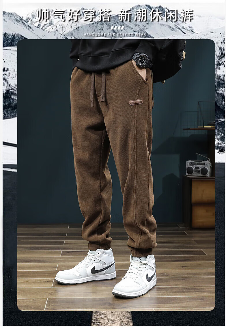 真维斯(Jeanswest)灯芯绒休闲裤男士秋冬季新款雪尼尔宽松束脚卫裤加厚保暖运动长裤 咖色加绒 M