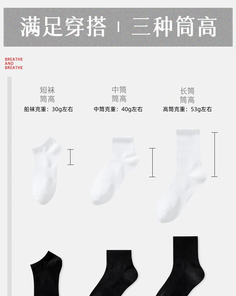 【7A抗菌男袜】一次性袜子男商务纯色黑白灰防臭透气耐磨中筒袜 10双(黑白灰混搭)