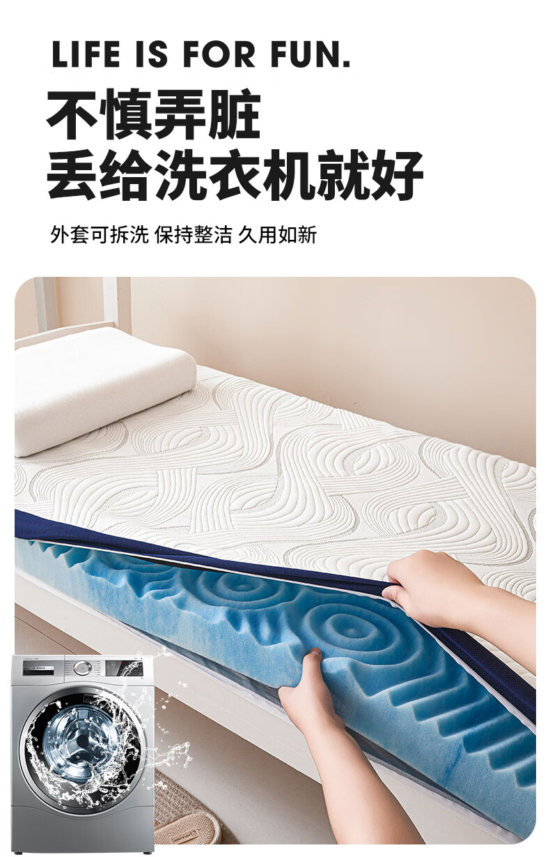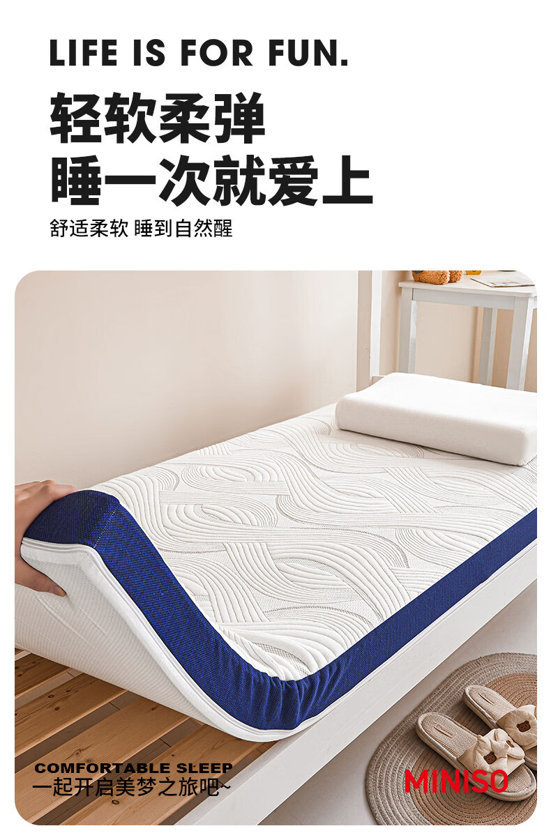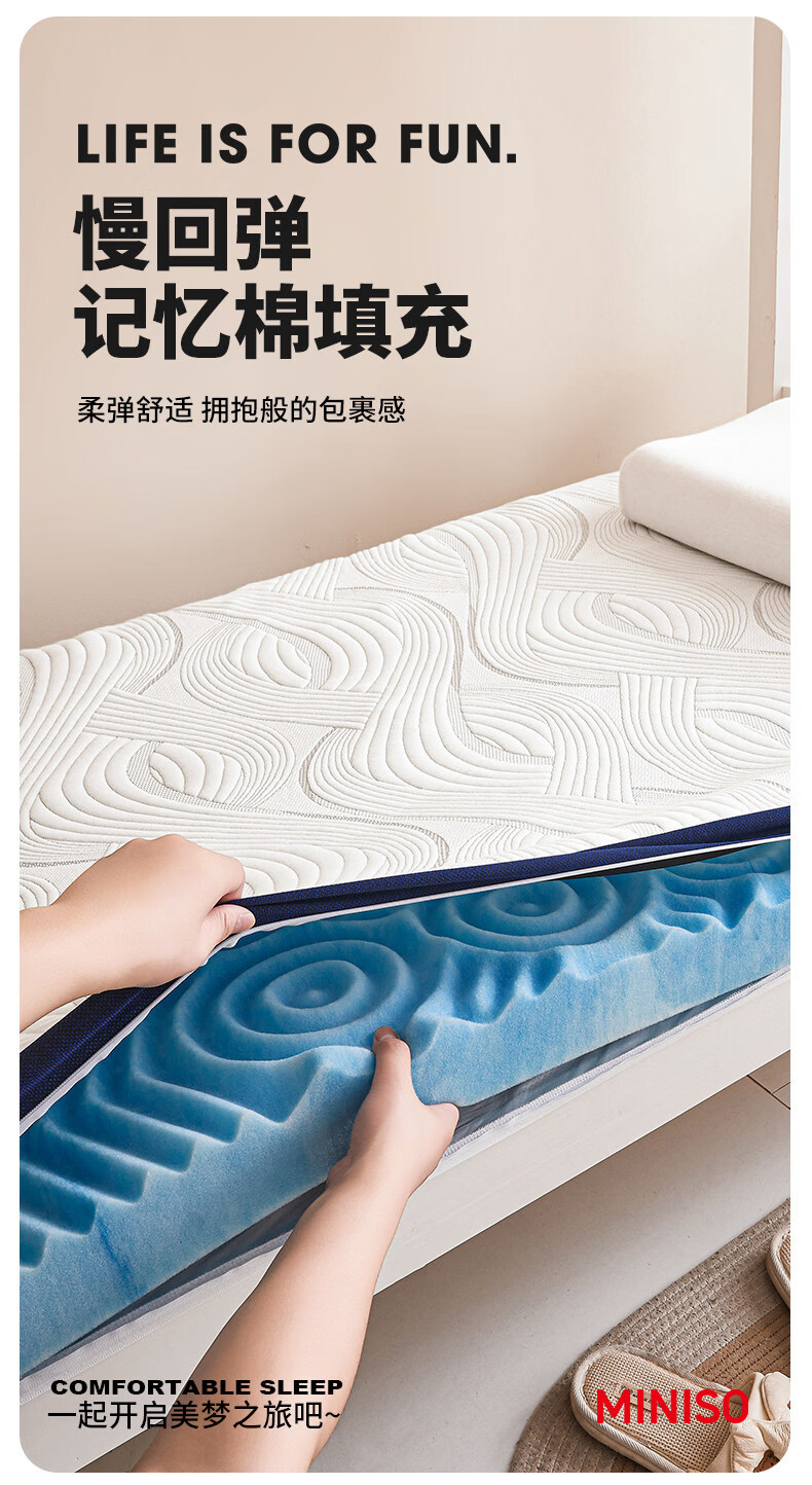 名创优品(MINISO)学生宿舍记忆棉床垫遮盖物 0.9x1.9米床上下铺软垫海绵垫床褥垫子 (零感压力)厚约6cm 学生床:90x190cm【可拆洗外套】