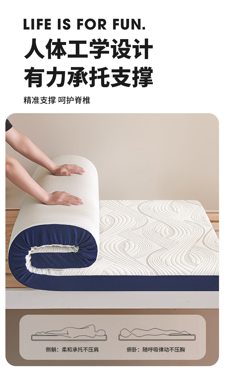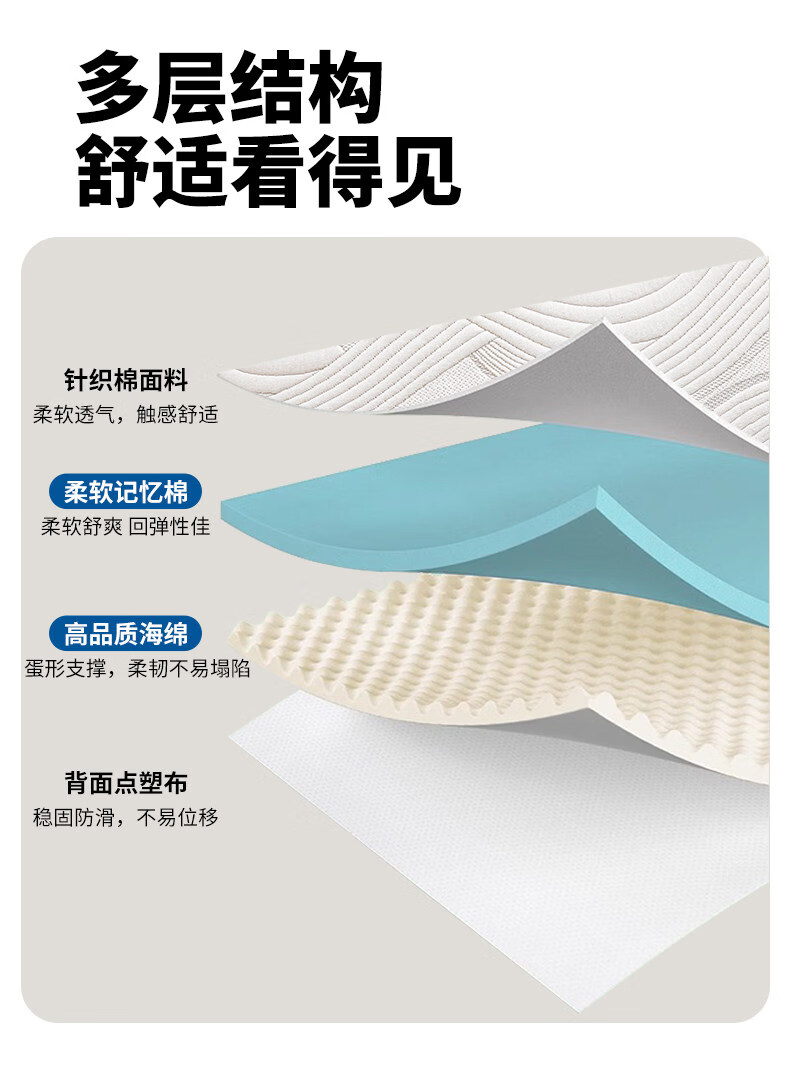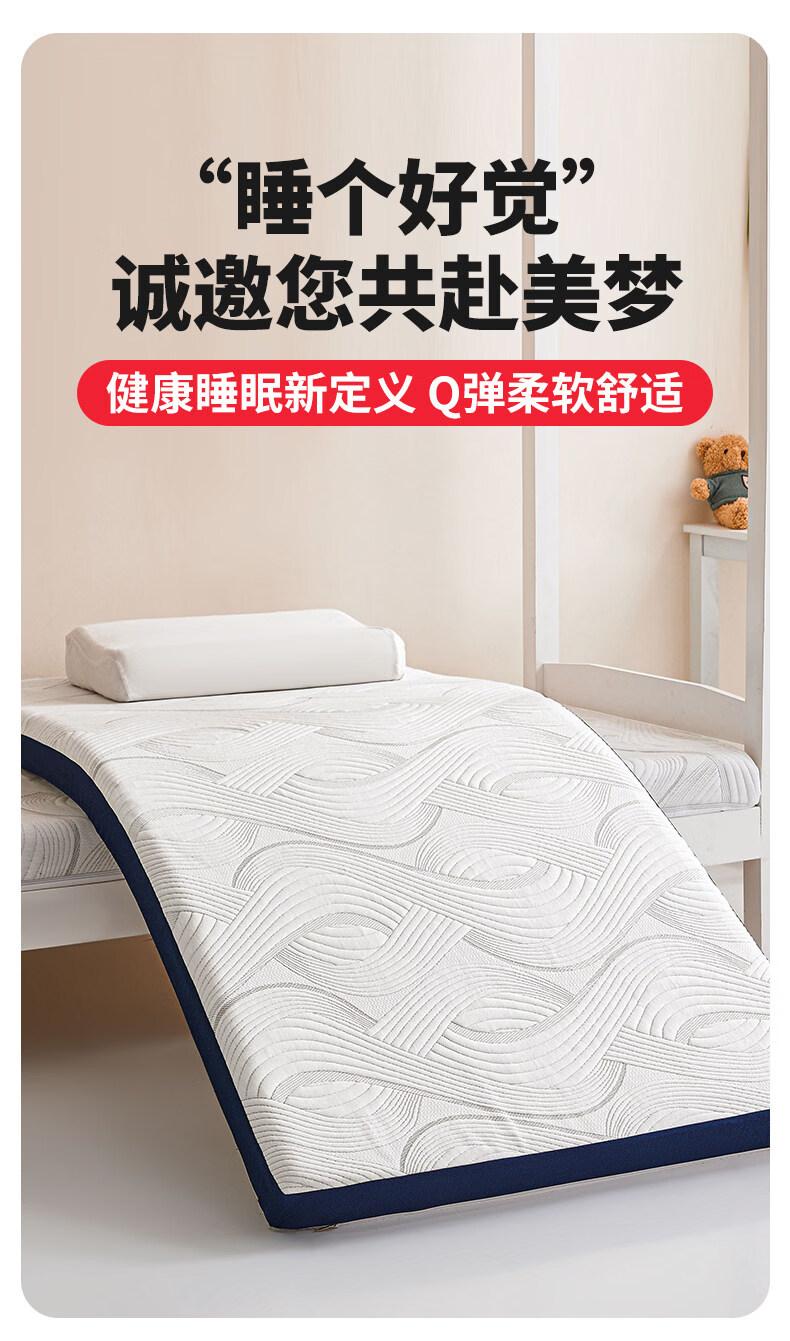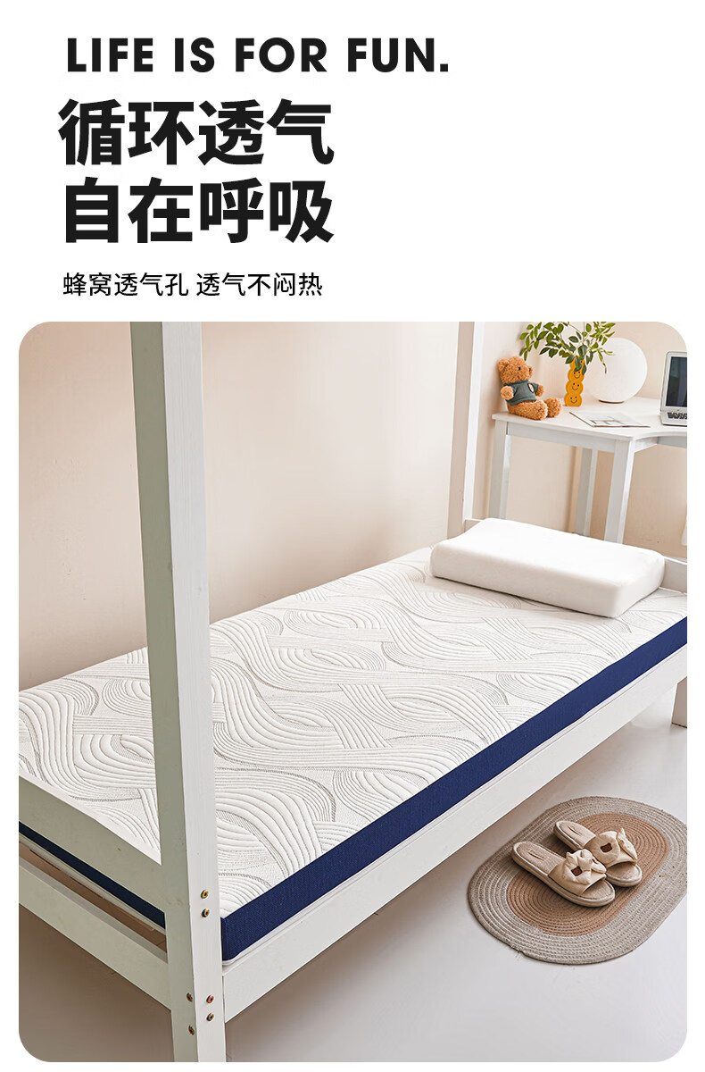 名创优品(MINISO)学生宿舍记忆棉床垫遮盖物 0.9x1.9米床上下铺软垫海绵垫床褥垫子 (零感压力)厚约6cm 学生床:90x190cm【可拆洗外套】