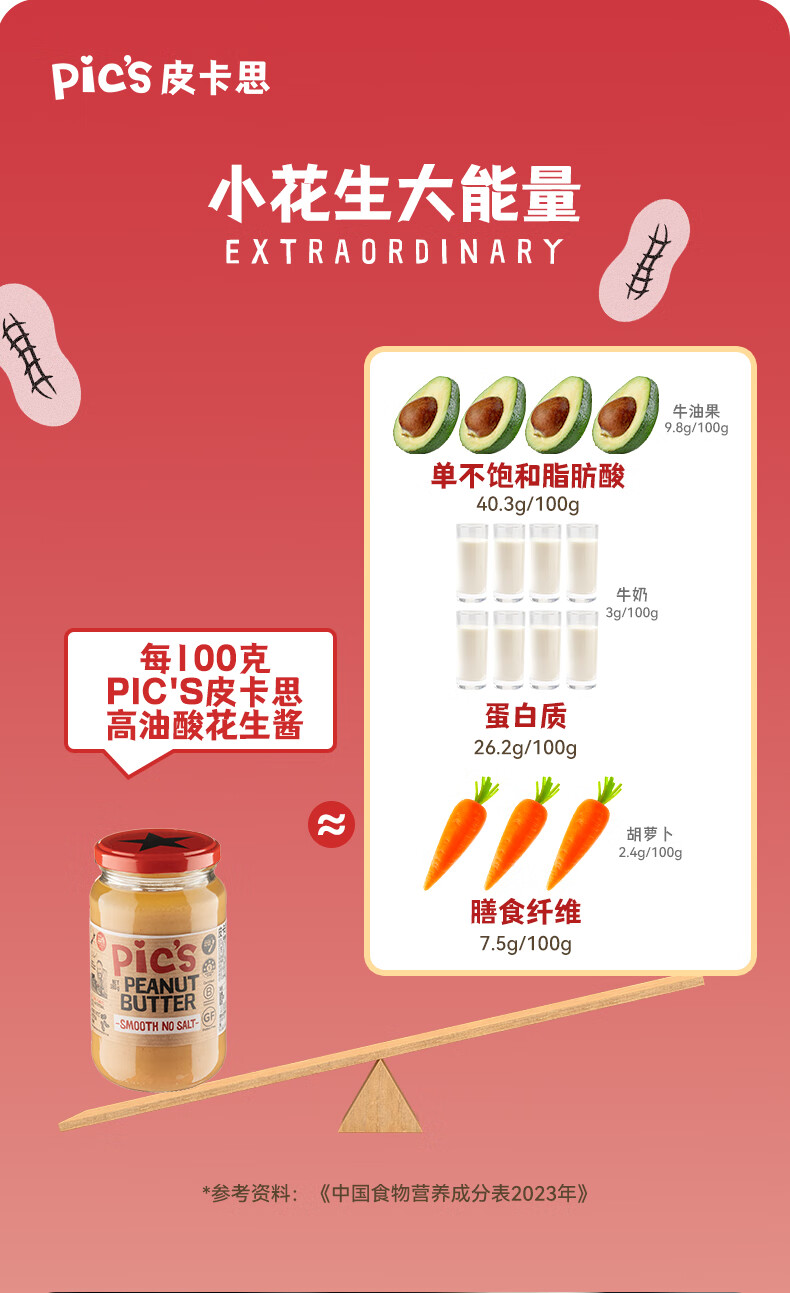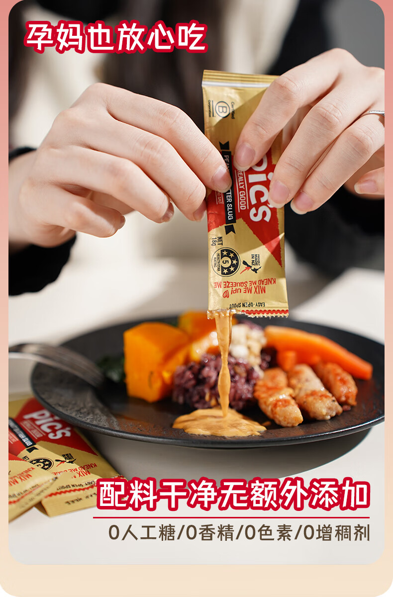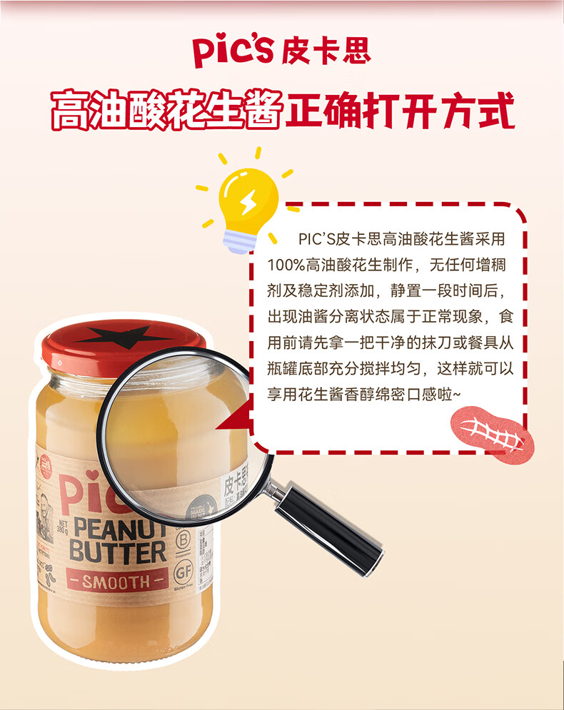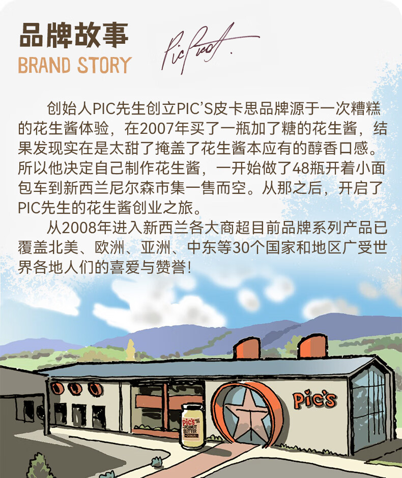 皮卡思pics花生酱 无添加糖 微盐有盐颗粒款195g 进口抹面包宝宝拌面酱