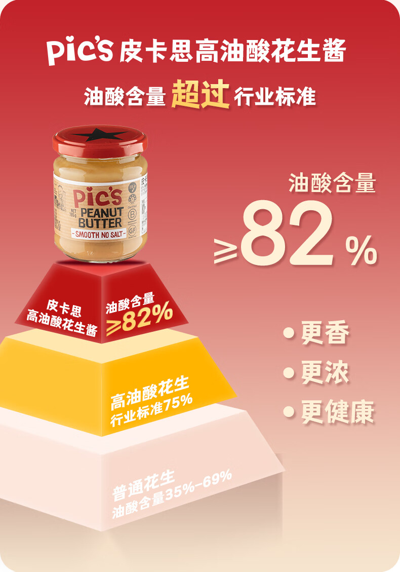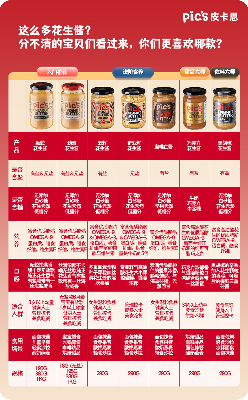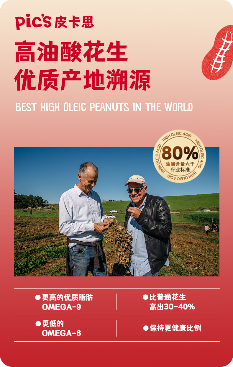 皮卡思pics花生酱 无添加糖 微盐有盐颗粒款195g 进口抹面包宝宝拌面酱