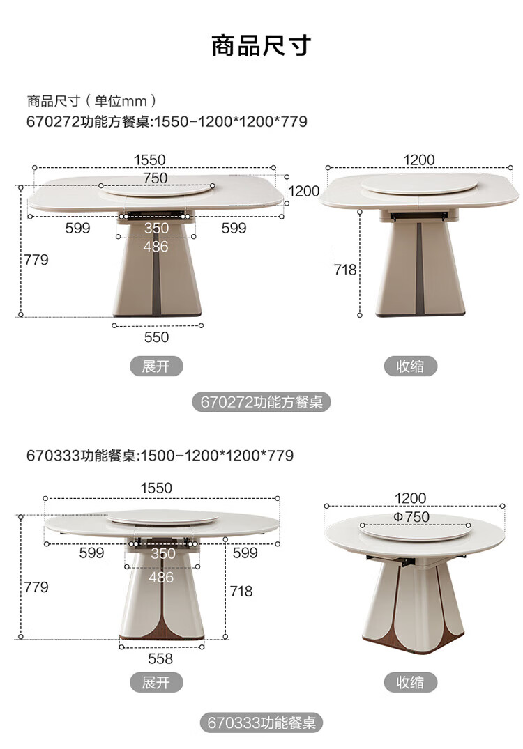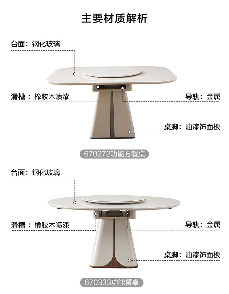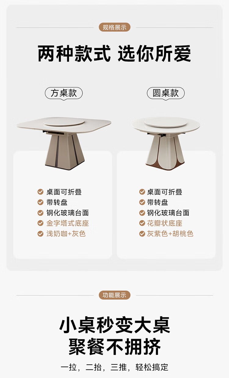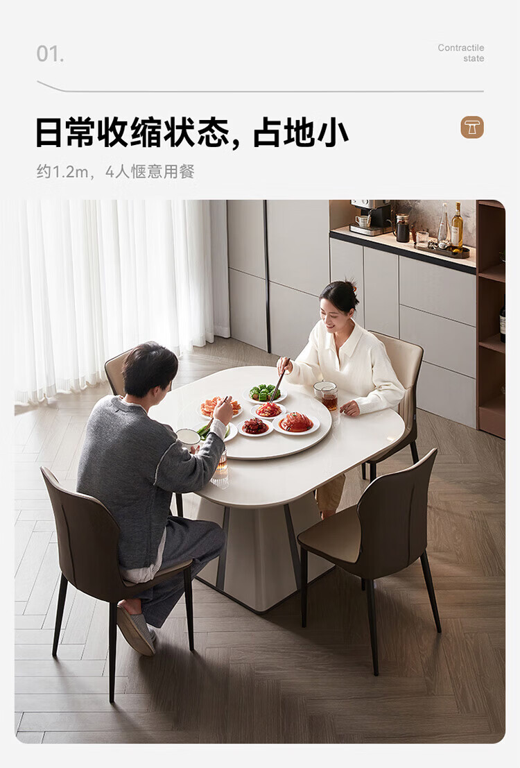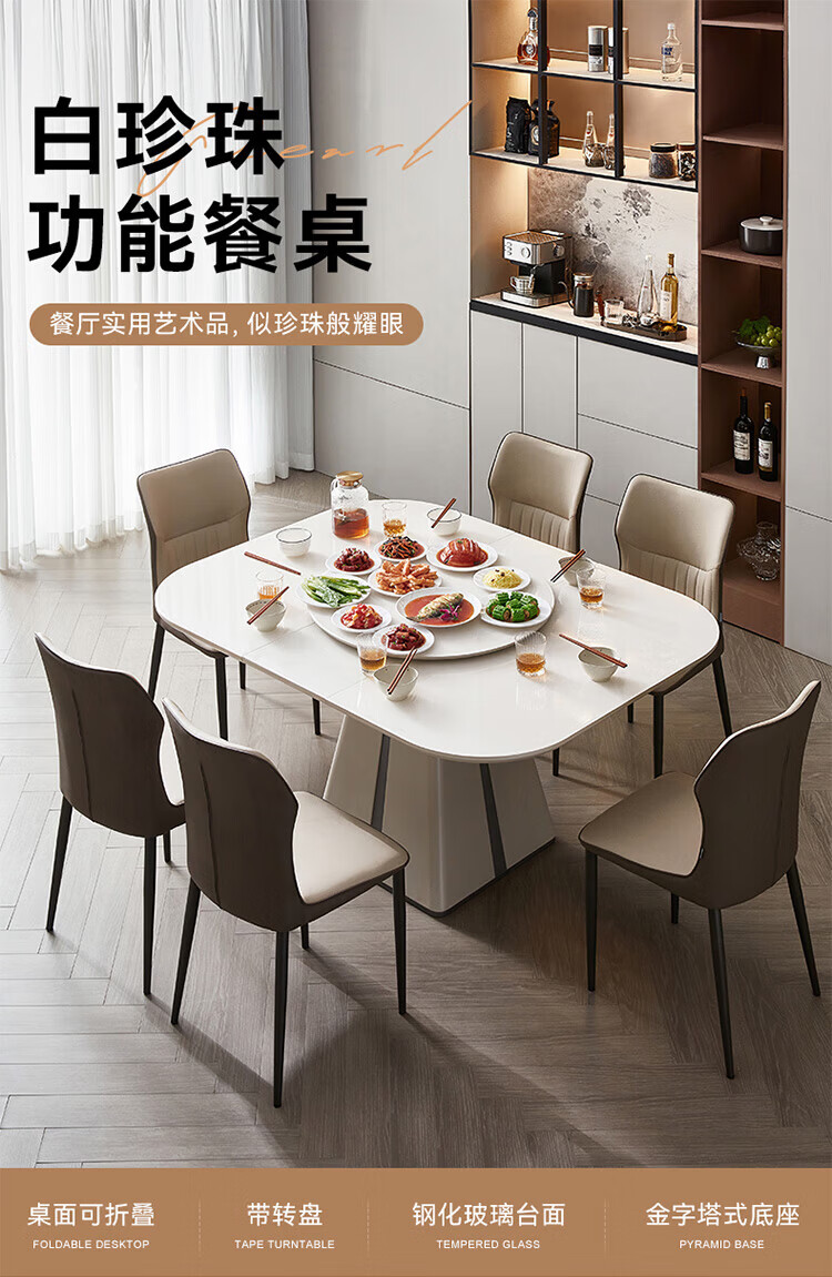 全友家居2025新品功能可伸缩折叠方餐桌钢化玻璃台面家用吃饭桌子家具 30餐椅*2