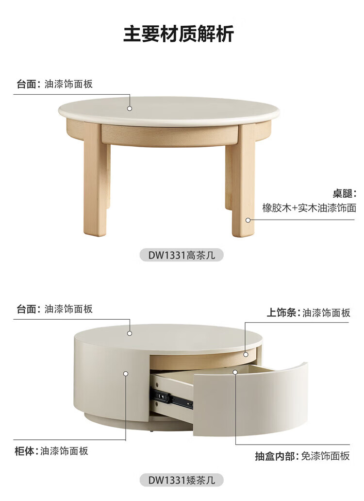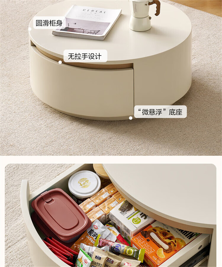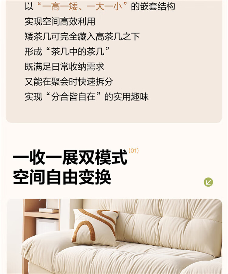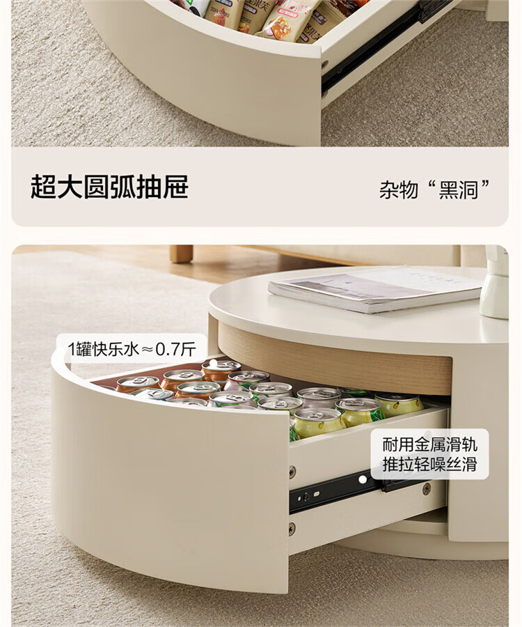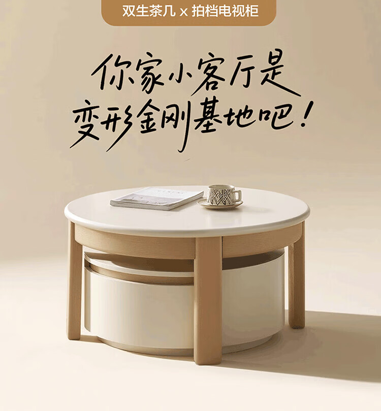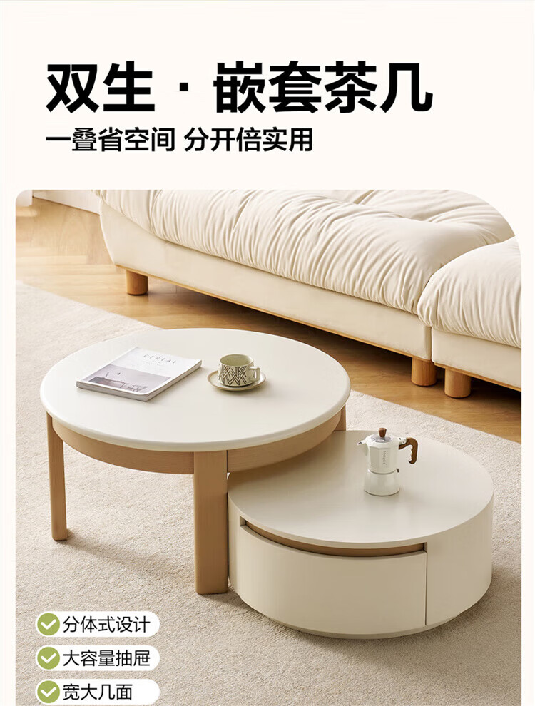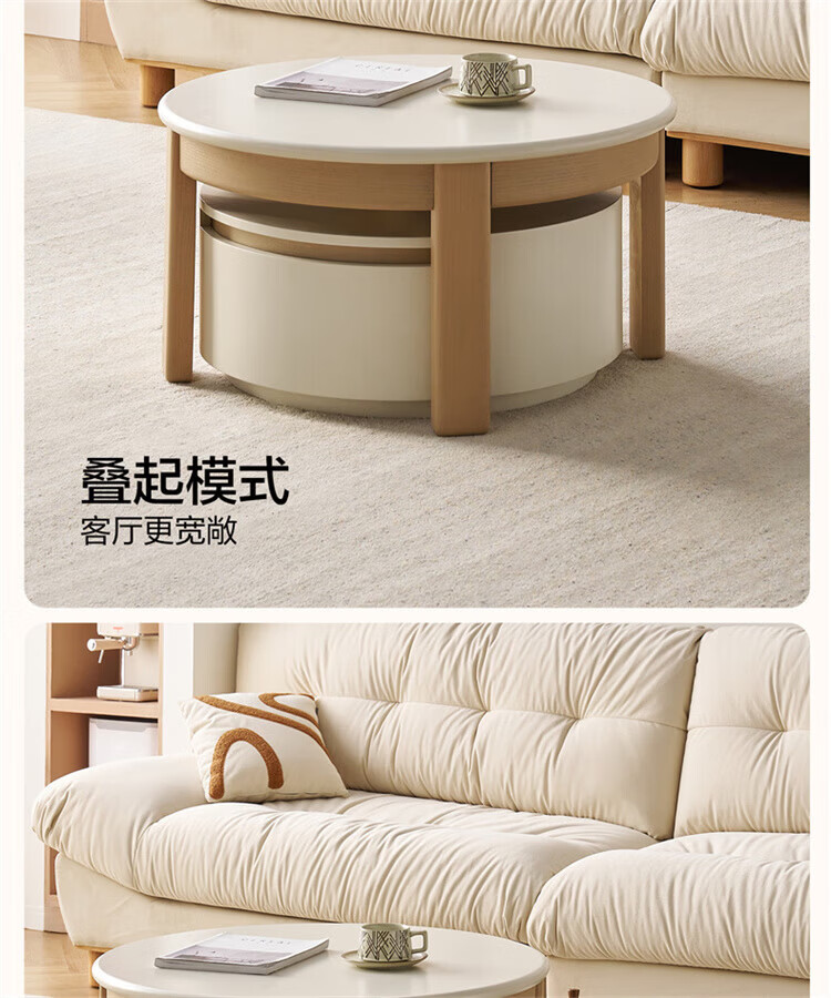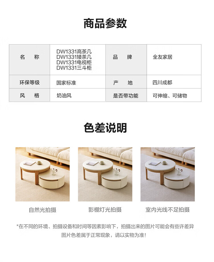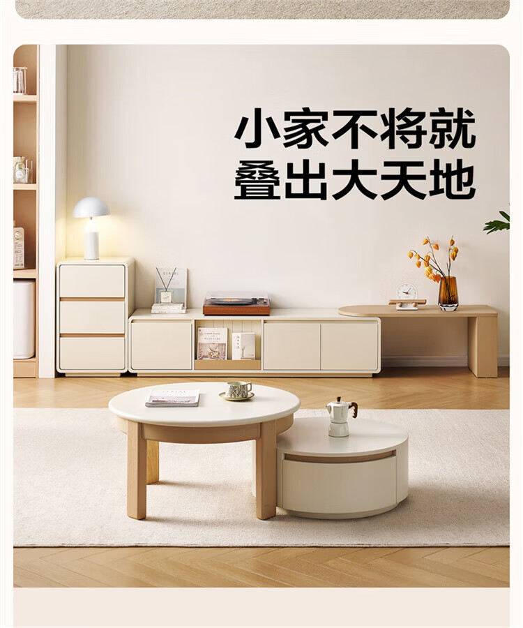 全友家居奶油风电视柜茶几组合柜家具客厅收纳储物小柜子高矮茶几组合 高茶几 分体式设计+大容量抽屉+宽大台面