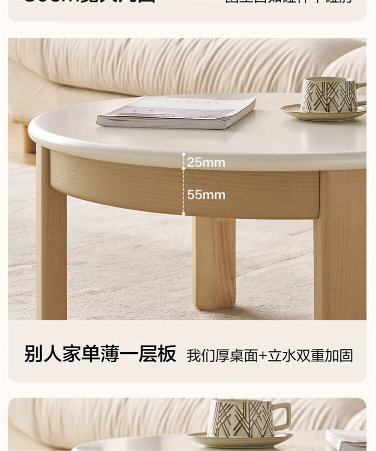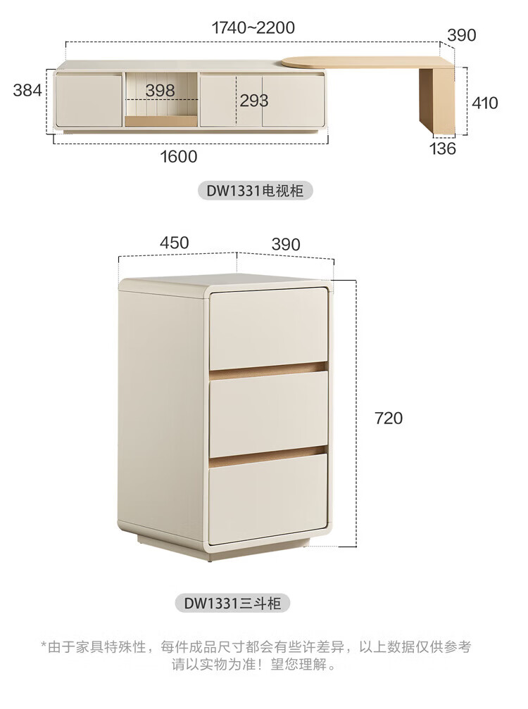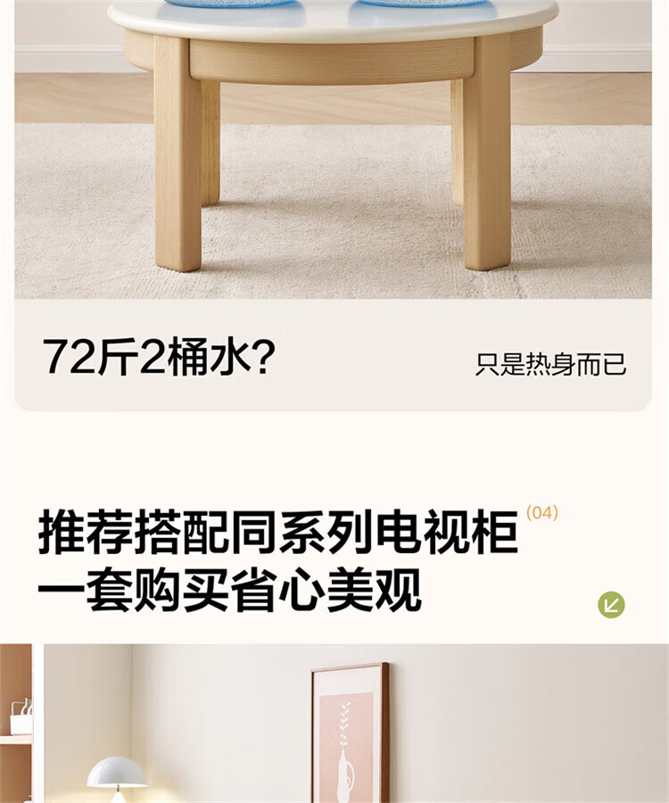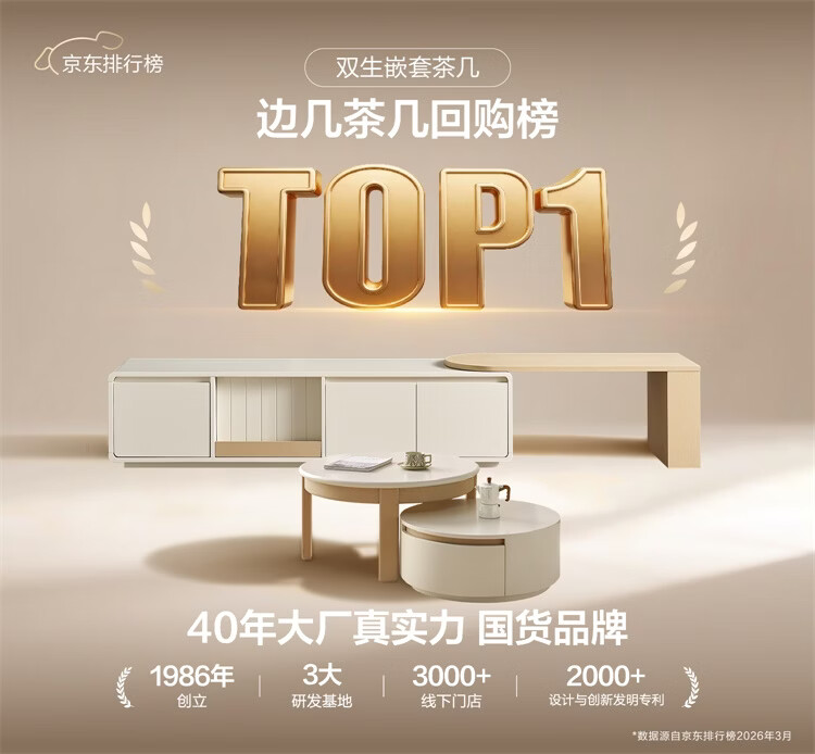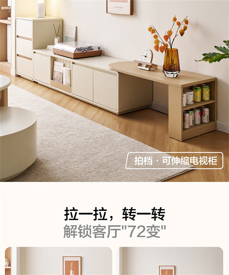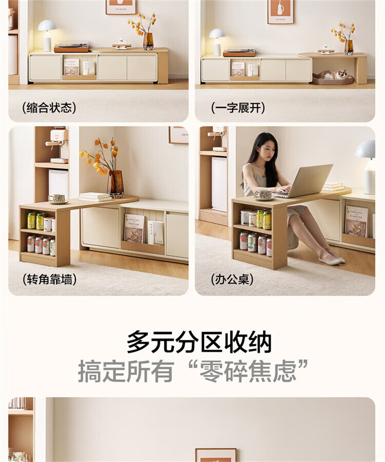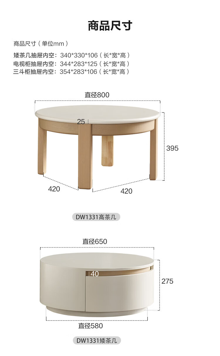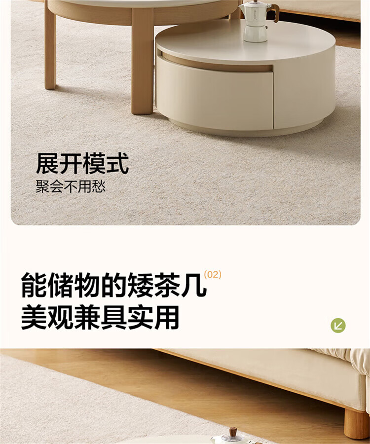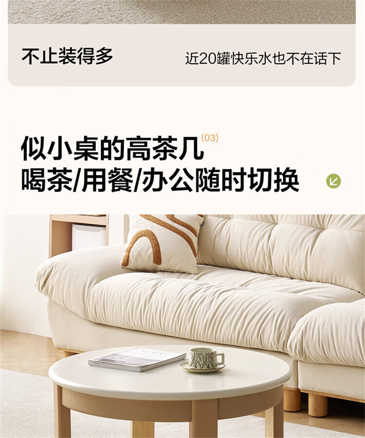 全友家居奶油风电视柜茶几组合柜家具客厅收纳储物小柜子高矮茶几组合 高茶几 分体式设计+大容量抽屉+宽大台面