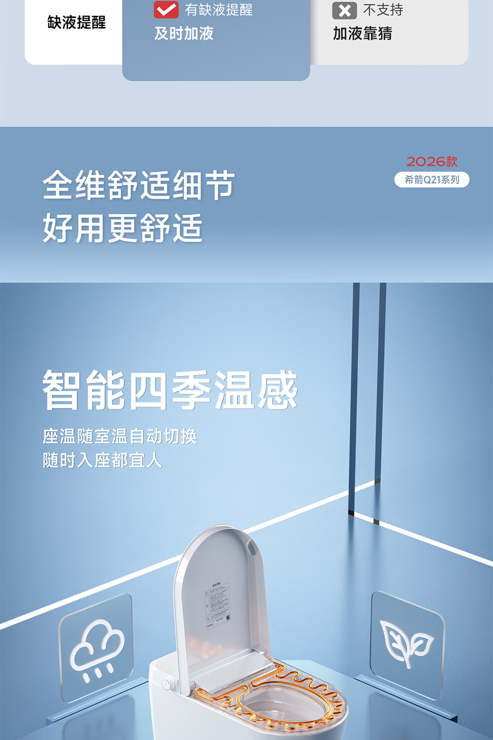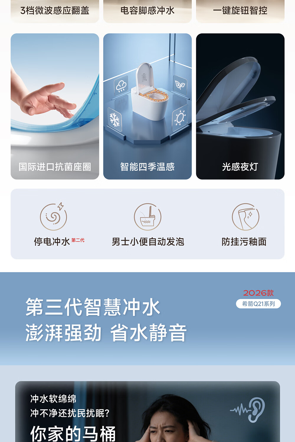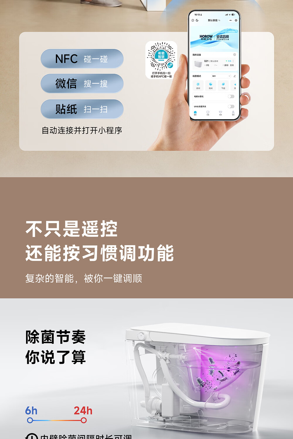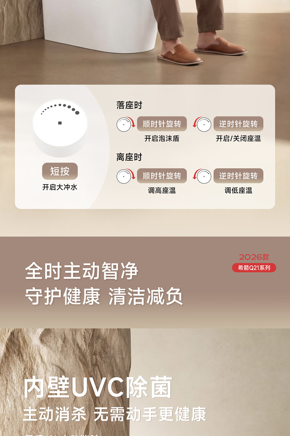 希箭【26年新品】轻智能马桶UVC杀菌NFC智控Ai智慧冲翻圈翻盖Q21-D 【Q21-D Max】Ai+NFC+UVC陶瓷杀菌 坑距是295-390选305 305/300mm