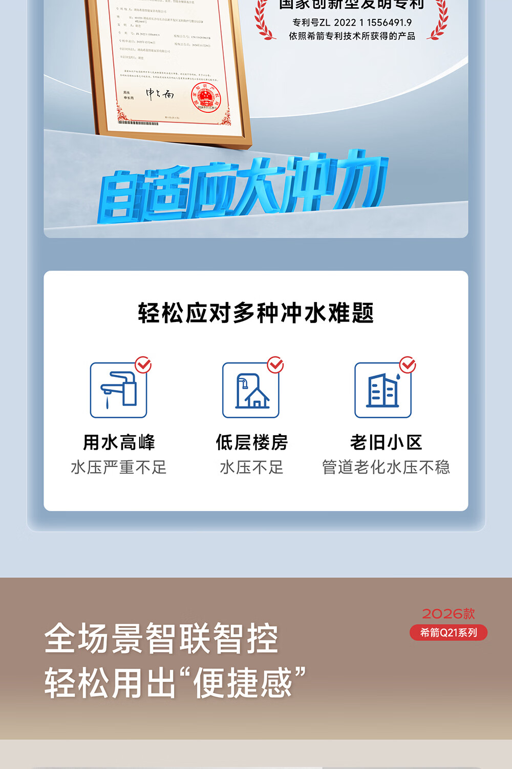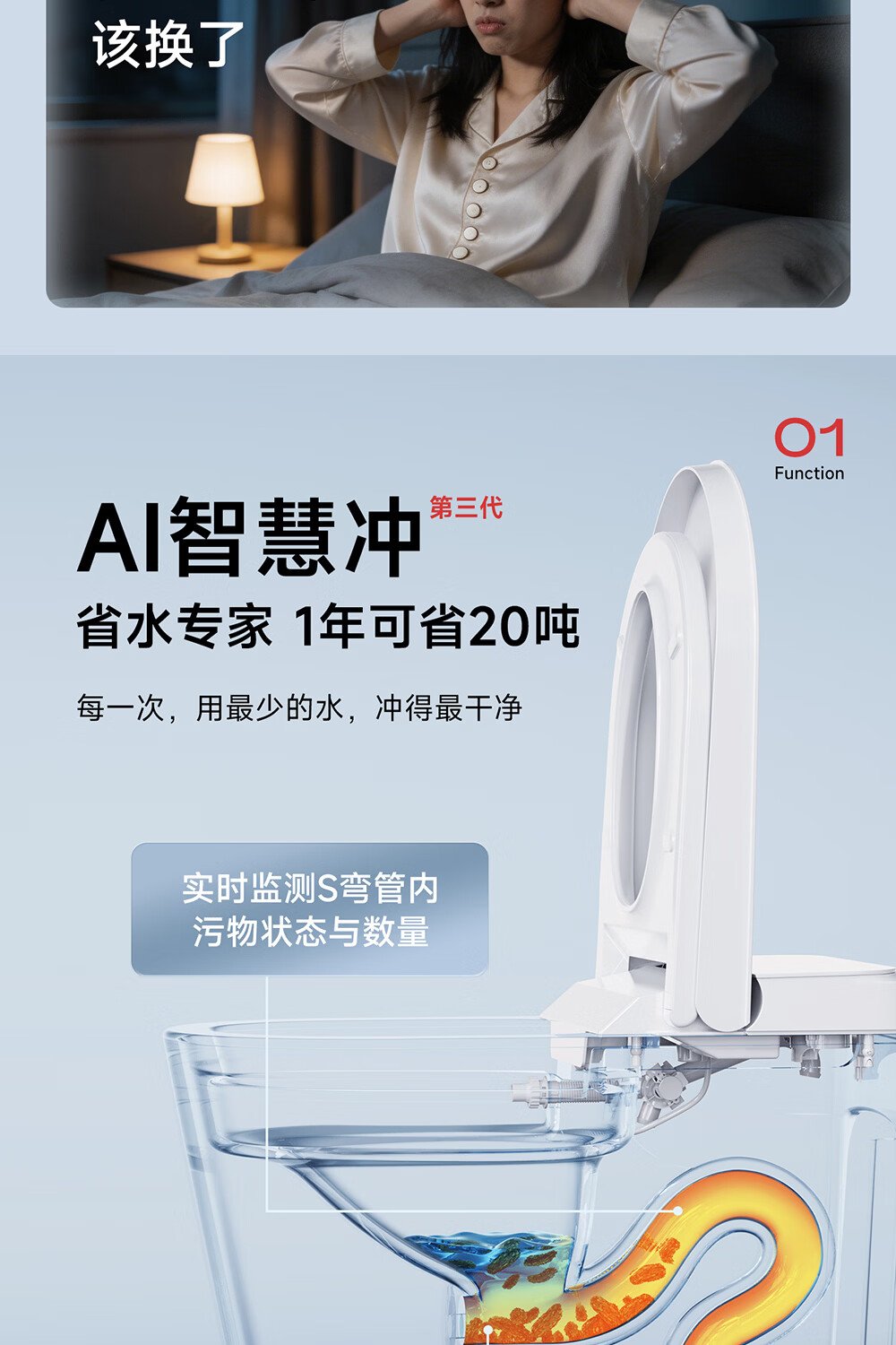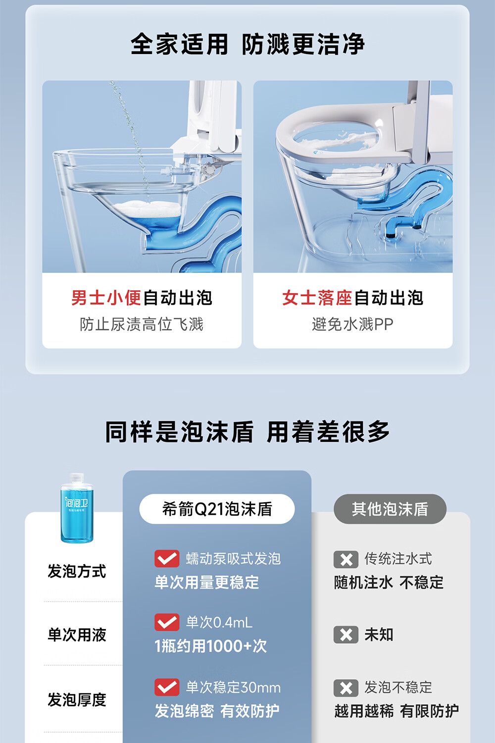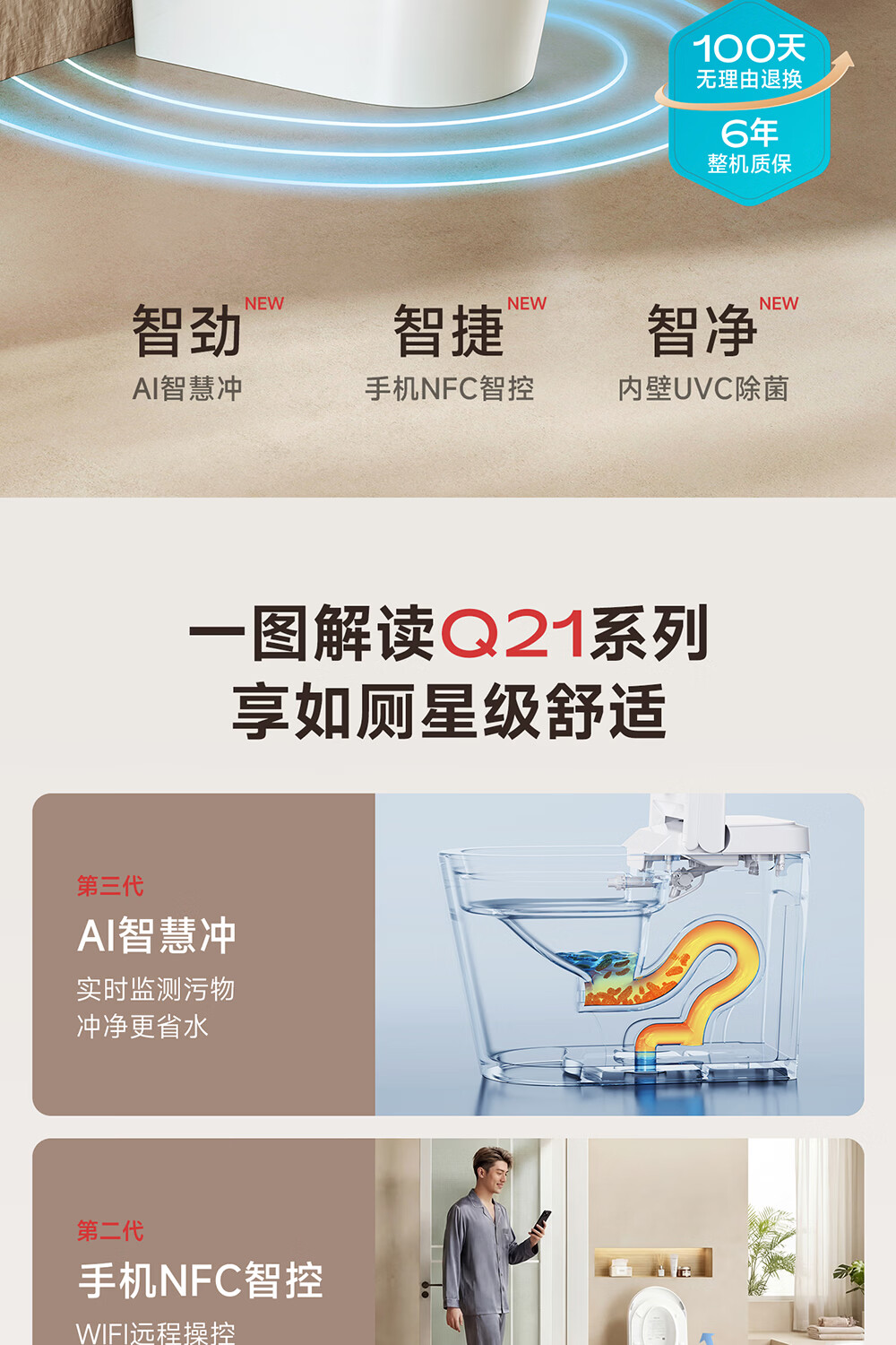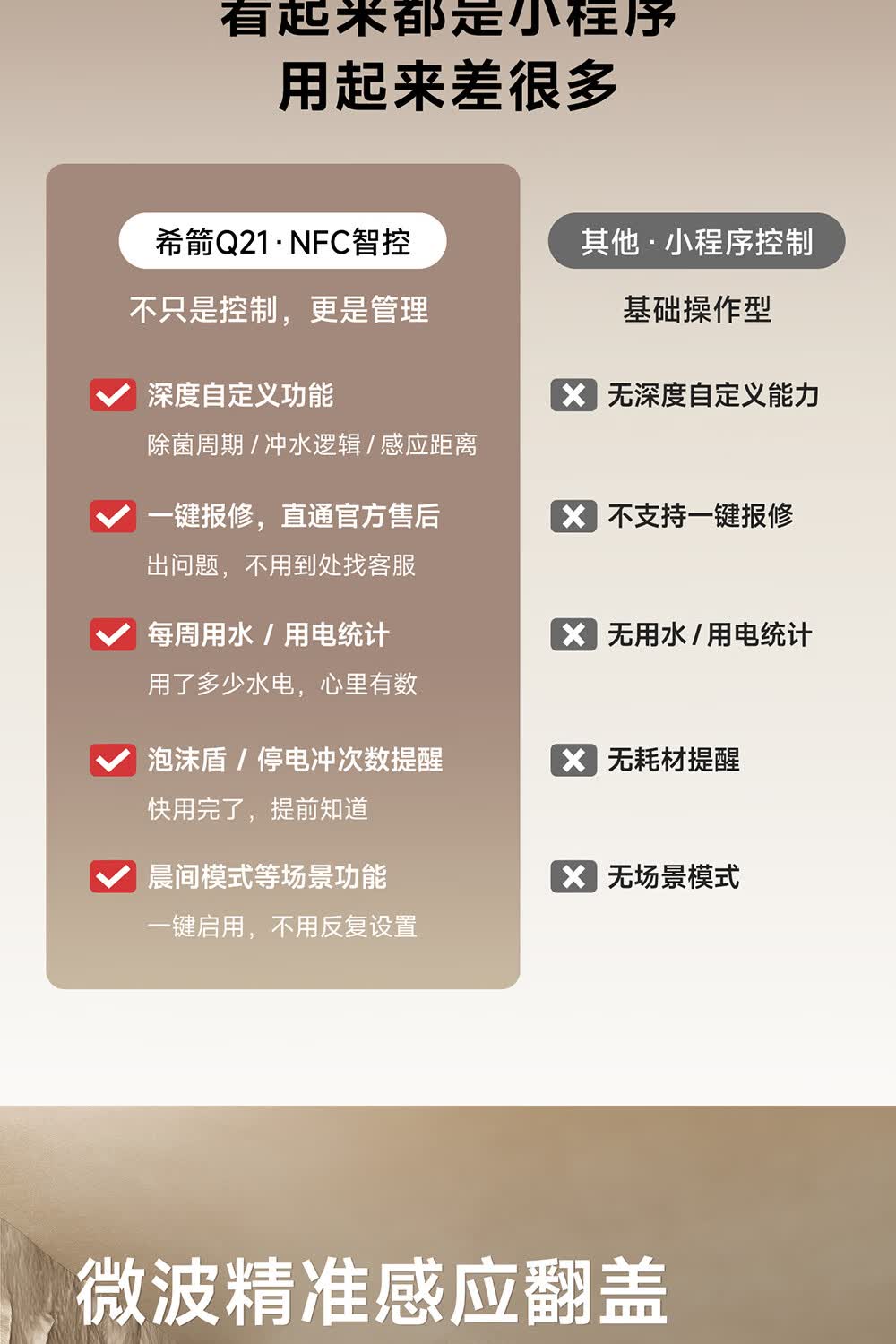 希箭【26年新品】轻智能马桶UVC杀菌NFC智控Ai智慧冲翻圈翻盖Q21-D 【Q21-D Max】Ai+NFC+UVC陶瓷杀菌 坑距是295-390选305 305/300mm