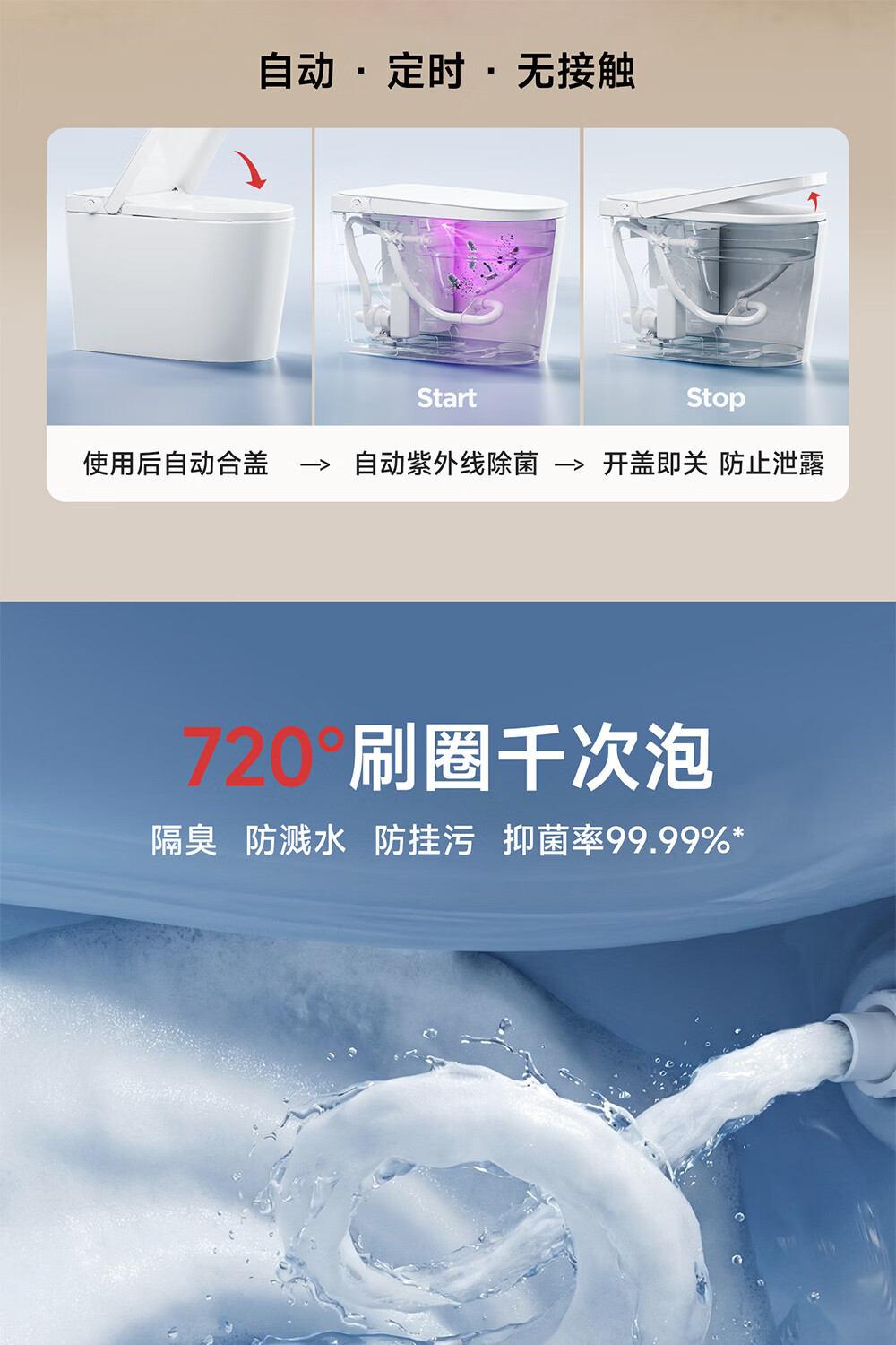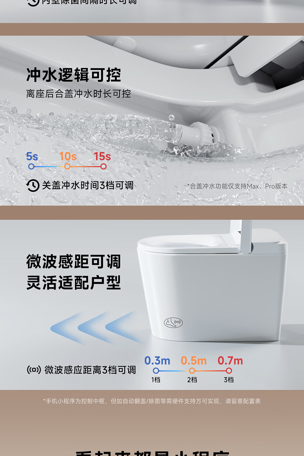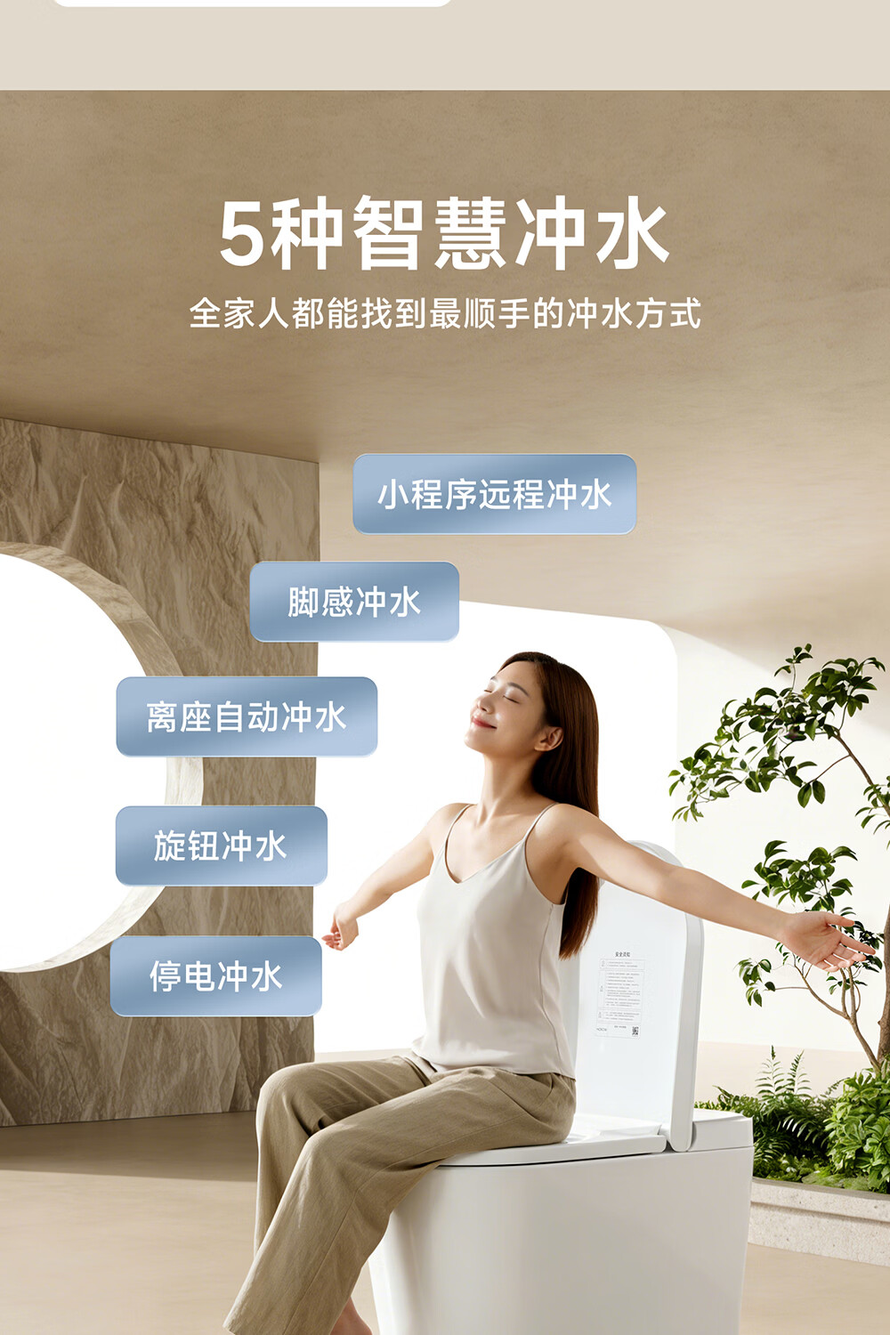 SMARTMI智米智能马桶强力除臭杀菌轻音自动翻盖坐便器无坑距限制3S智能版 白色 无坑距限制 300/400