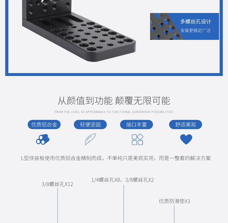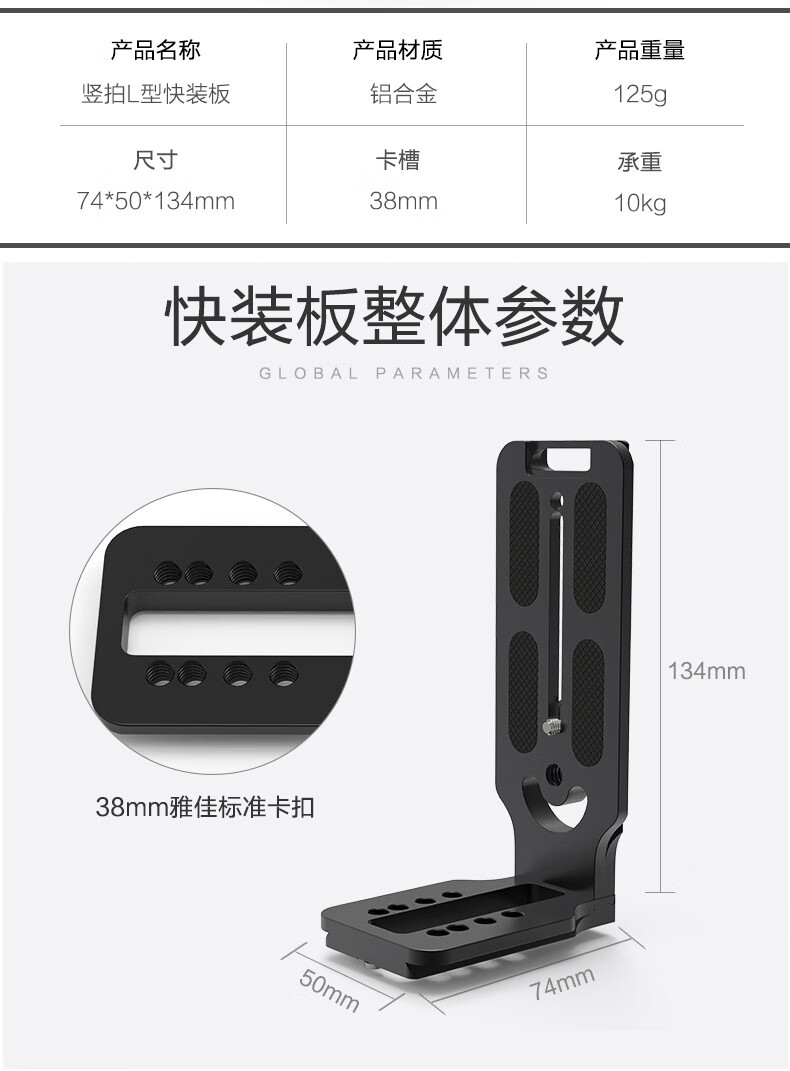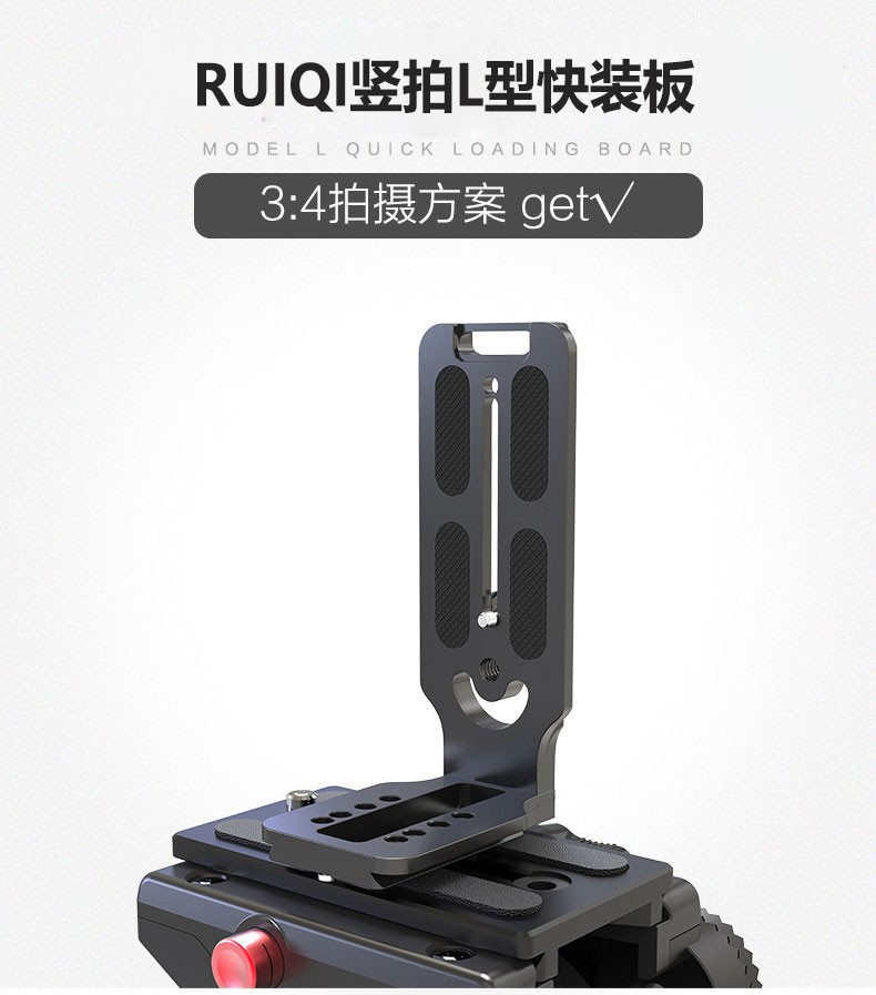 锐七 RUIQI竖拍L型快装板90度单反相机通用索尼佳能5D2/3/4 竖拍板4k摄像机 L竖拍板(承重10KG)