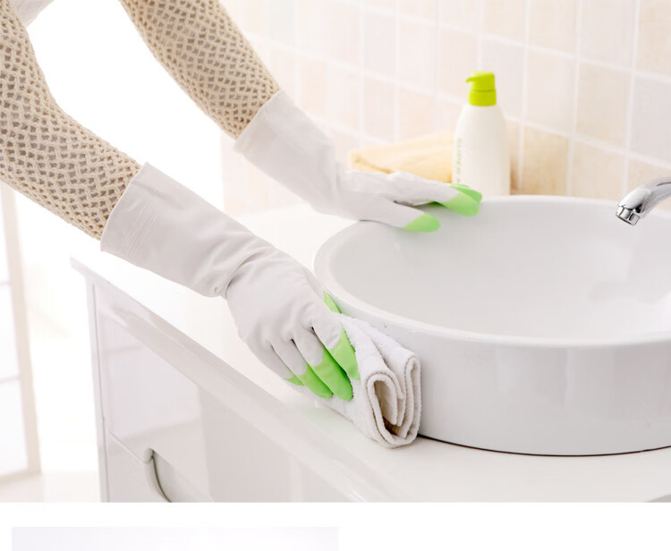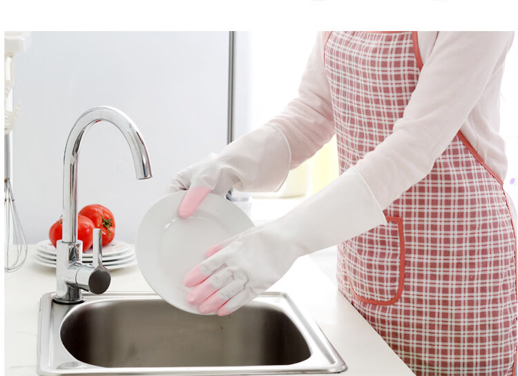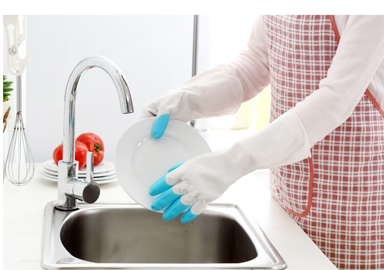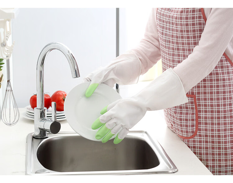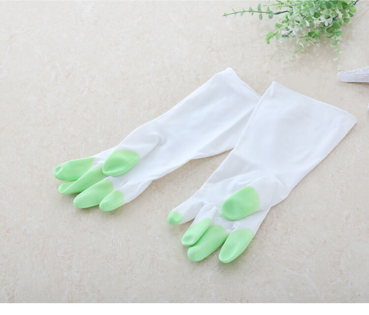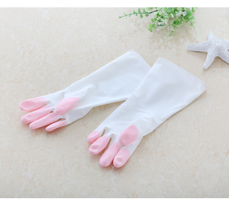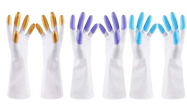 JEPOO龙首 指尖加强洗碗手套轻薄贴手穿戴舒适家务防水胶皮洗衣服清洁 花色 5双 大码