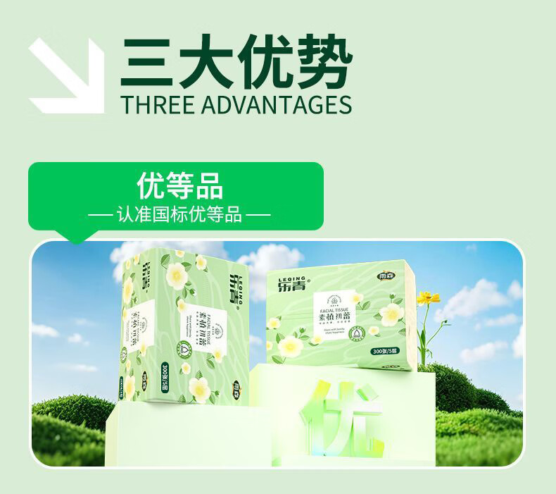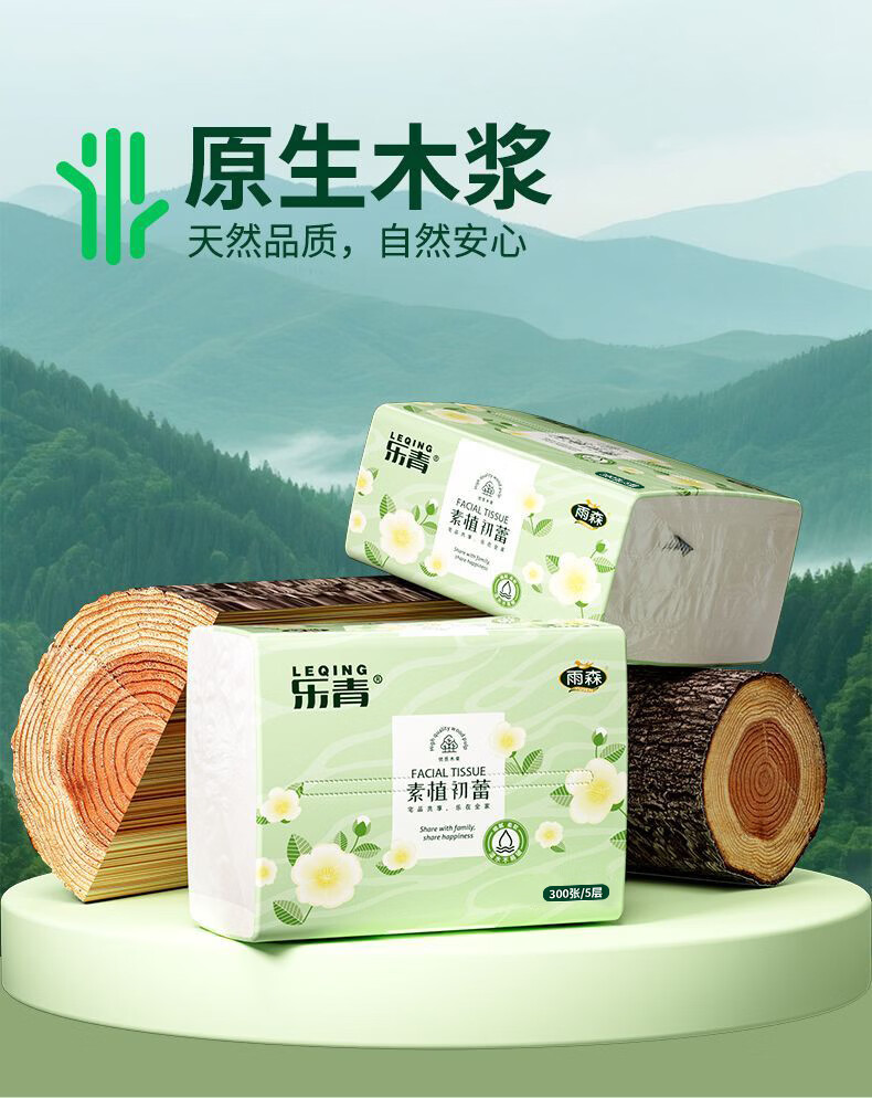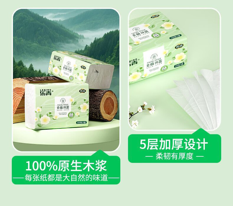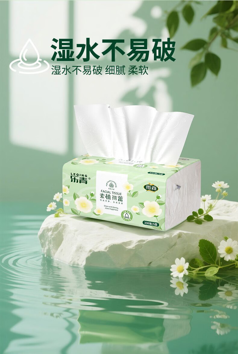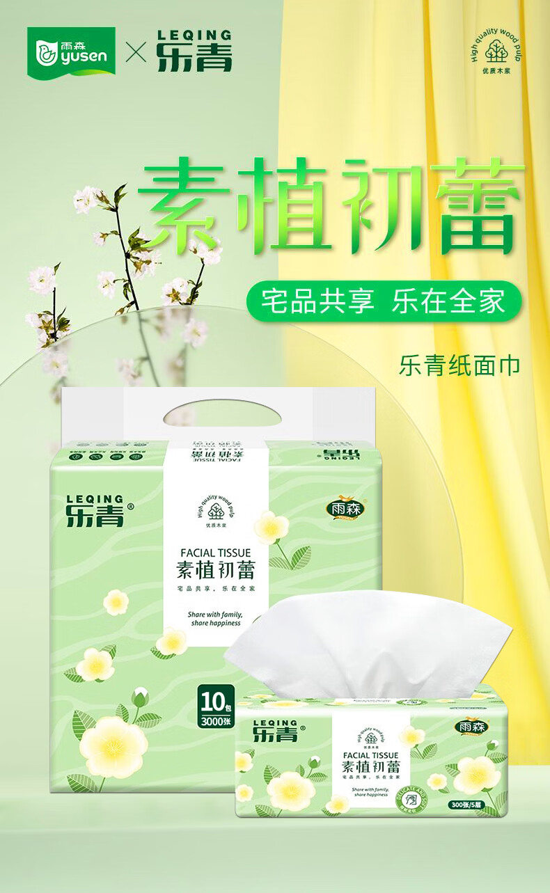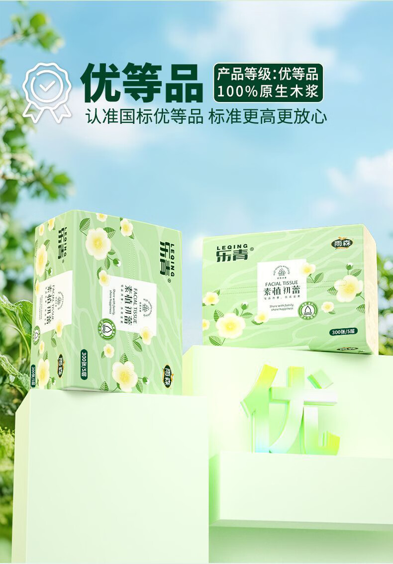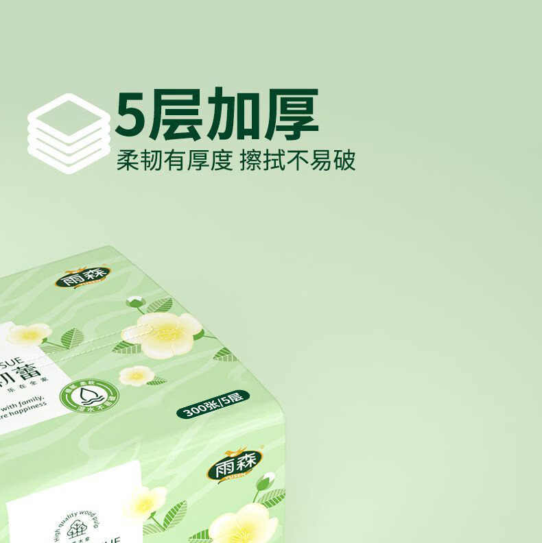 雨森(YUSEN)纸抽 乐青抽纸 家庭装10包/大提加厚5层擦手纸亲肤棉柔 300张/提 5层 300张*30包 【客卧厨卫3月量】