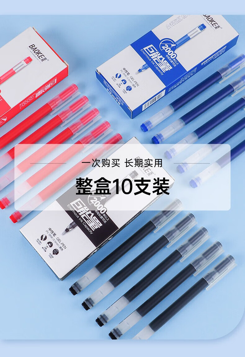 宝克(BAOKE)巨能写中性笔 0.5mm学生刷题笔 办公水笔 顺滑写字笔 办公学习用品 文具 36支 黑色 全针管笔 文具