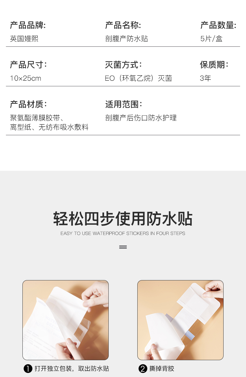 嫚熙(EMXEE) 剖腹产防水贴伤口贴产后产妇洗澡贴 5片