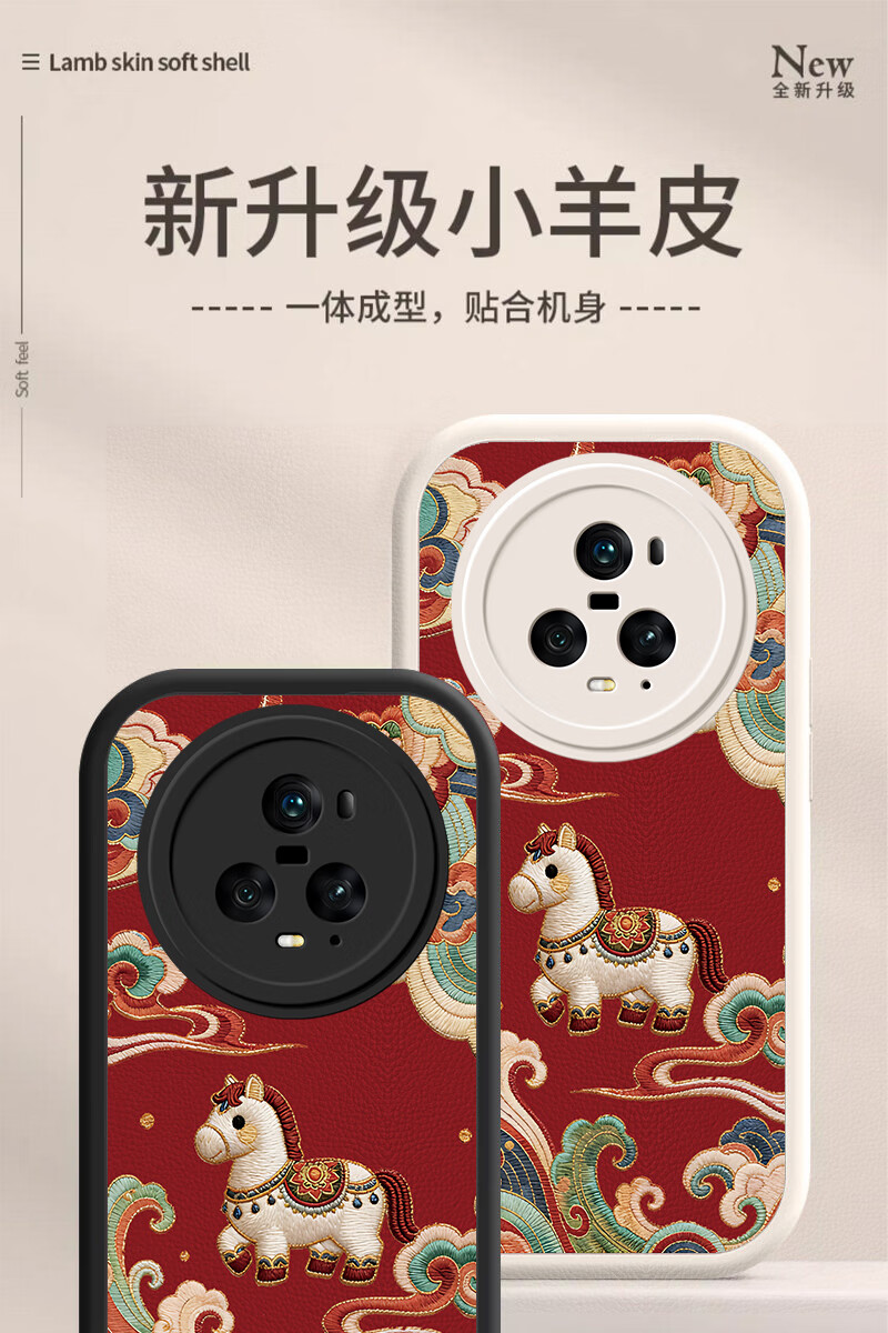 古方舟适用荣耀Magic6Pro手机壳6至臻简约复古敦煌彩绘小羊皮高档magic6RS新年款硅胶镜头全包男女外壳 荣耀Magic6至臻版【红色-敦煌萌马】