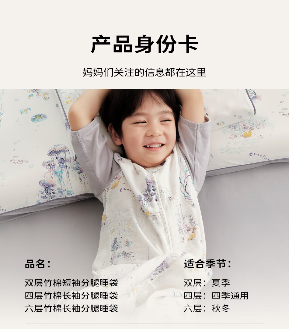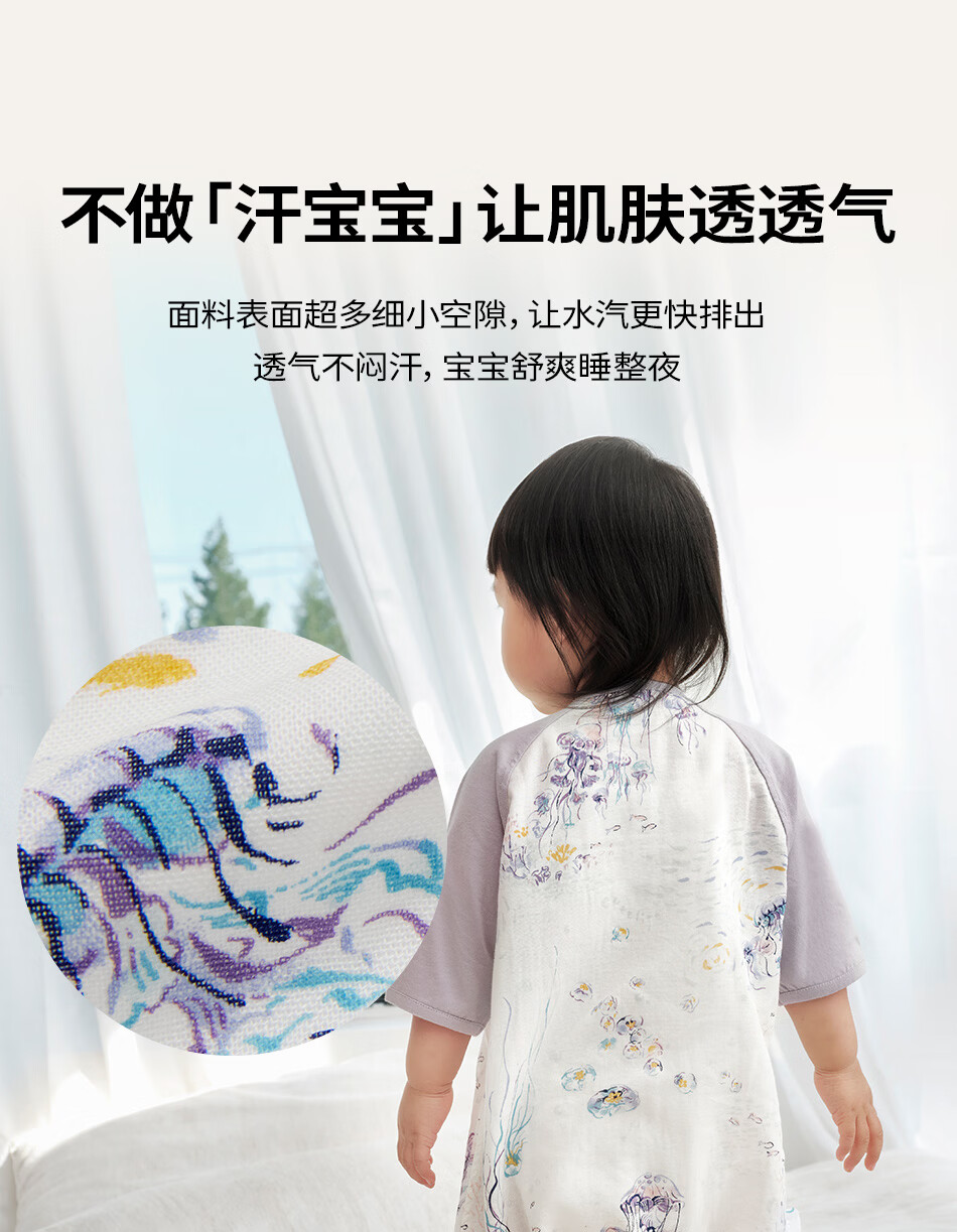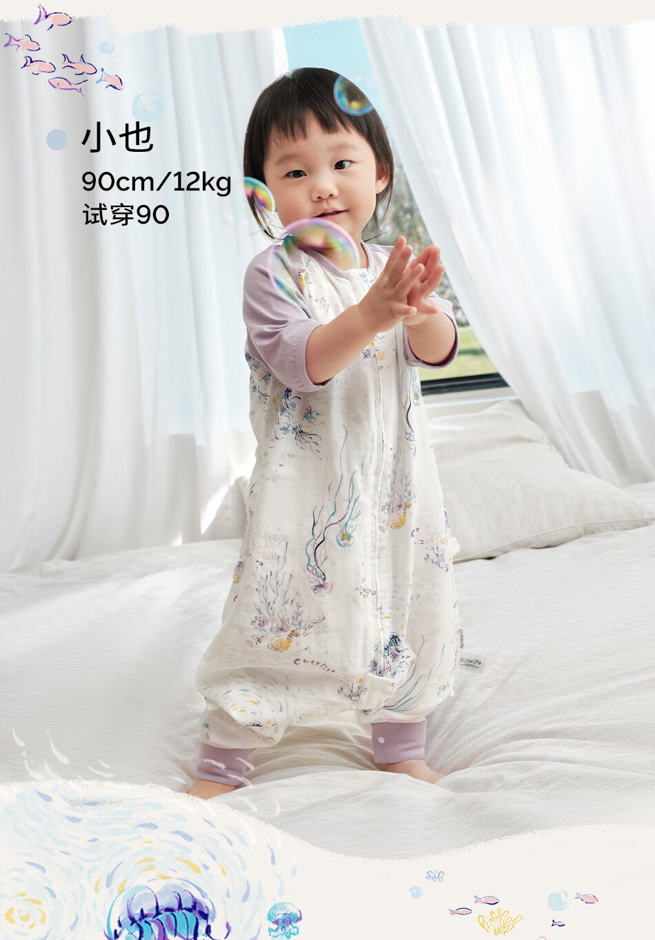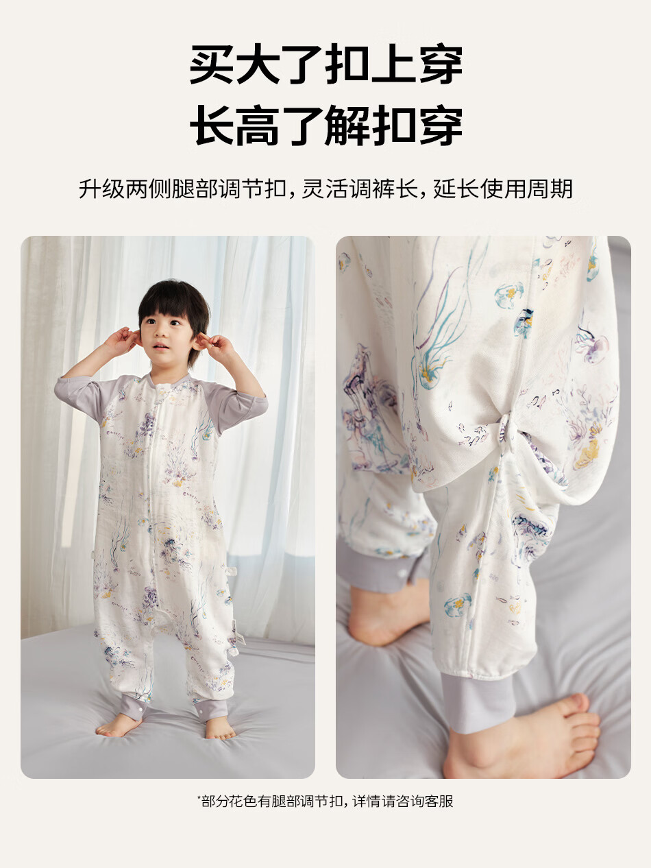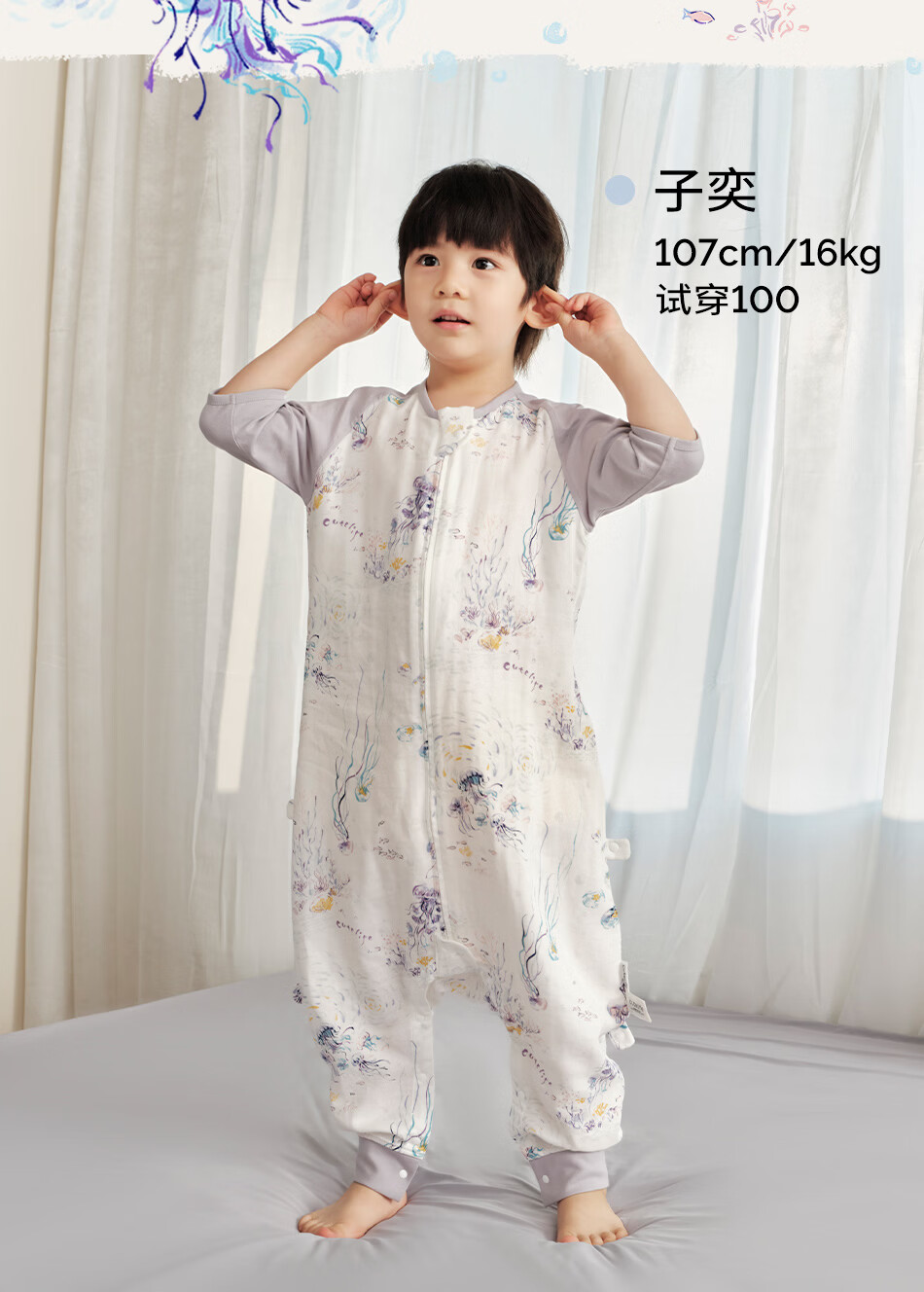 Cutelife婴儿睡袋竹棉纱布分腿睡袋短袖四六层透气婴幼儿童四季通用防踢被 【新品-双层短袖】水母星河(室温26度以上) 100码 /身高95-105cm【2.5-4岁】