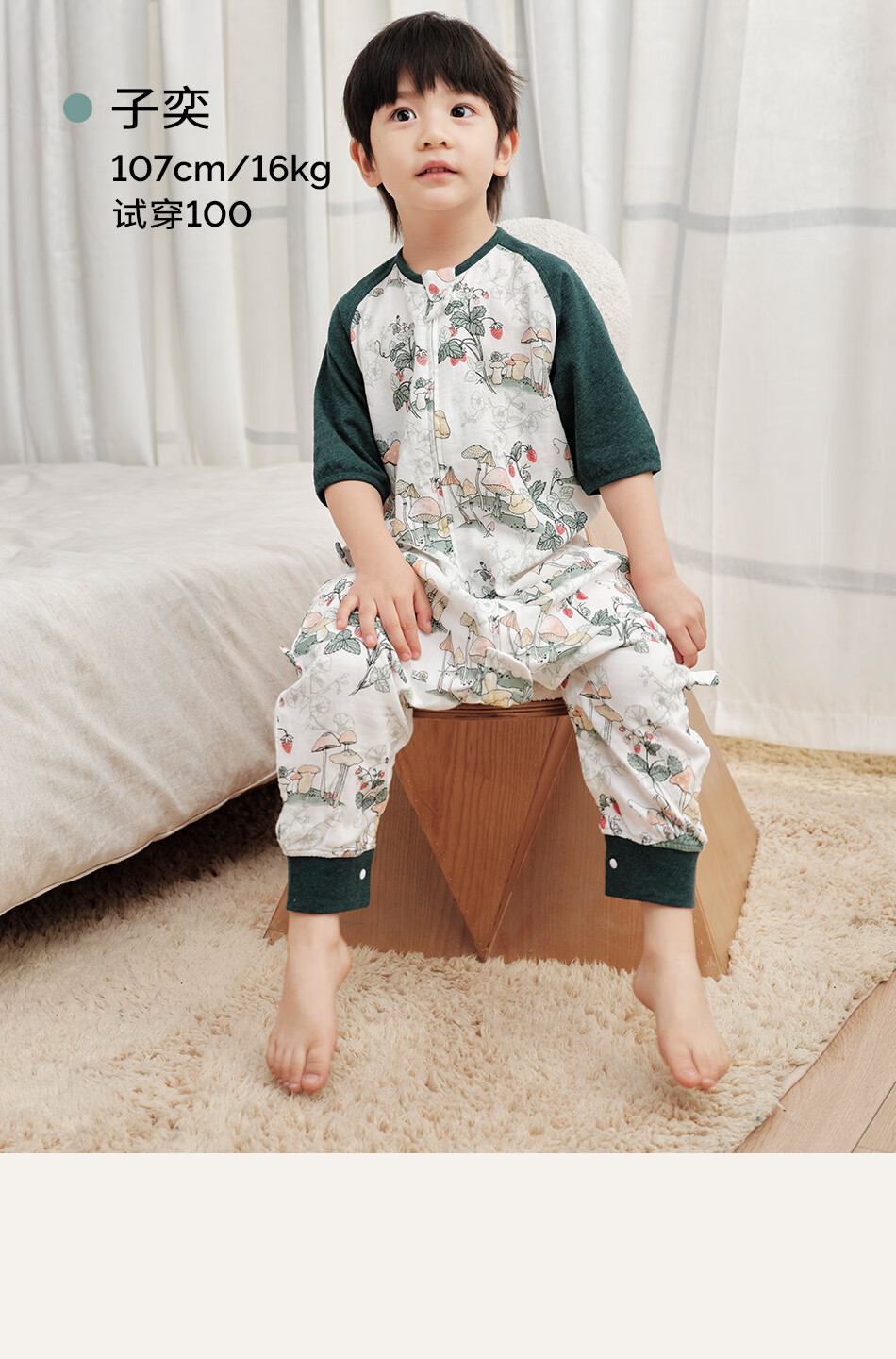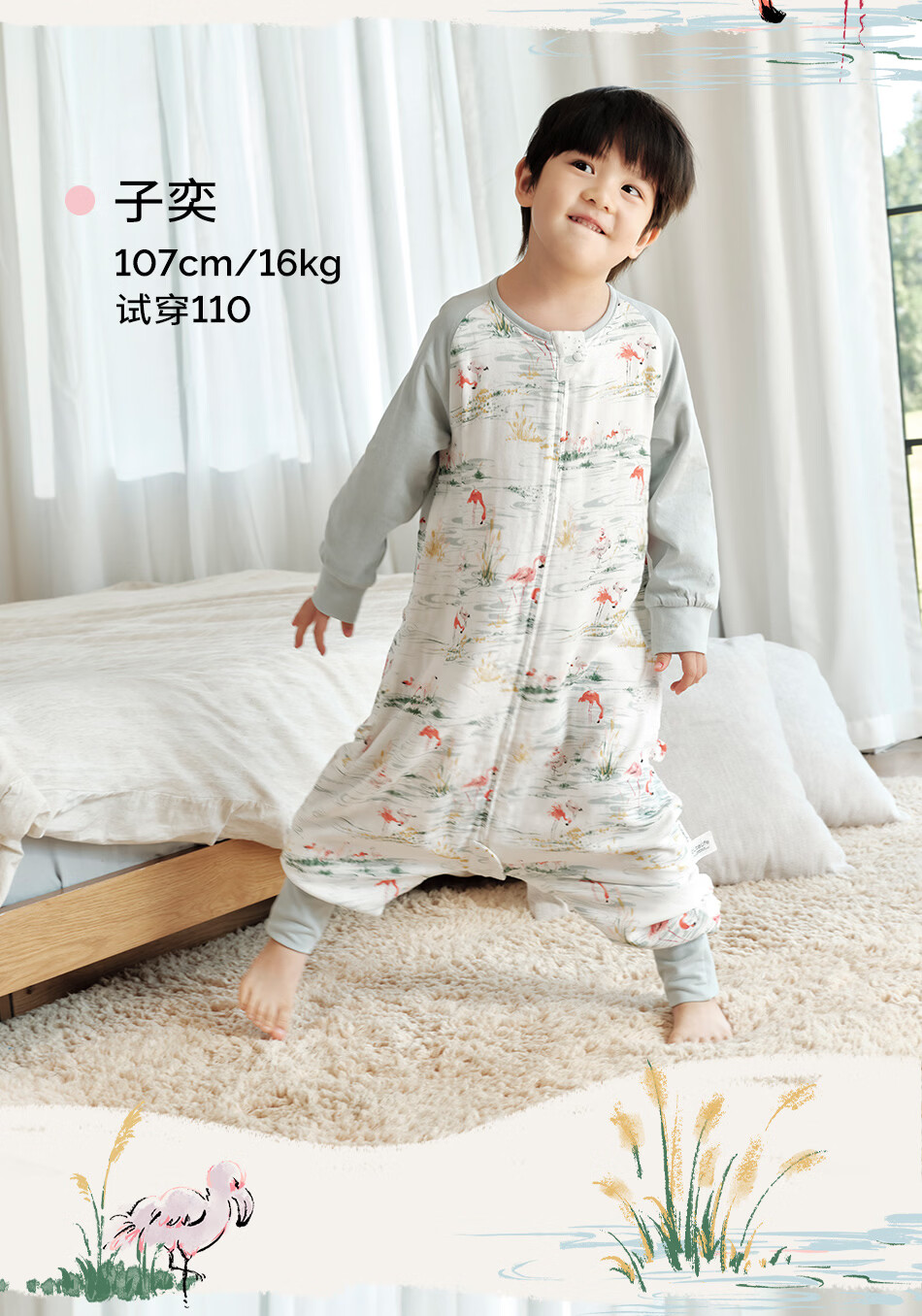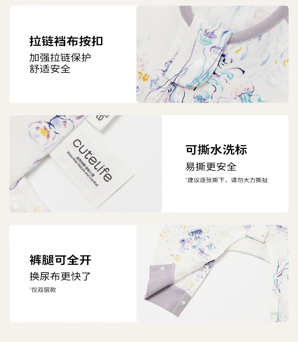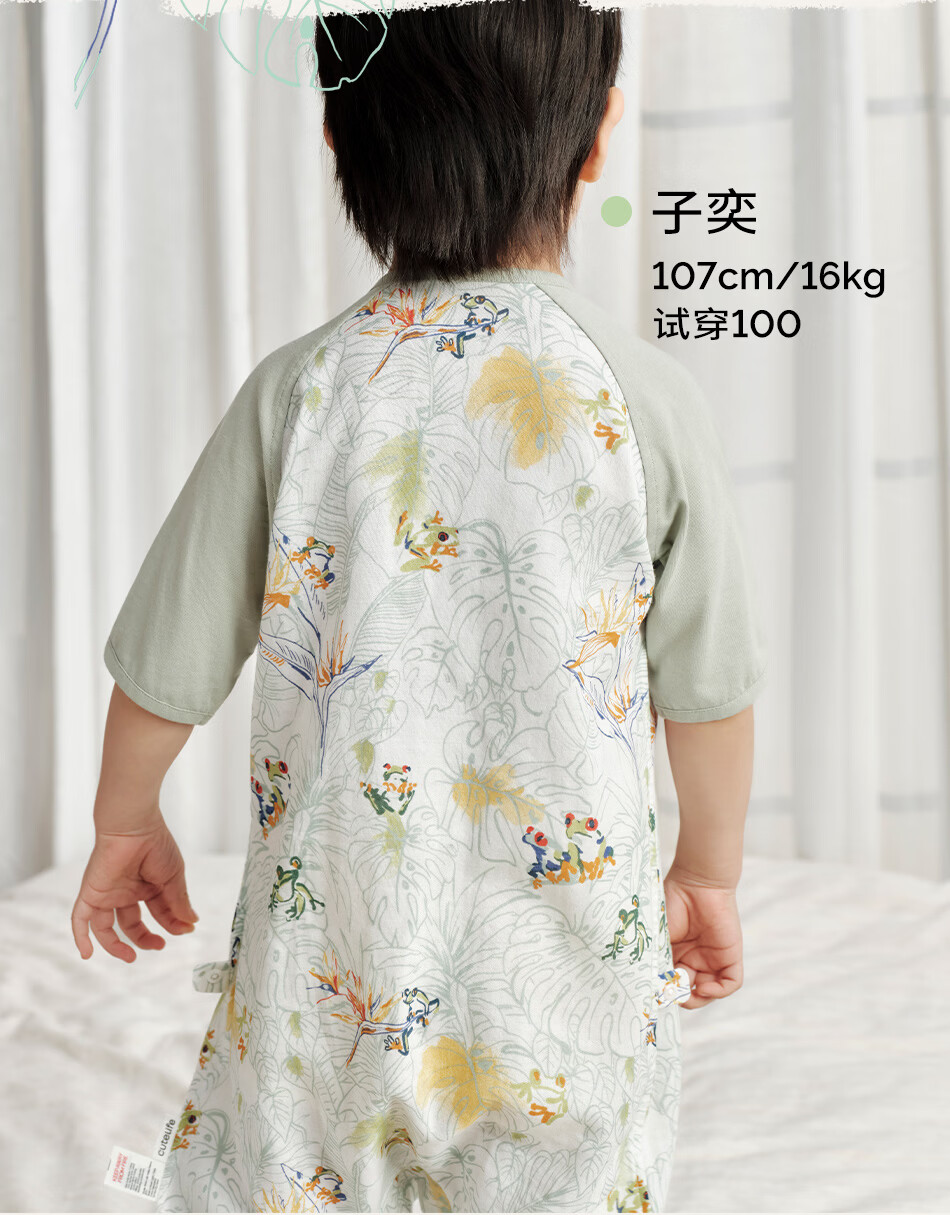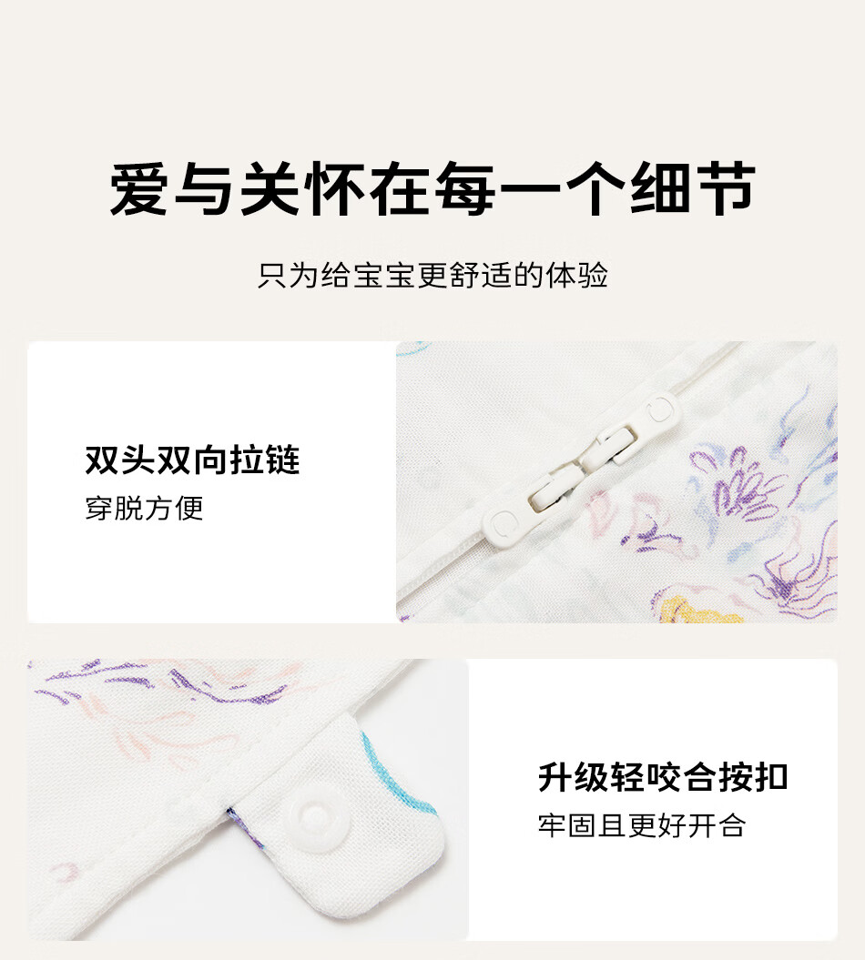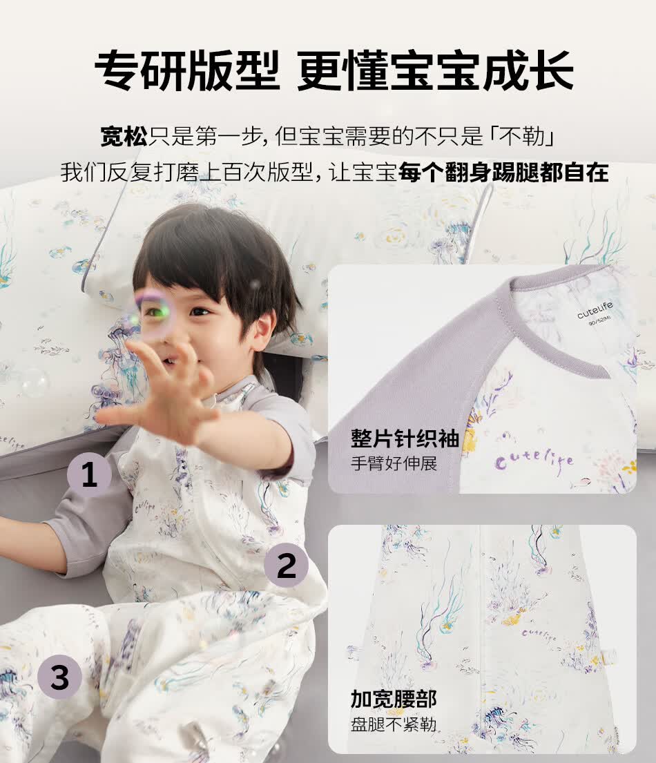 Cutelife婴儿睡袋竹棉纱布分腿睡袋短袖四六层透气婴幼儿童四季通用防踢被 【新品-双层短袖】水母星河(室温26度以上) 100码 /身高95-105cm【2.5-4岁】