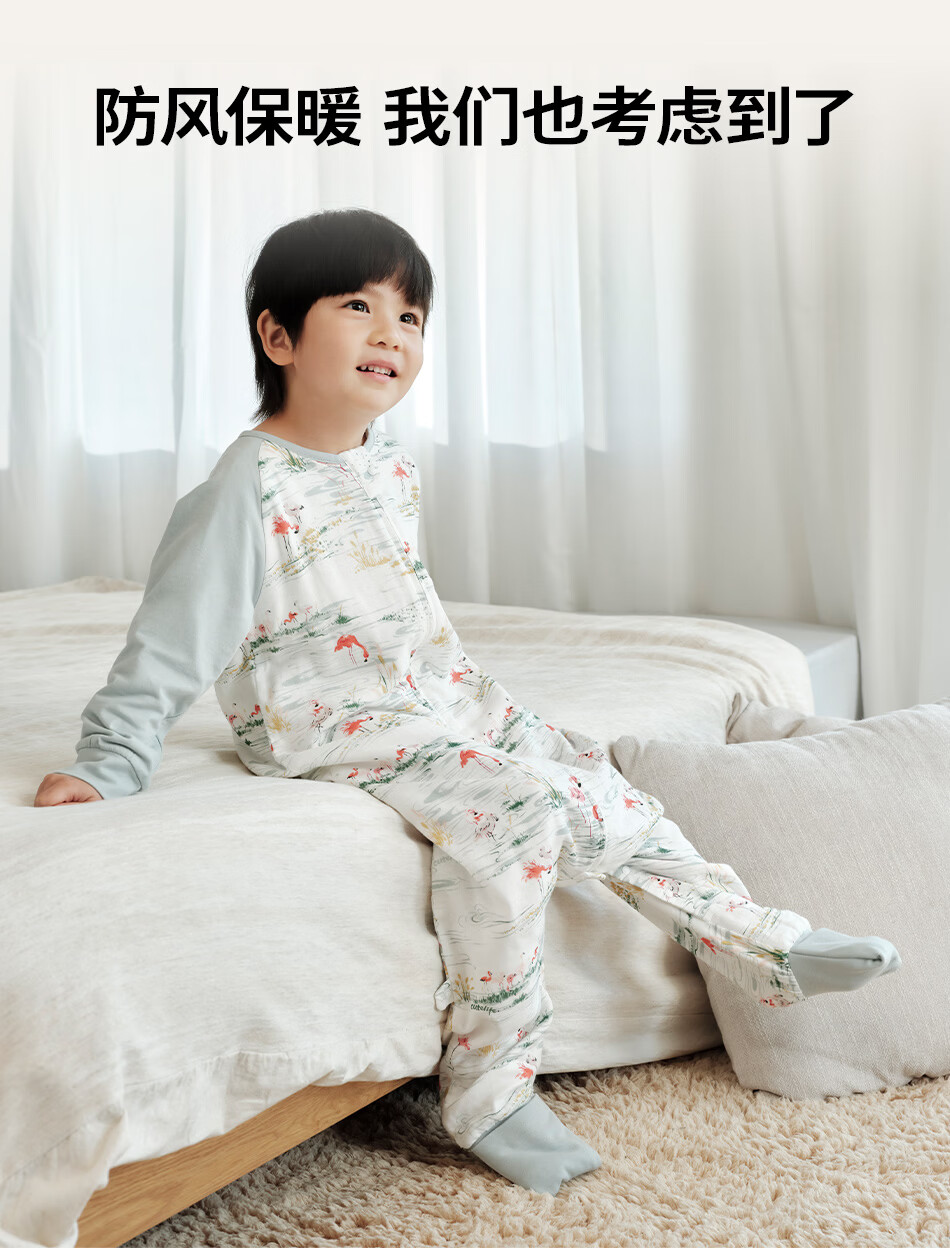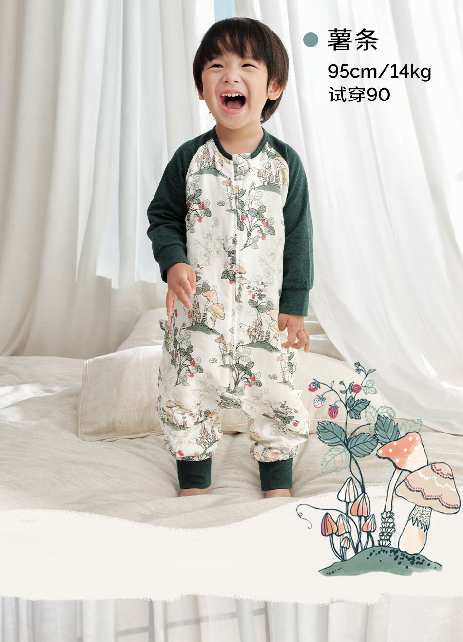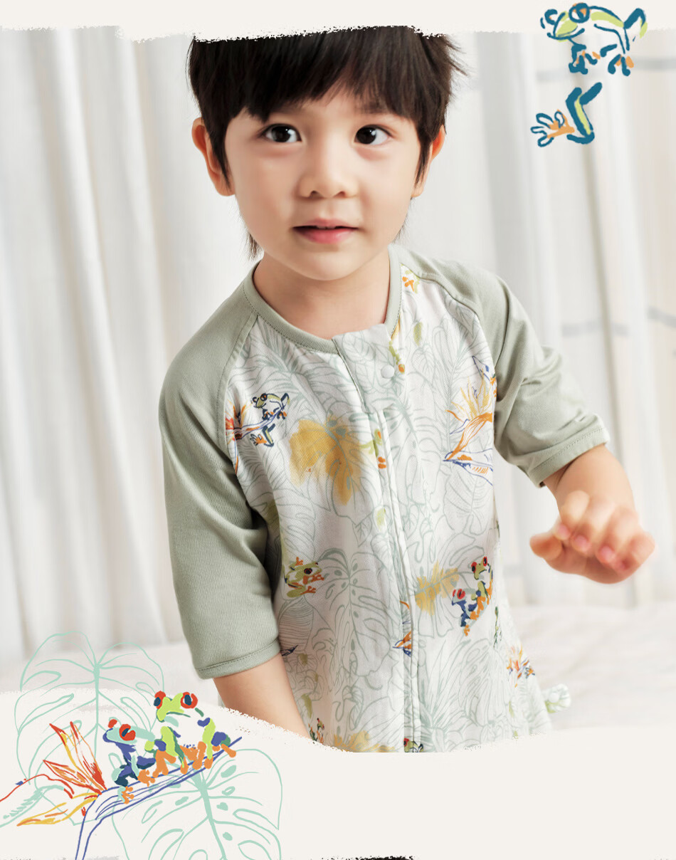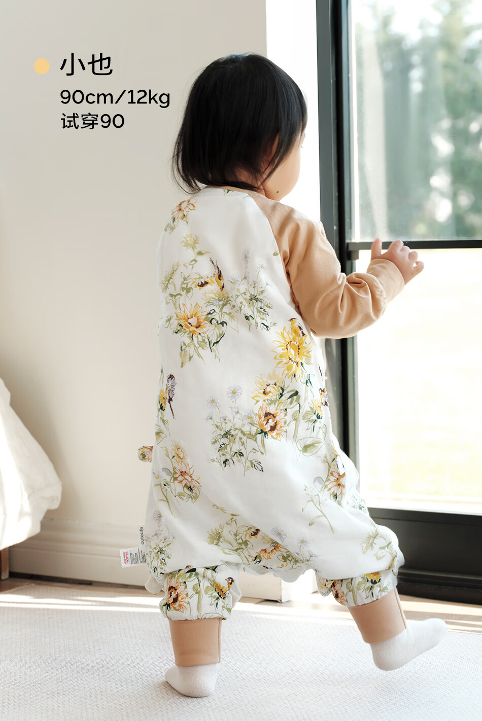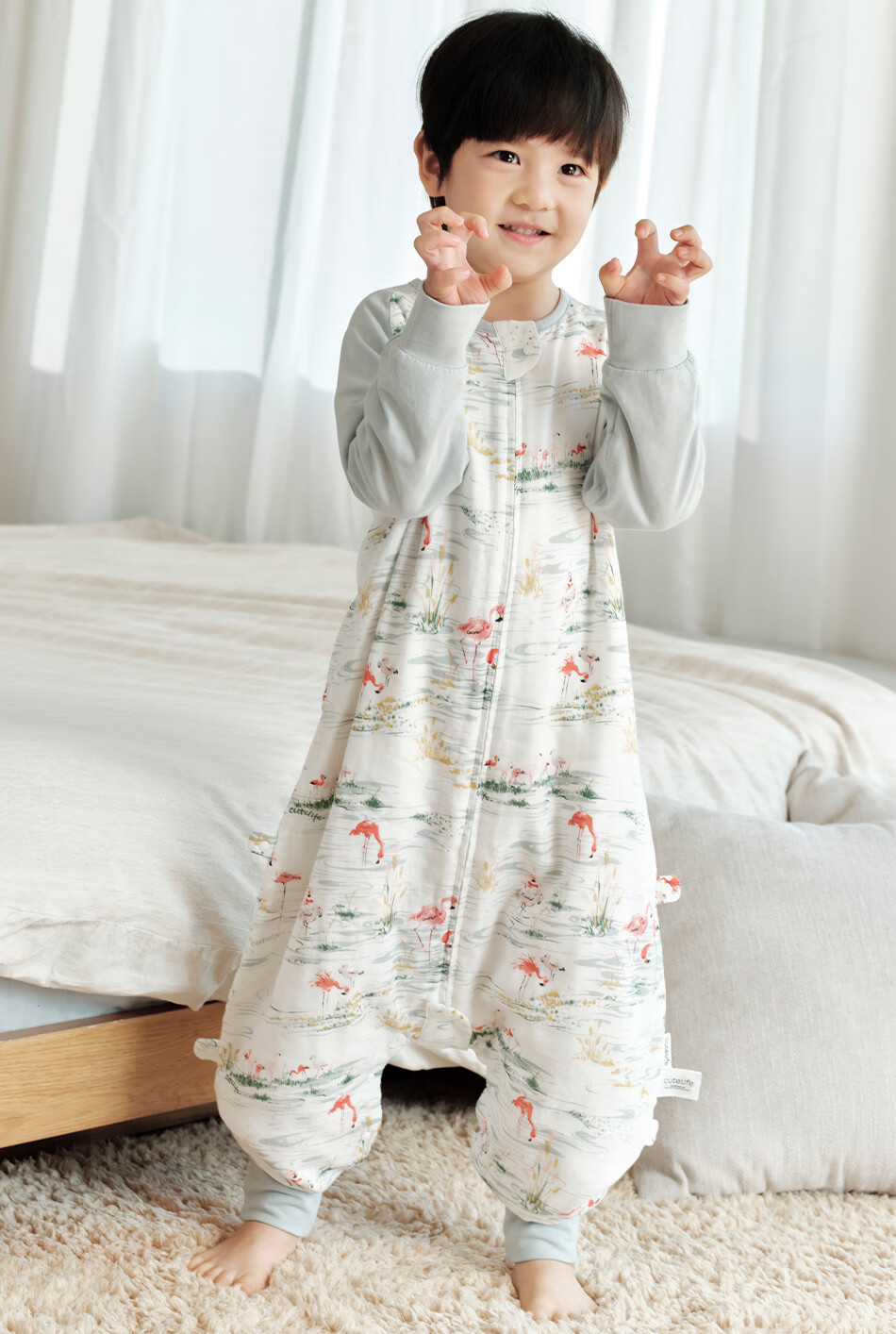 Cutelife婴儿睡袋竹棉纱布分腿睡袋短袖四六层透气婴幼儿童四季通用防踢被 【新品-双层短袖】水母星河(室温26度以上) 100码 /身高95-105cm【2.5-4岁】