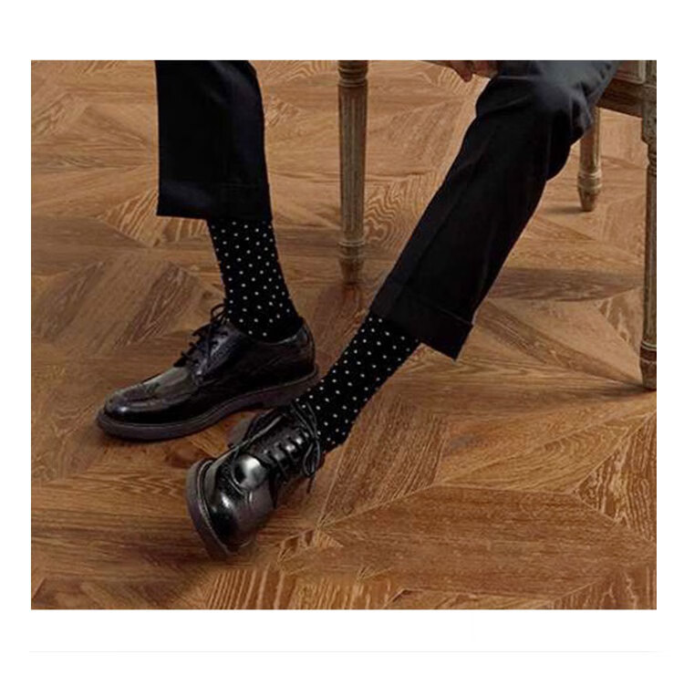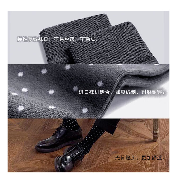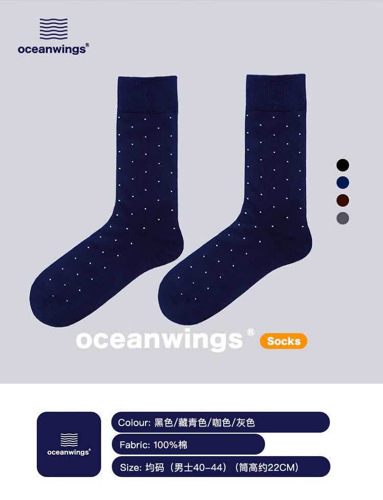 oceanwings男士商务休闲经典黑白波点中筒袜正装皮鞋黑色男袜 拍下备注x3 40-44