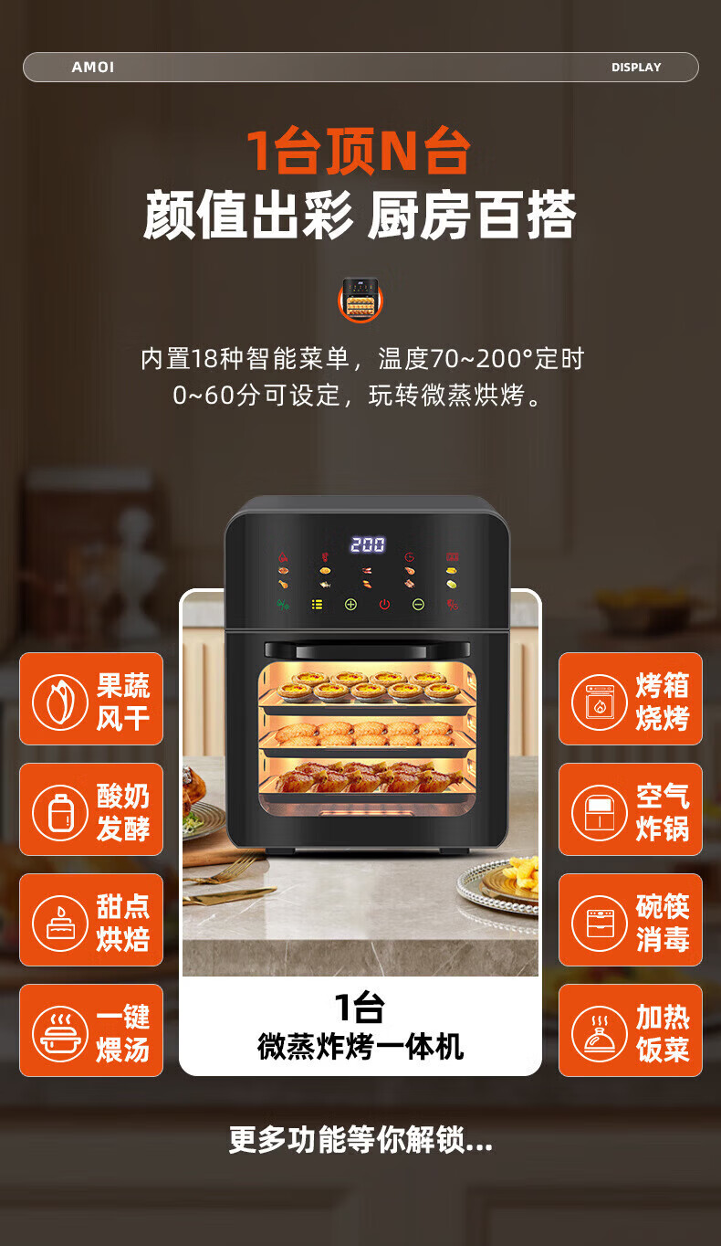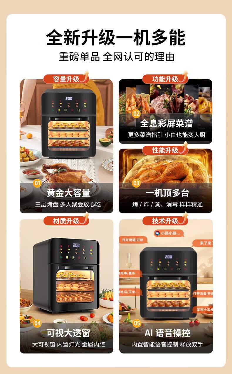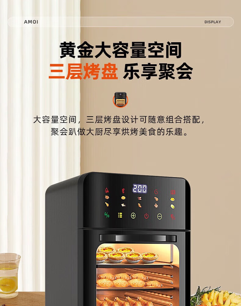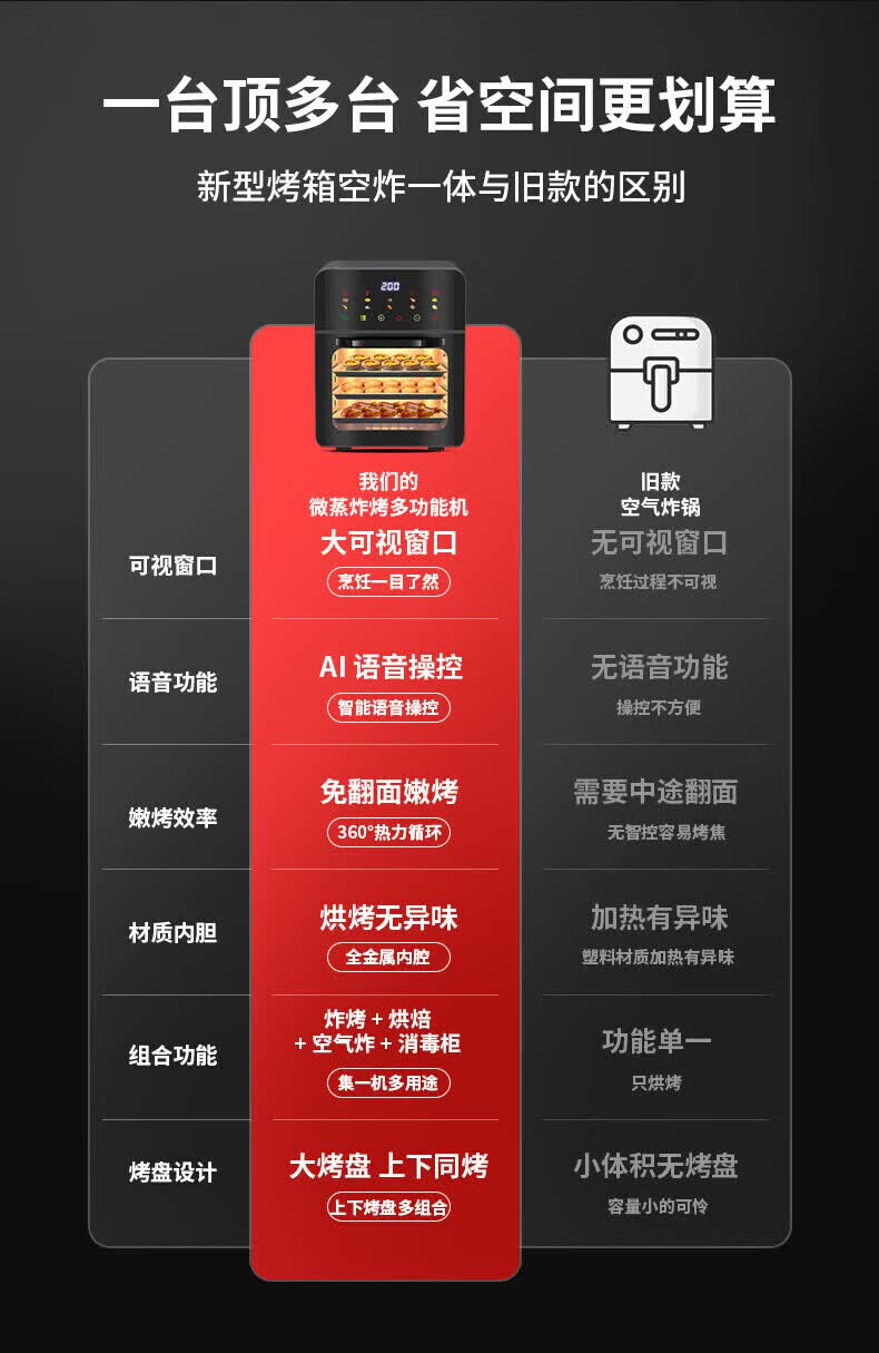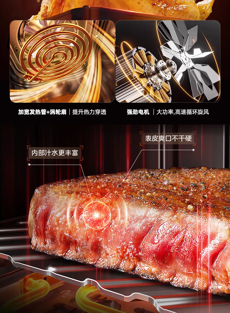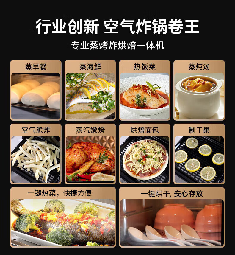 SUBOAER苏泊空气炸锅蒸烤一体2026新款多层空气炸烤箱多功能微波炉电烤箱一体机三合一可视大容量热饭菜 石墨黑 50L 【立体烤腔+多功能蒸烤免翻面】