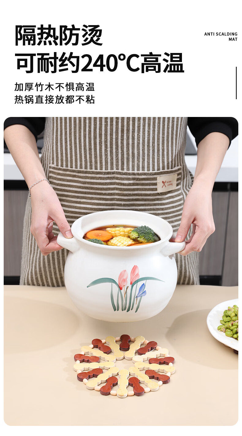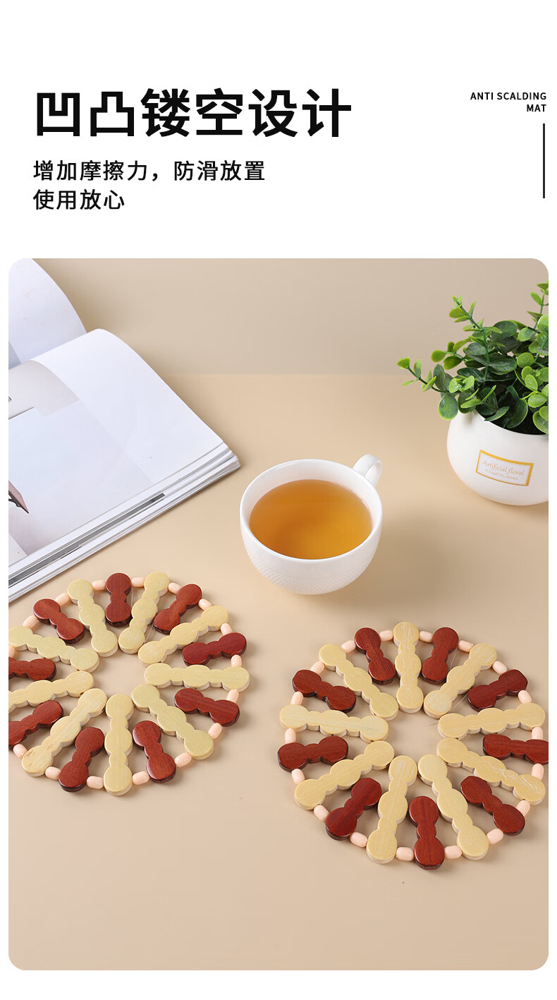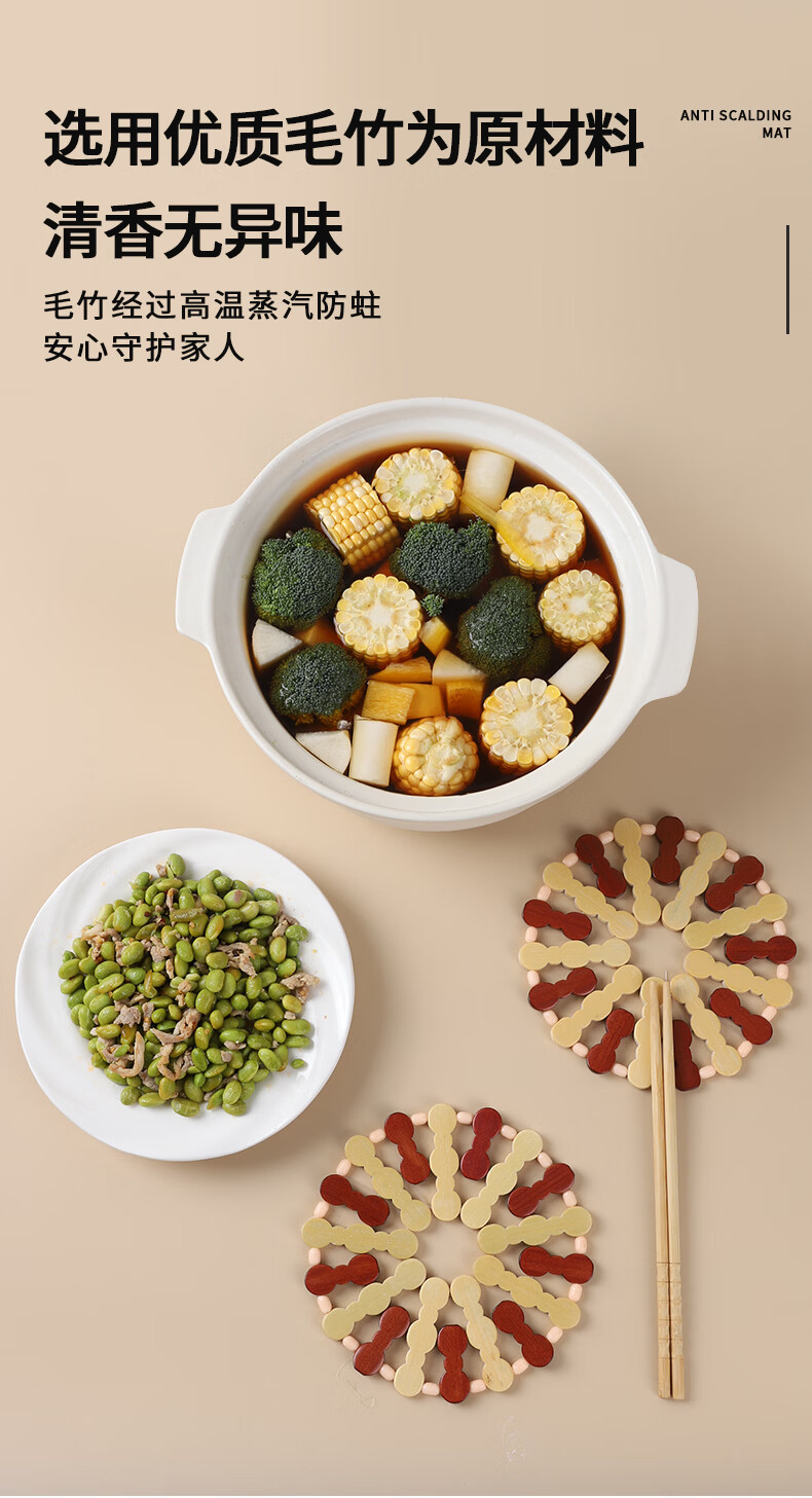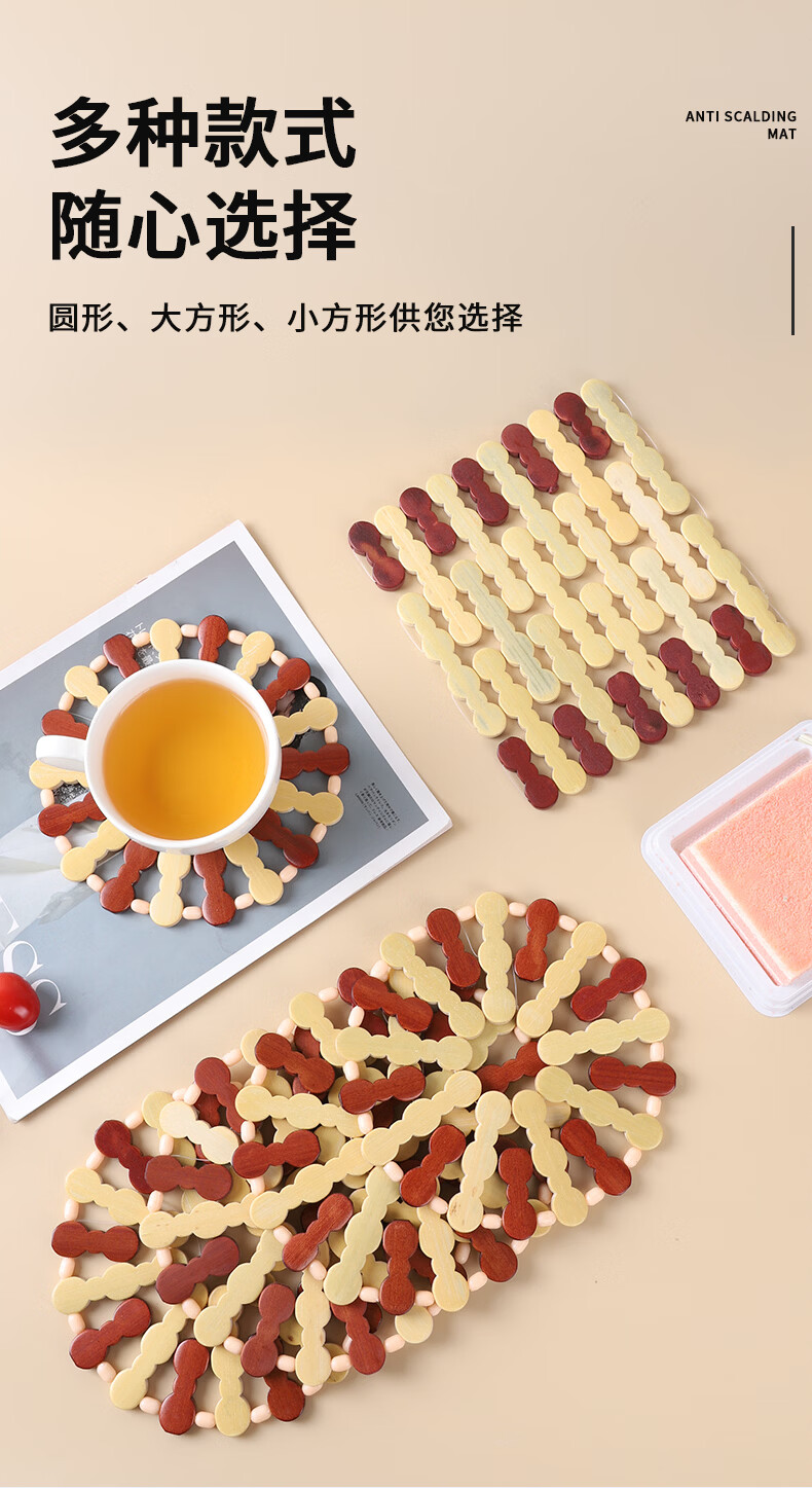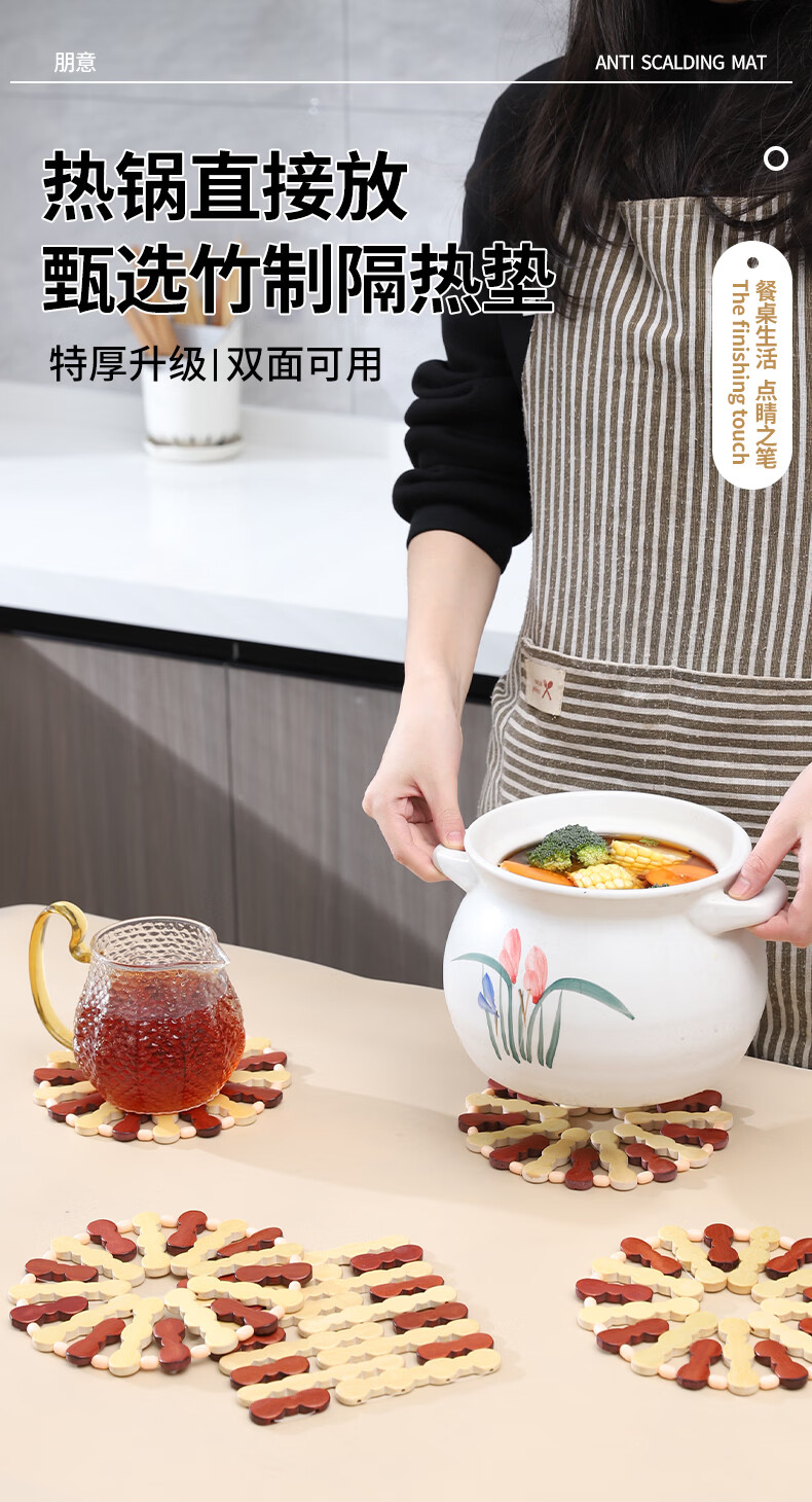 波溜紫菜垫子隔热垫家用竹制防烫耐热砂锅垫餐桌垫碗垫茶杯垫盘子垫餐垫 竹制圆形(2个装)