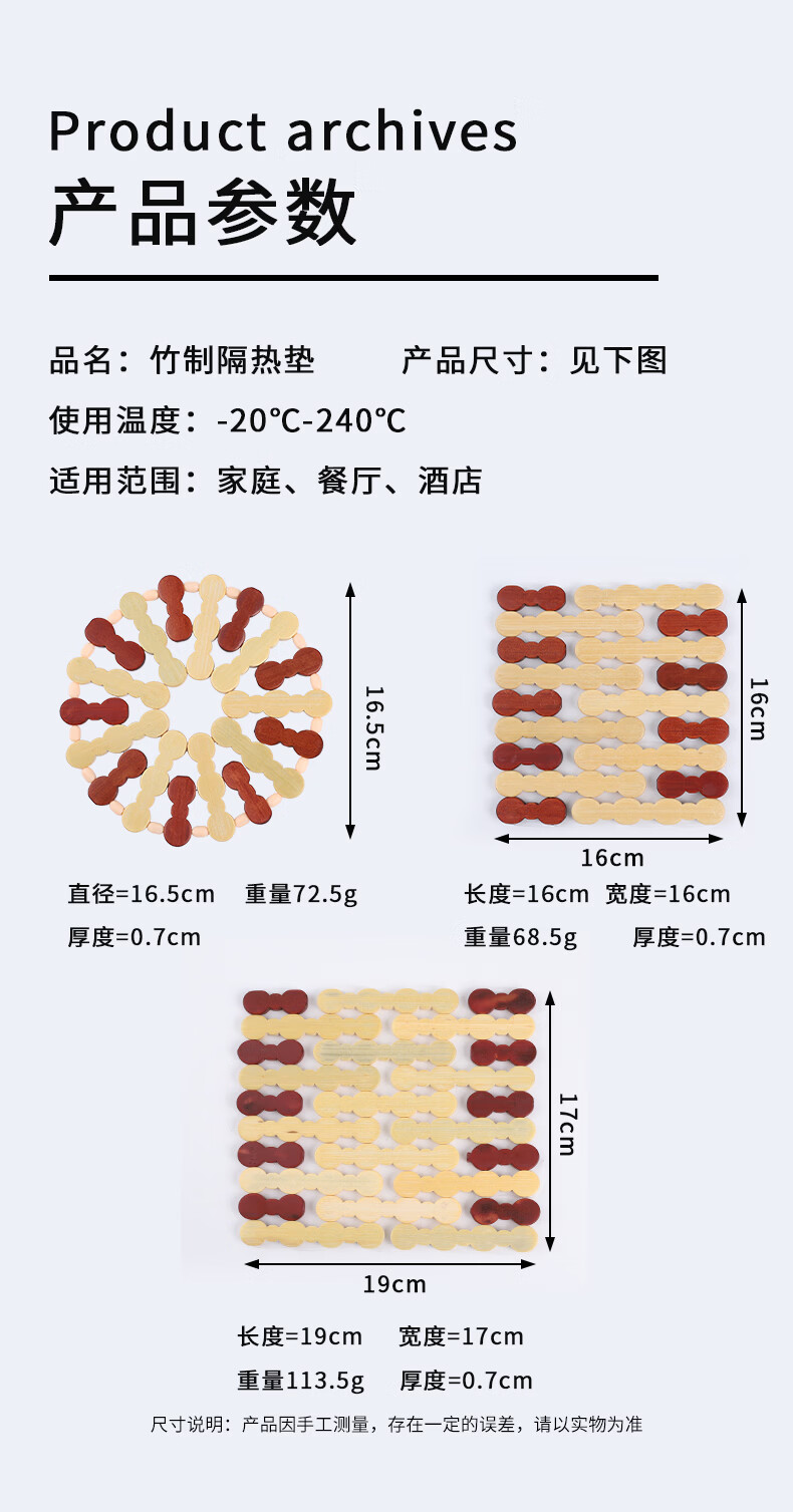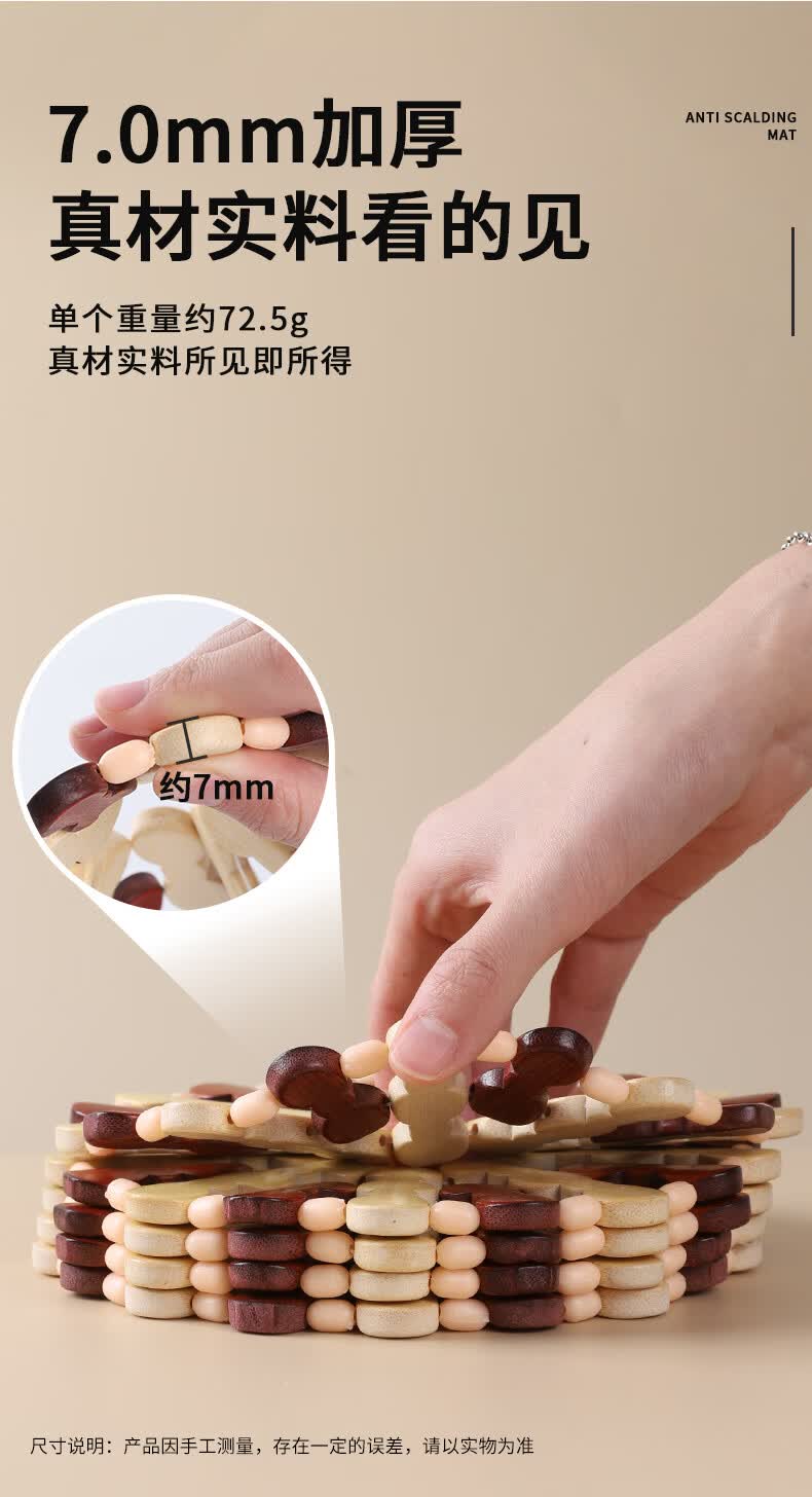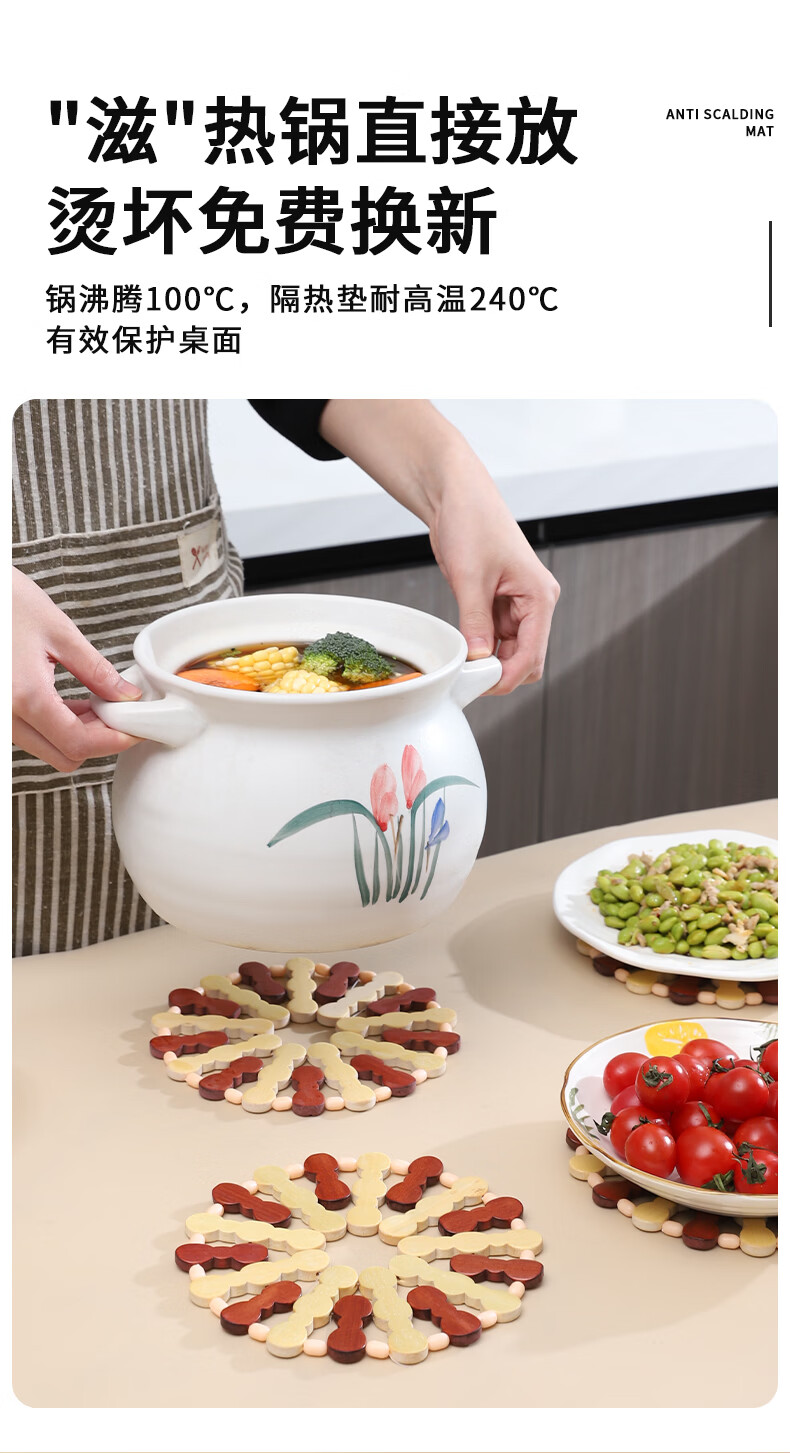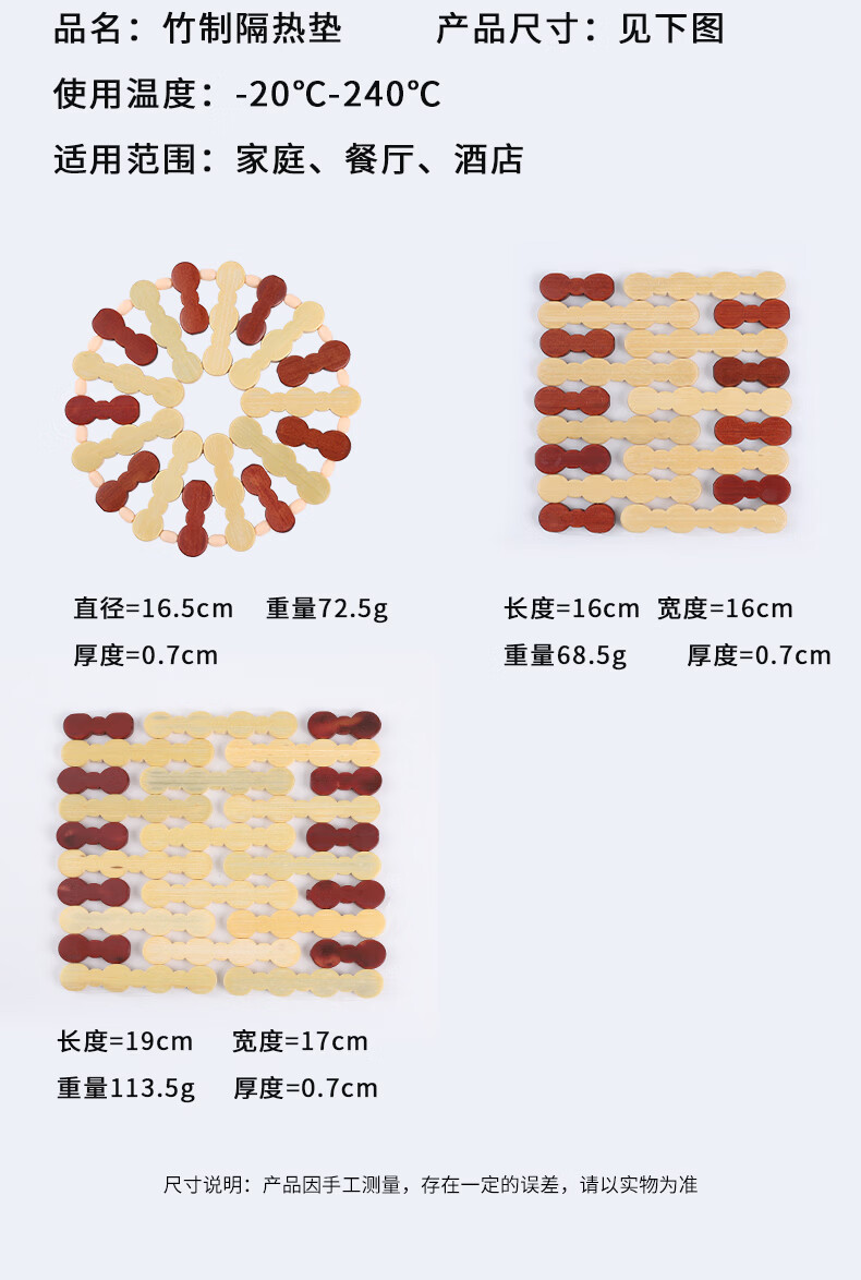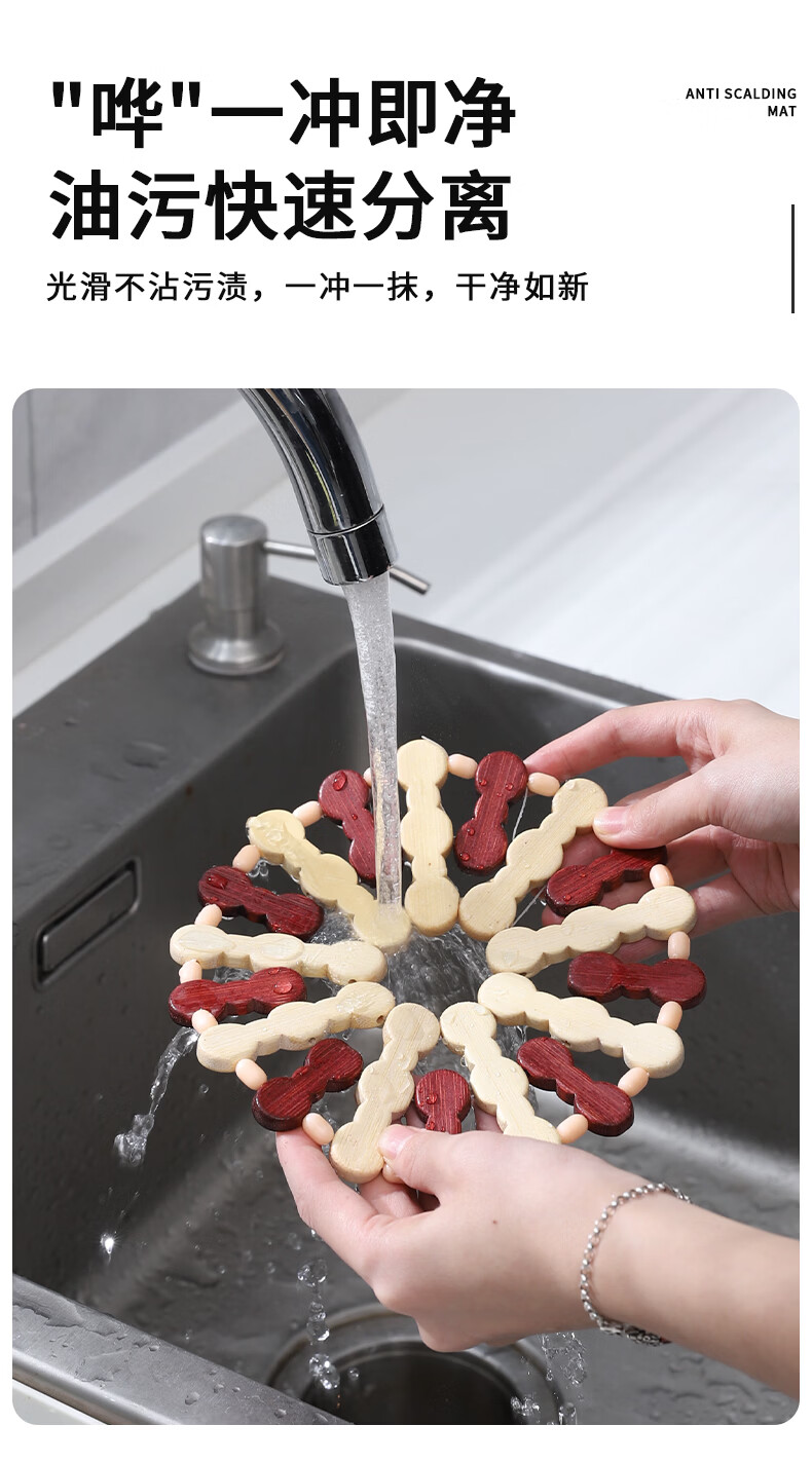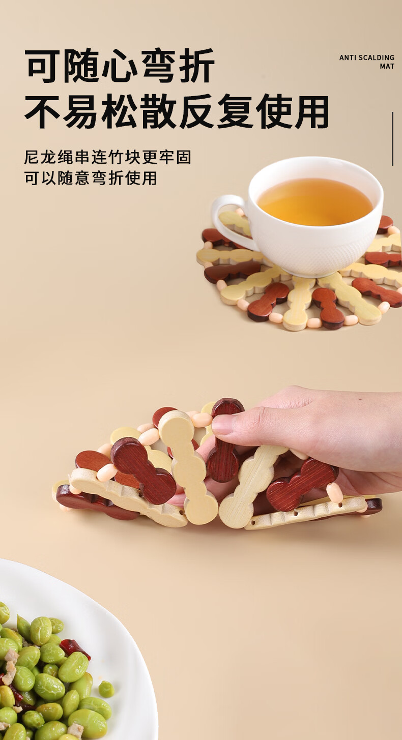 波溜紫菜垫子隔热垫家用竹制防烫耐热砂锅垫餐桌垫碗垫茶杯垫盘子垫餐垫 竹制圆形(2个装)