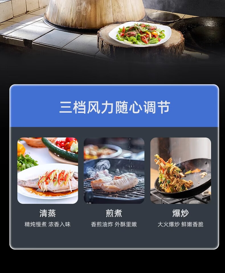 美珏好太太家用厨房农村柴火灶油烟机商用油烟机大吸力农村厨房土灶大锅灶商用餐饮猛火灶抽油烟机 【0.8m纳米黑气电灶套装】大功率烟机+凹面电磁炉