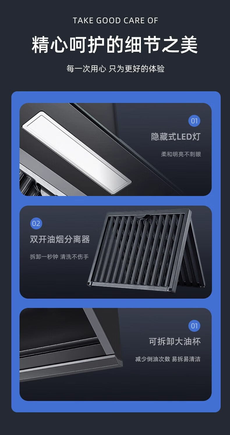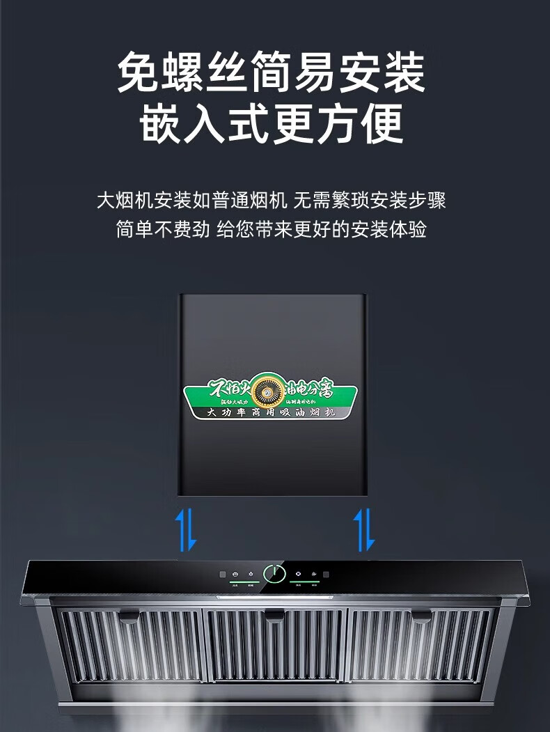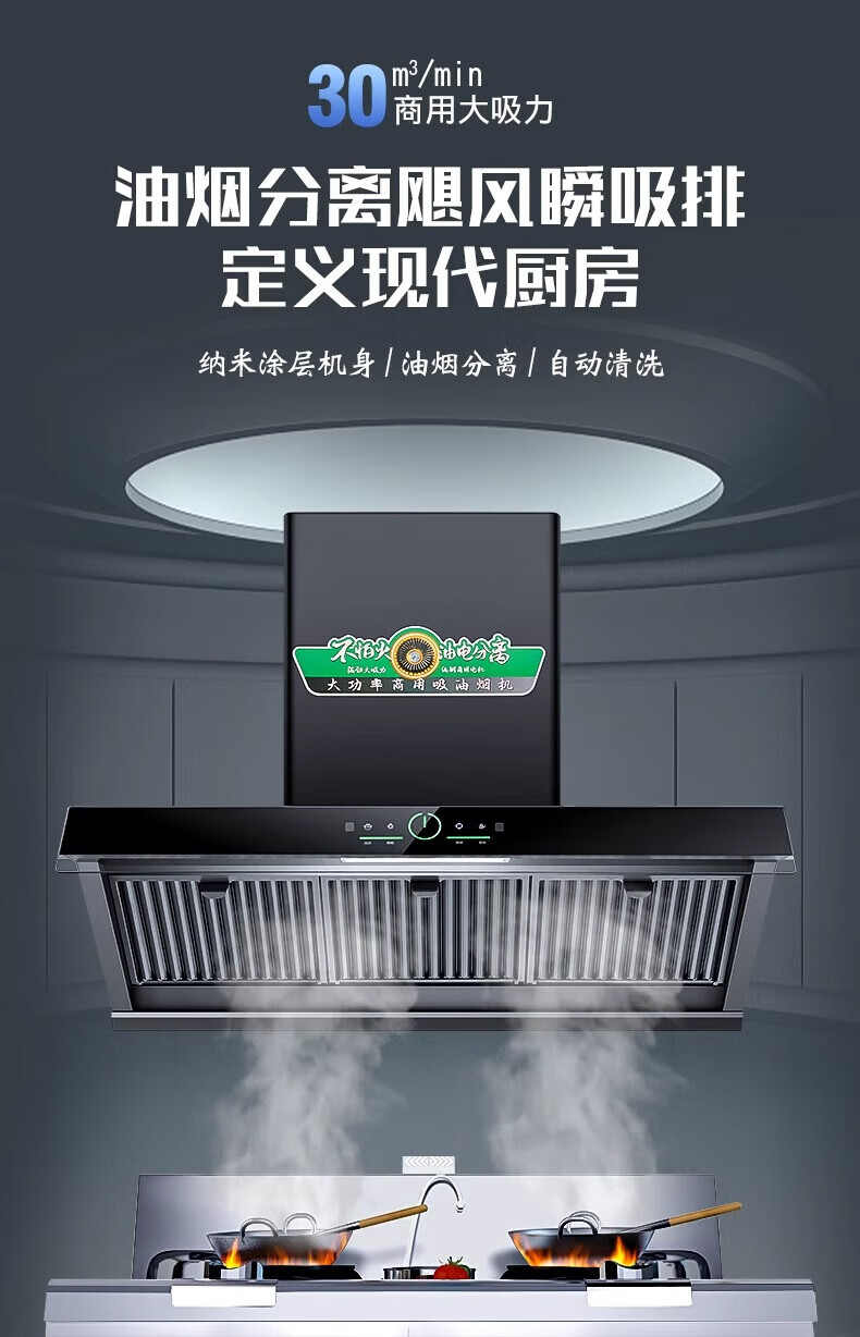 美珏好太太家用农村厨房土灶柴火灶大吸力吸油烟机不锈钢商用1000W大功率抽油烟机侧吸式油烟分离滤网 【0.9m纳米黑油烟分离套装】1000W功率+鼓风增压猛火灶