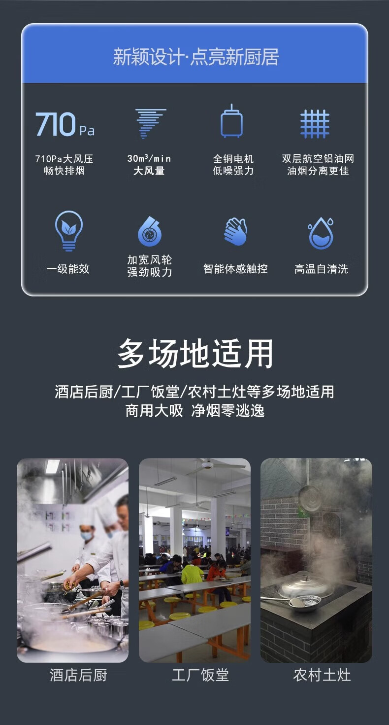 美珏好太太0.8/0.9/1.0m农村柴火灶油烟机家用商用大功率油烟机农村土灶抽烟机壁挂全吊装大吸力吸油烟机 【0.8m黑色款】1000W瓦铜电机-750深烟罩