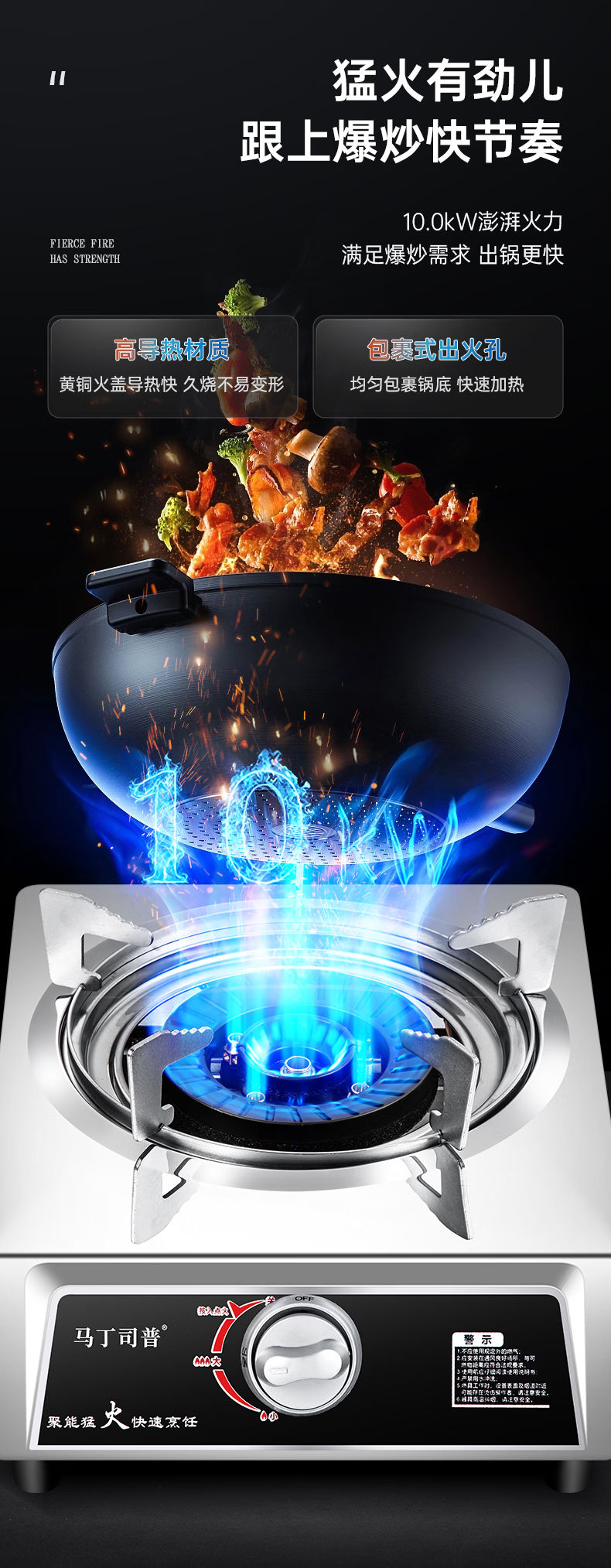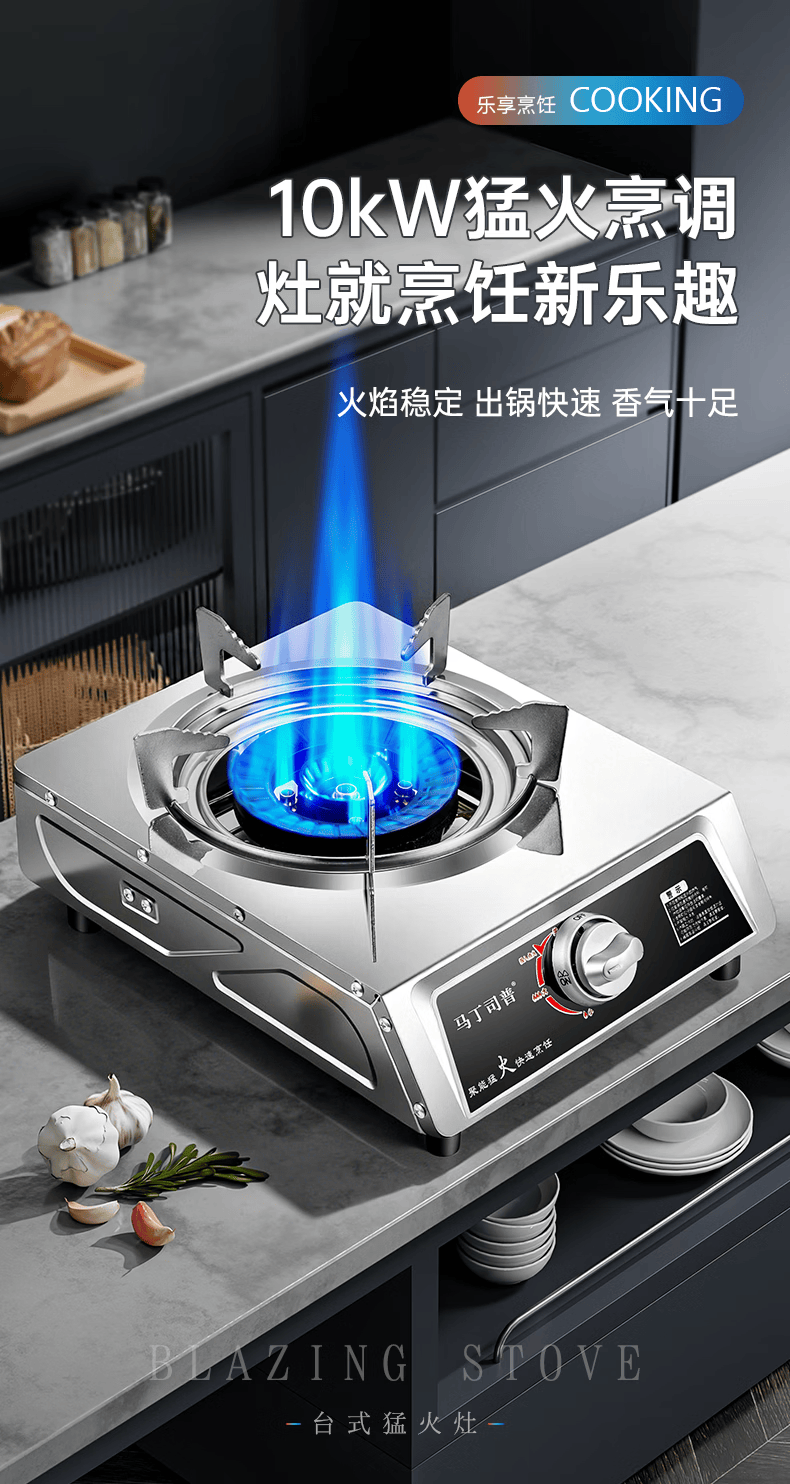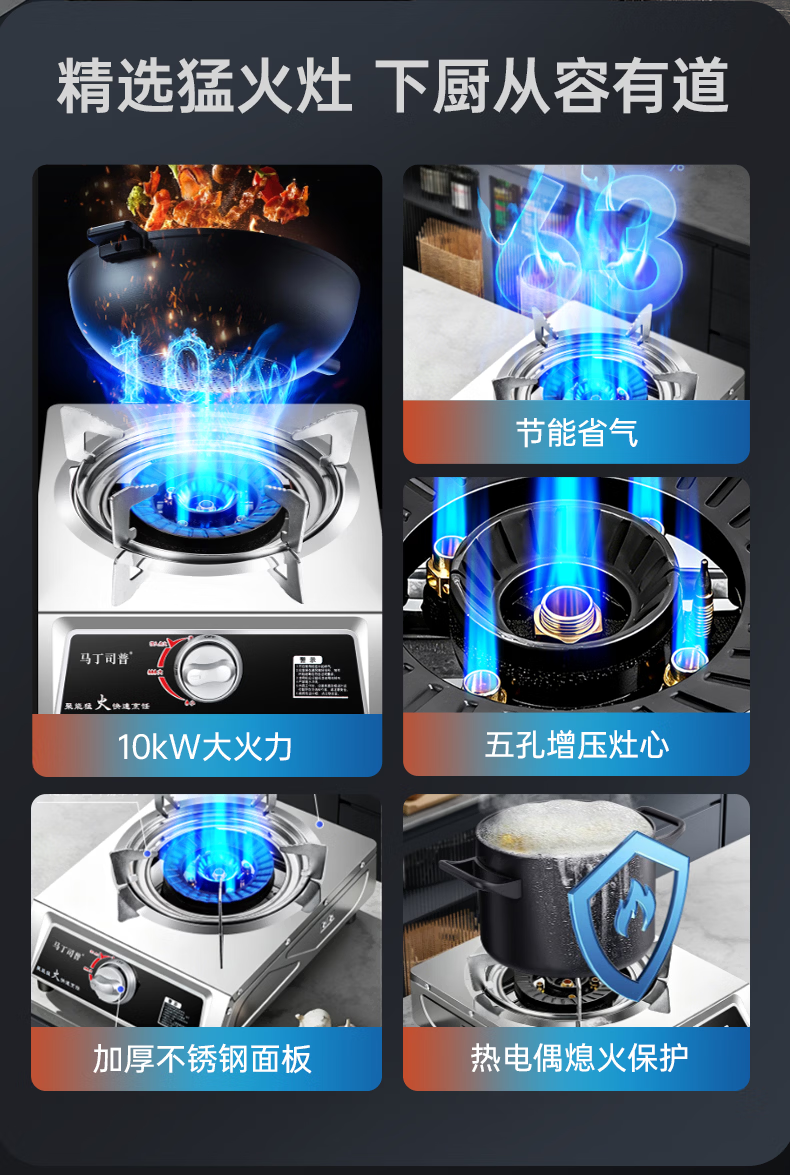 马丁司普猛火煤气灶单灶家用爆炒商用饭店夜市摆摊炒粉猛火台式不锈钢铜盖熄火保护节能液化气天然气燃气灶 饭店用|13KW九头铜盖-只有灶-液化气