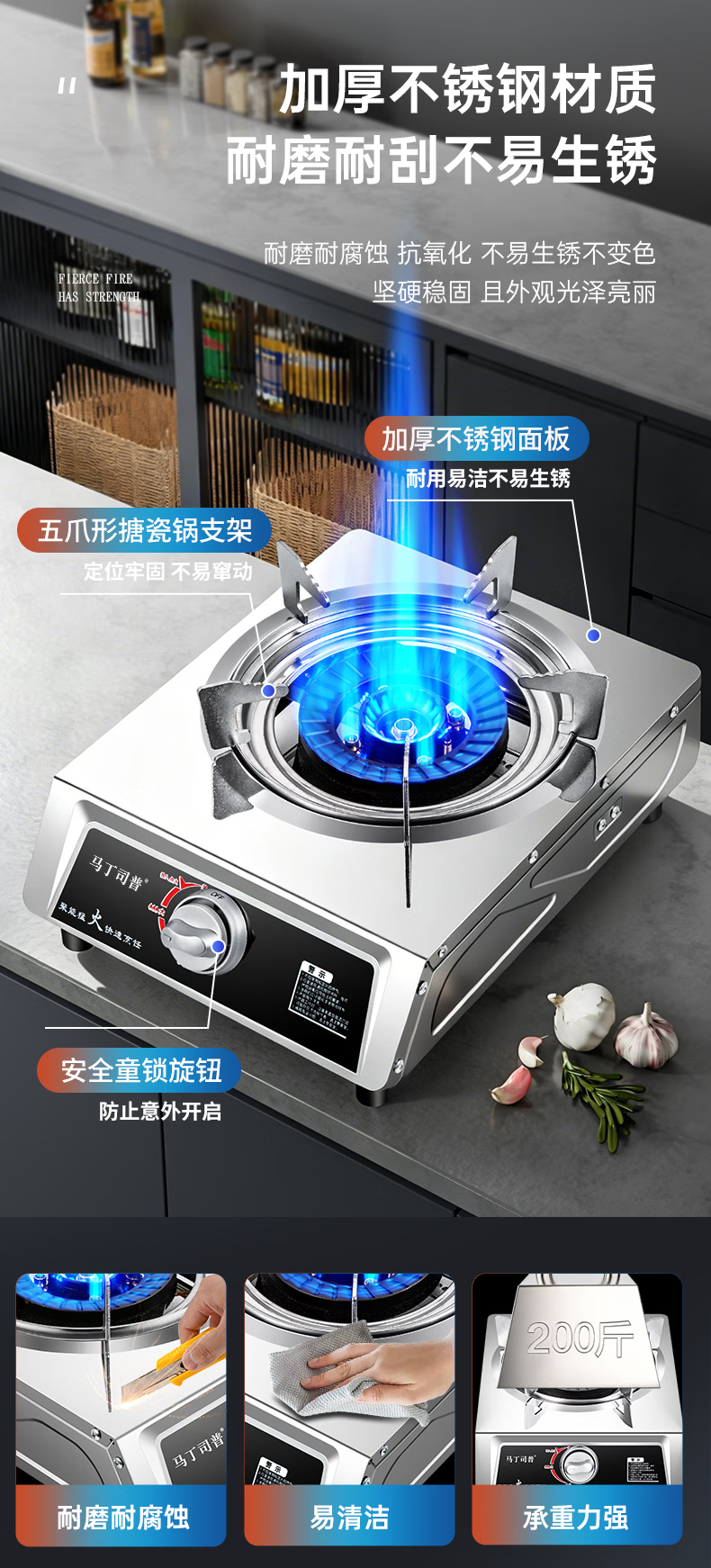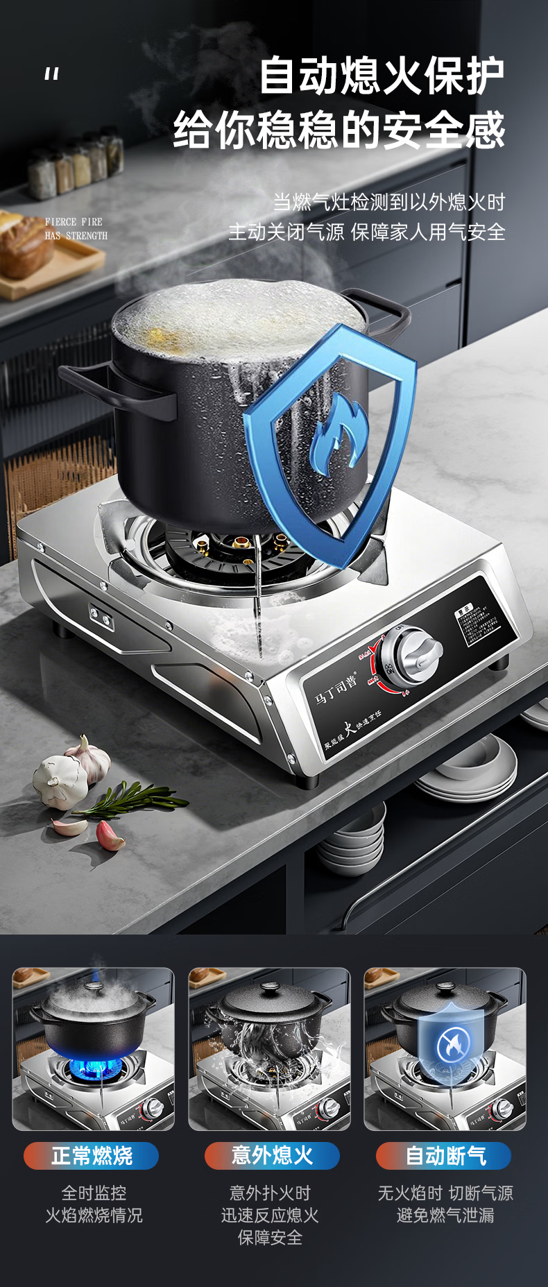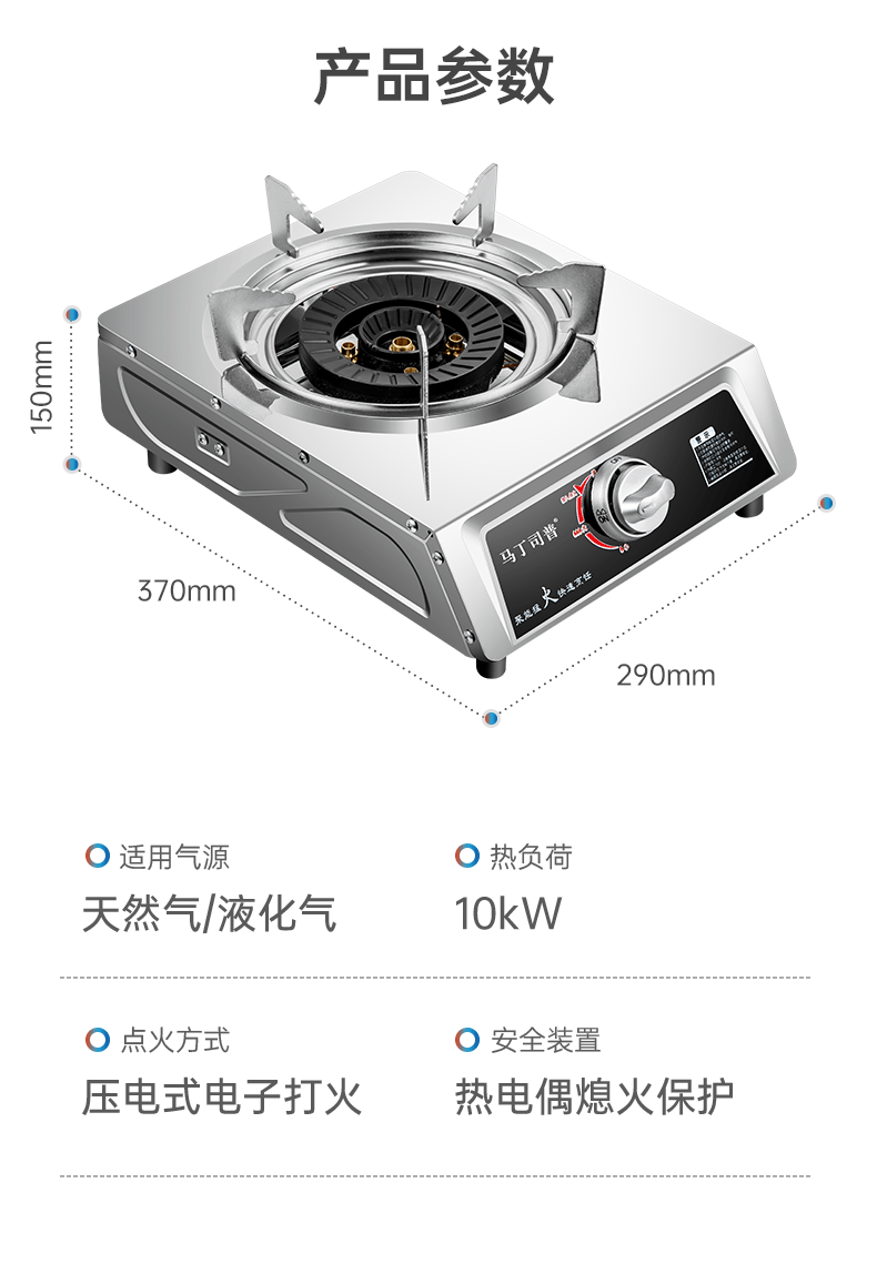 马丁司普猛火煤气灶单灶家用爆炒商用饭店夜市摆摊炒粉猛火台式不锈钢铜盖熄火保护节能液化气天然气燃气灶 饭店用|13KW九头铜盖-只有灶-液化气