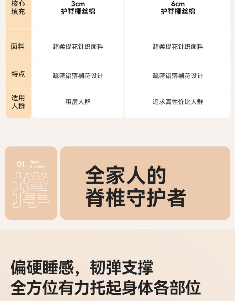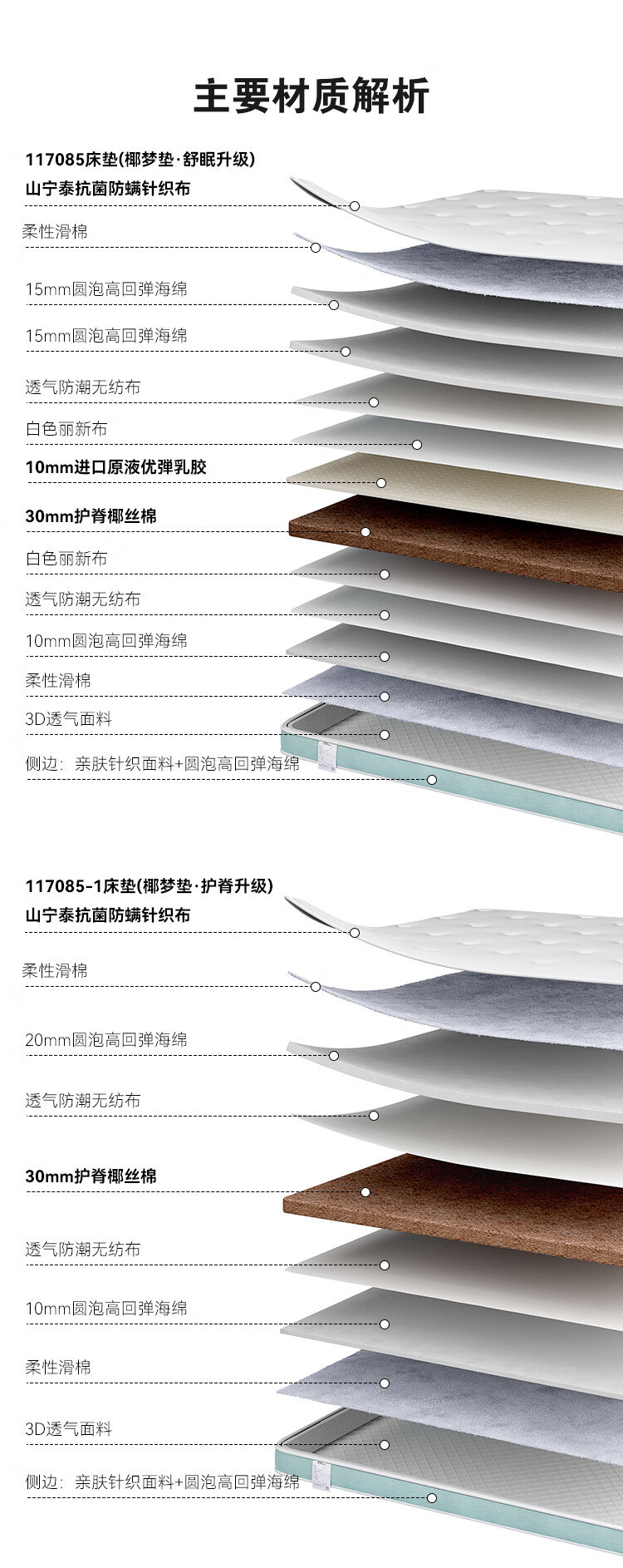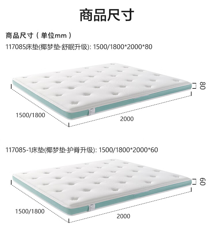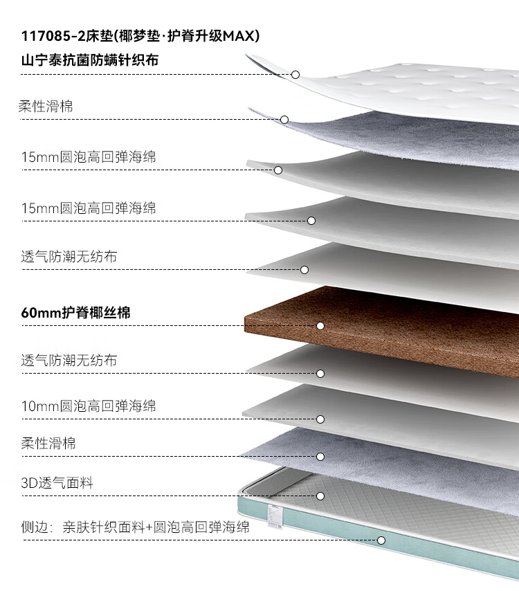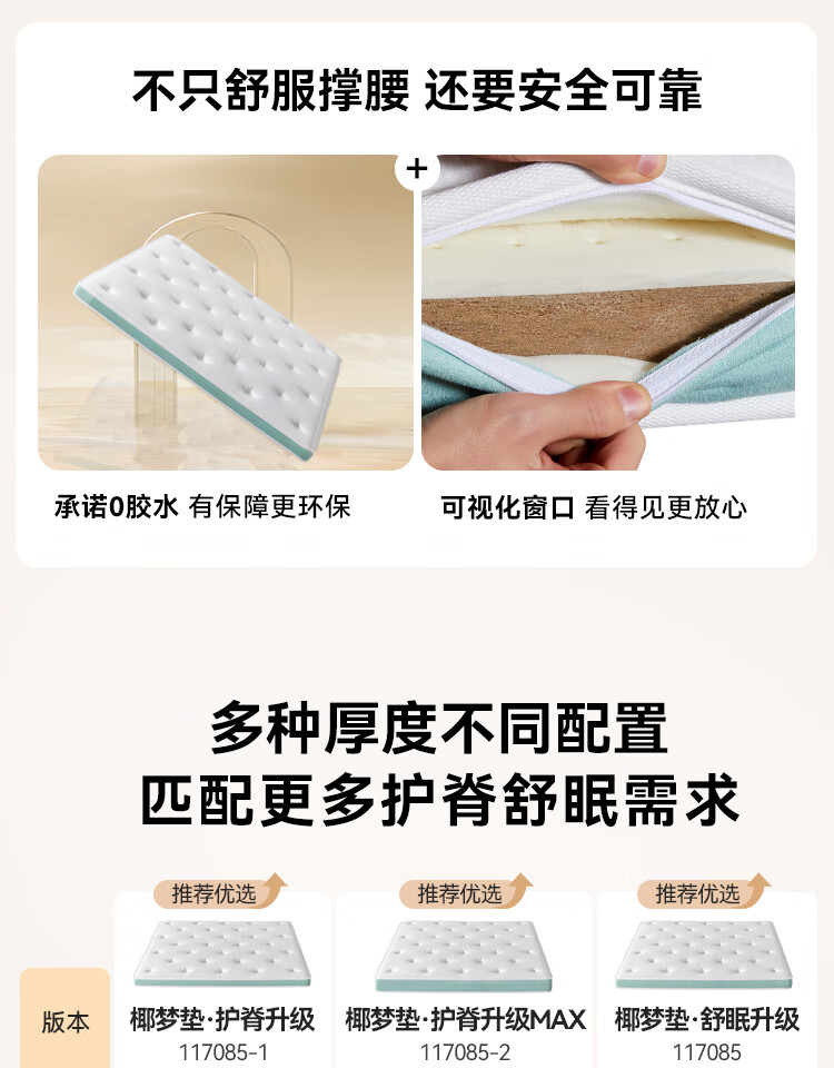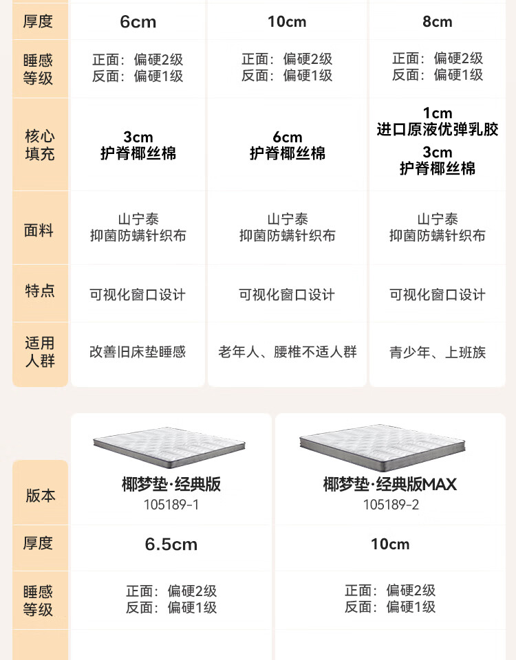 喜临门伊菲H8床垫 泰国进口乳胶4CM椰棕席梦思护脊薄垫子 1.5x2米偏硬