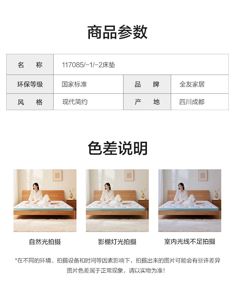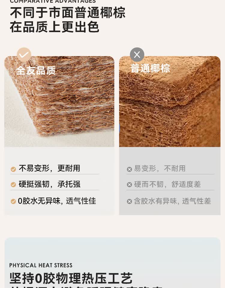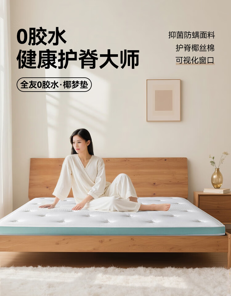 全友家居 0胶水护脊椰棕床垫1.5米×2米榻榻米偏硬床垫子家用双人床垫